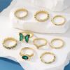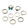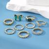 Anillo Abierto de Mariposa Esmeralda de Personalidad Creativa Anillo de Articulación de Uso Apilado de Metal Anillo de Viento Europeo y Americano Transfronterizo Juego de 9 piezas