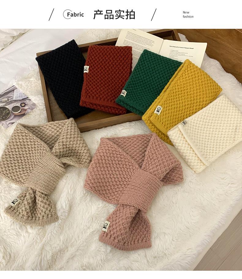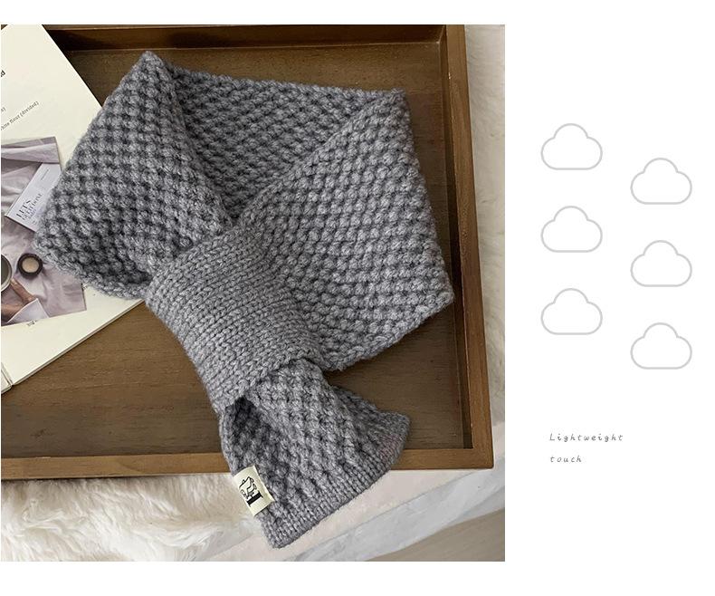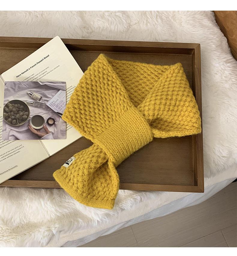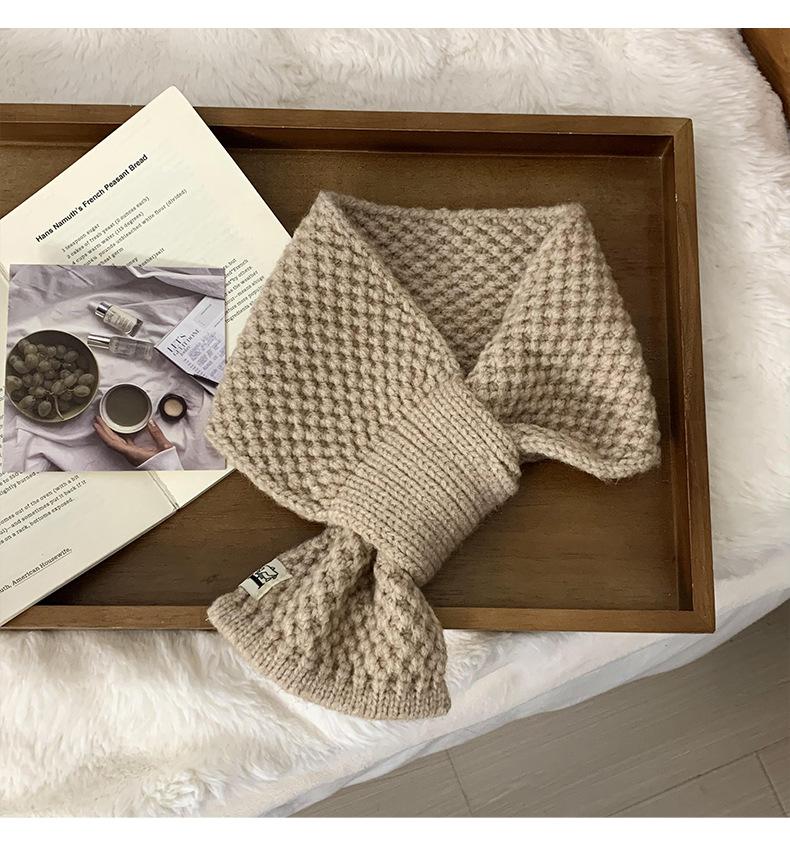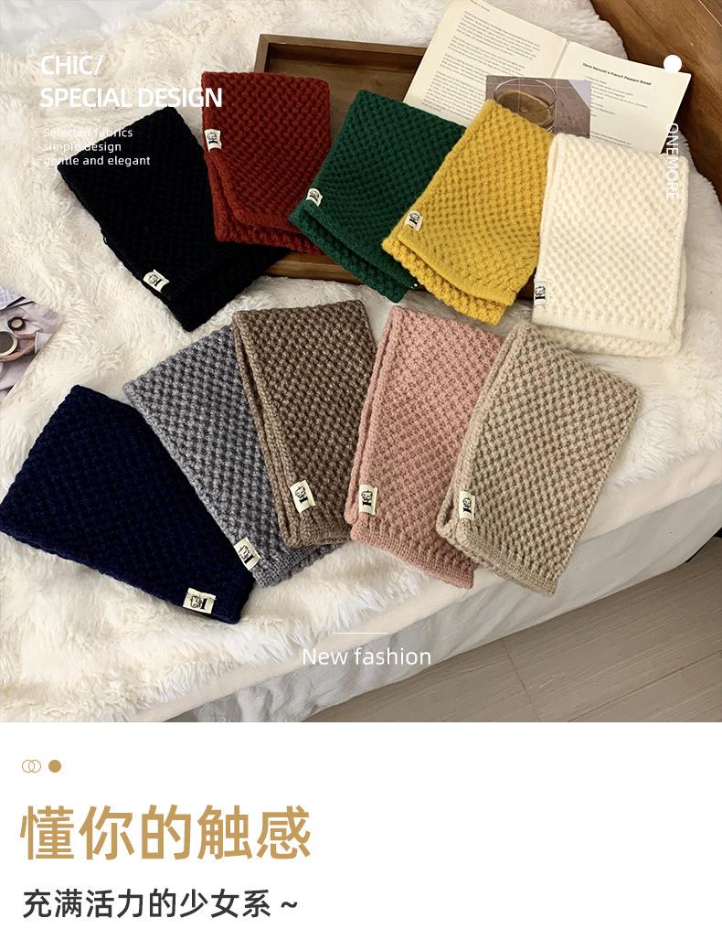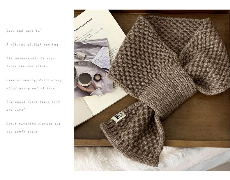 Bufanda pequeña para mujer, otoño e invierno, nueva, Corea del Sur, combina con todo, cálida, color sólido, popular en Internet, bufanda de punto cruzado de lana perezosa.
