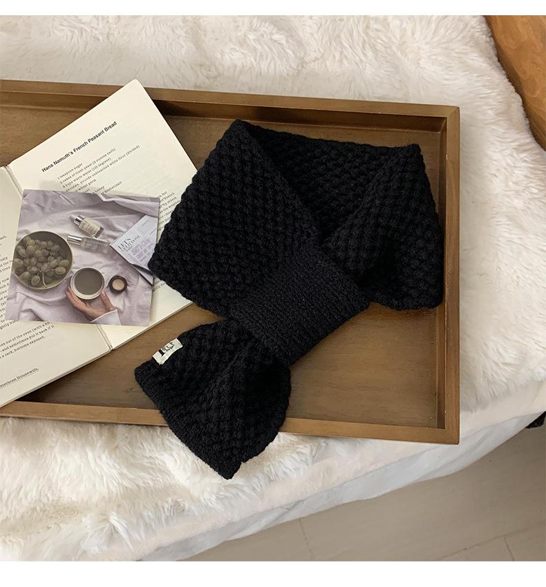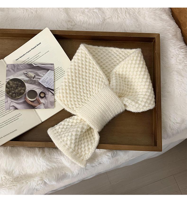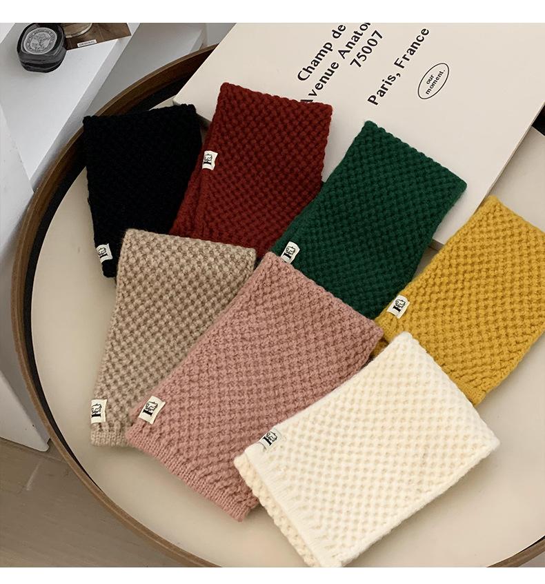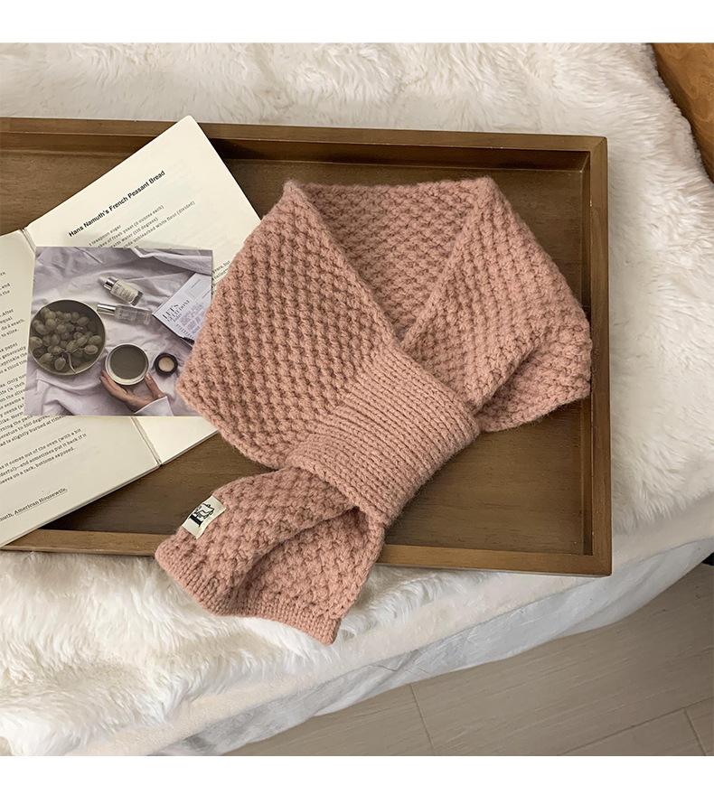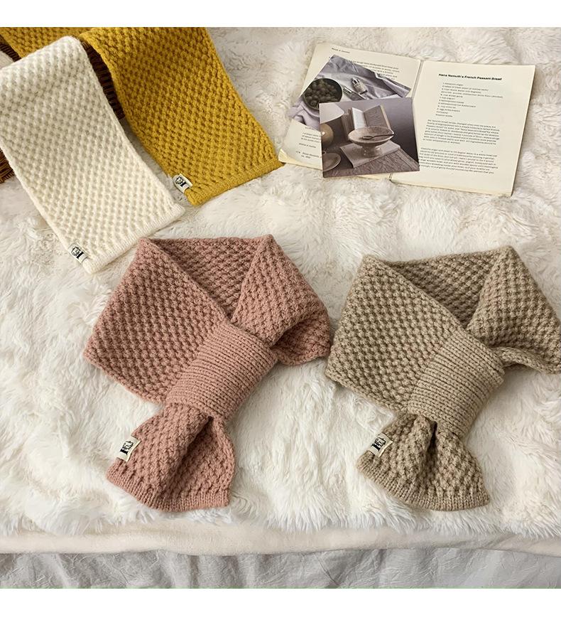 Bufanda pequeña para mujer, otoño e invierno, nueva, Corea del Sur, combina con todo, cálida, color sólido, popular en Internet, bufanda de punto cruzado de lana perezosa.