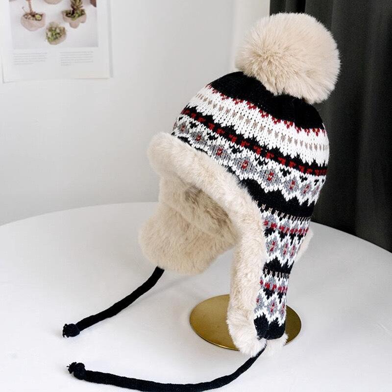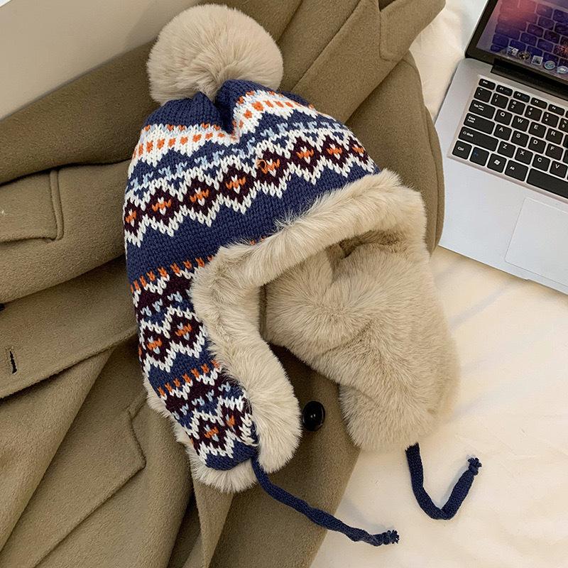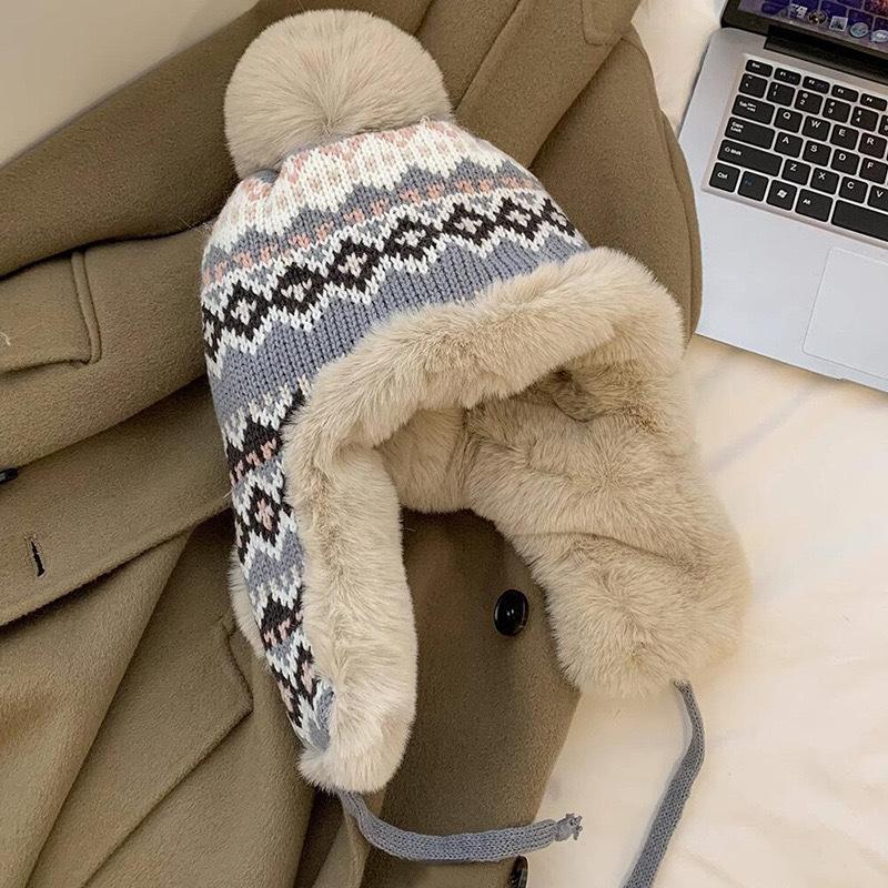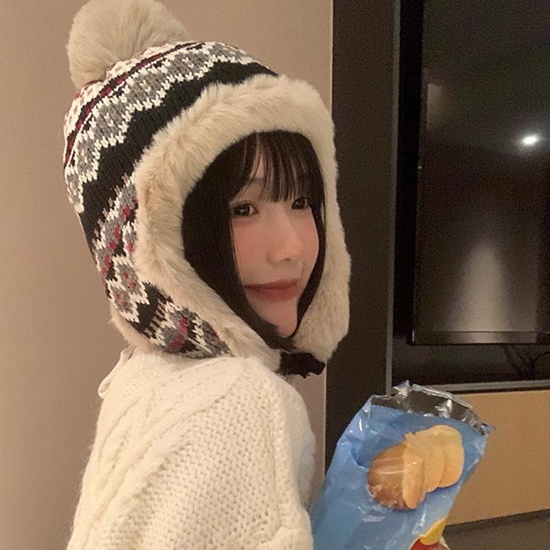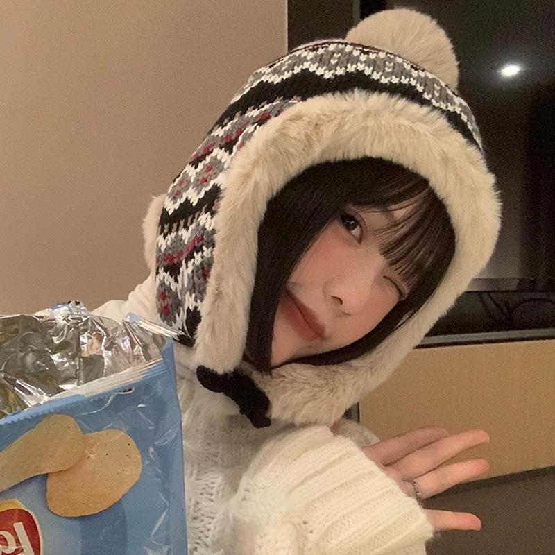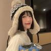 Chapéu de proteção de orelha de malha feminino outono e inverno estilo coreano rosto mostrado pequeno pelúcia espessado lei feng chapéu equitação à prova de vento chapéu quente à prova de frio