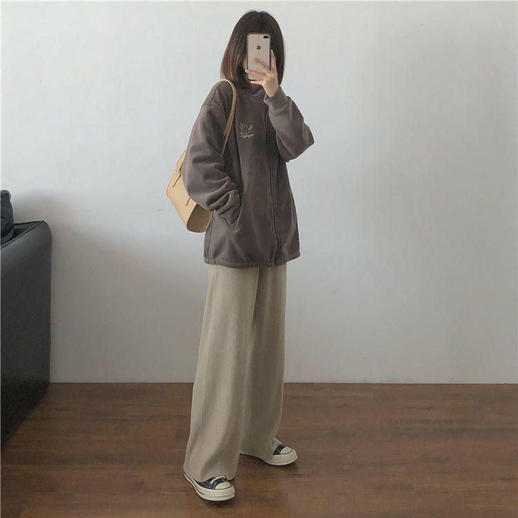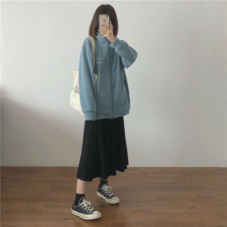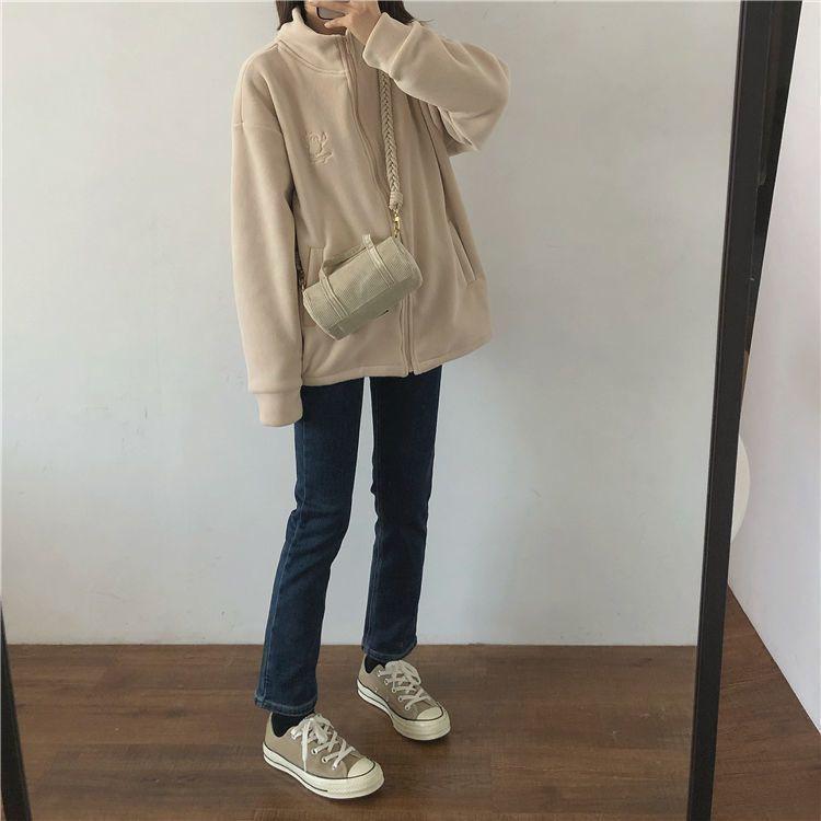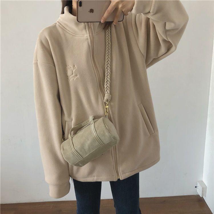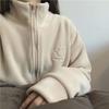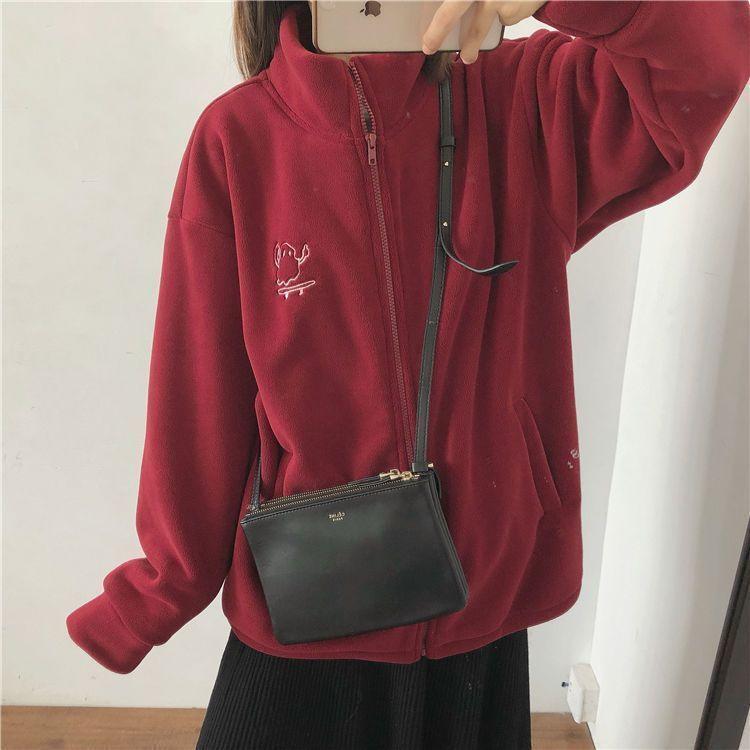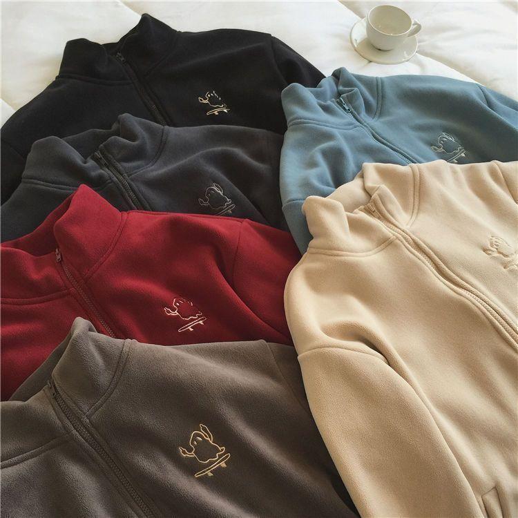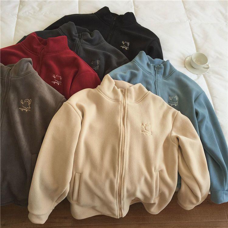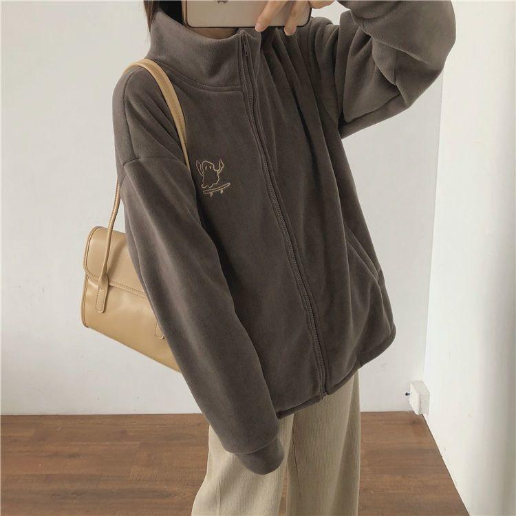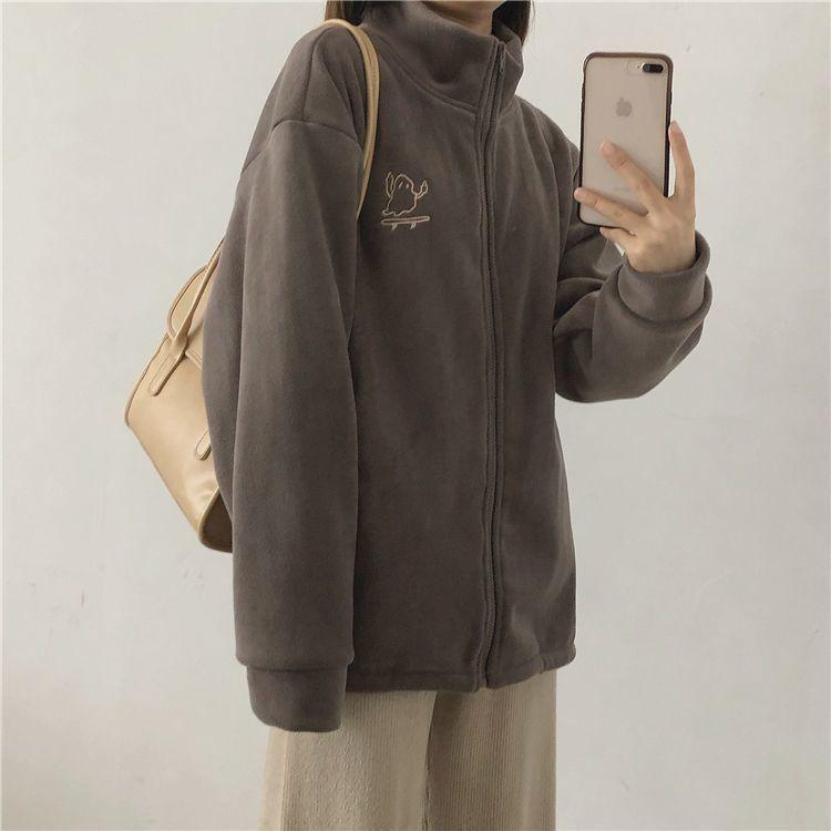 Patrón de bordado polar grueso cuello alto cremallera suéter cálido estudiantes mujeres manga larga abrigo de invierno en stock al por mayor