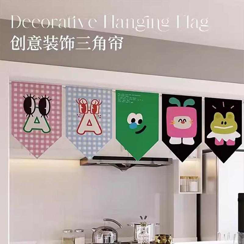 Cortina triangular de dibujos animados para el hogar, cocina, partición, puerta, decoración de la cabeza, cortina corta, sala de estar, ventana, refugio, media cortina, sin perforaciones
