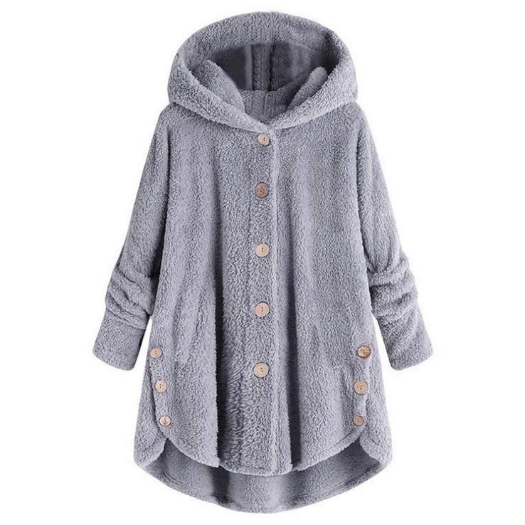 Amazon Ebay 2019 Invierno Nueva Moda Mujer Europeo y Americano Botón Felpa Top Asimétrico Trendy Marca Color Puro Chaqueta