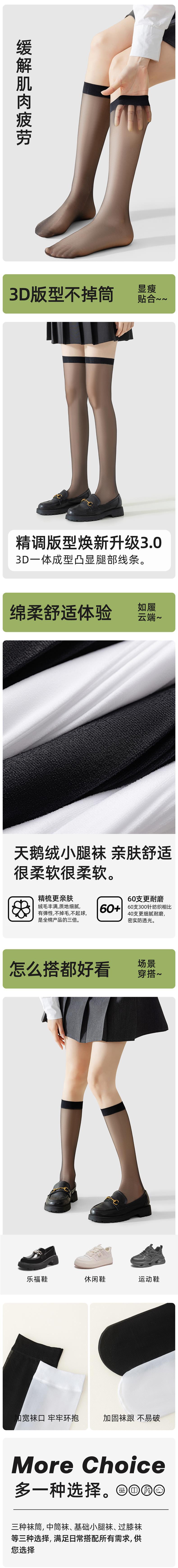 Highly transparent black calf socks, Highly transparent white calf socks, Highly transparent skin color calf s...