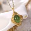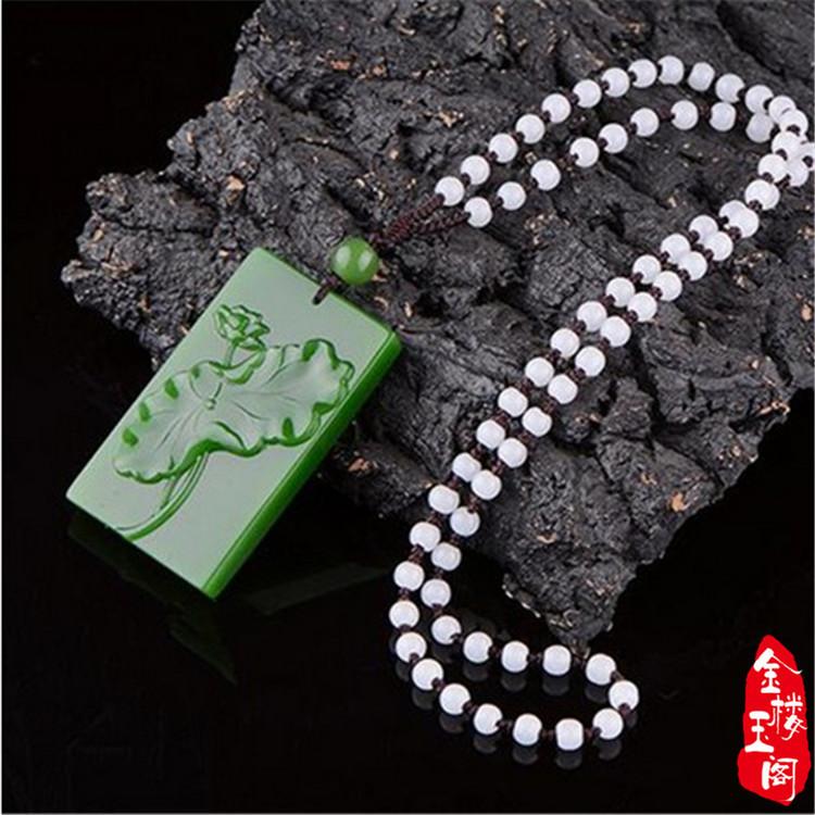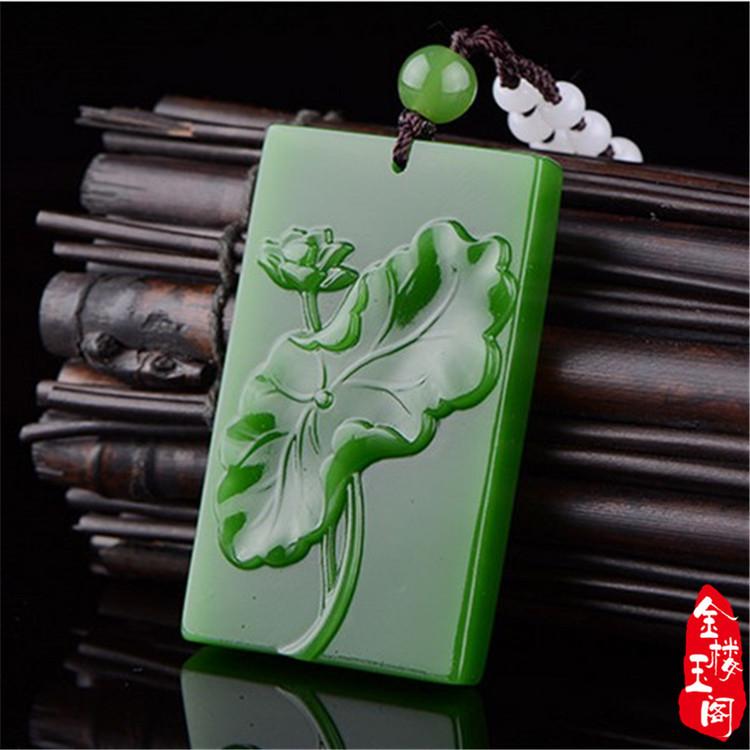 Colgante de jade al por mayor con forma de hoja de loto de color jaspe hetiano, color azul loto, para hombre y mujer, con máscara exterior