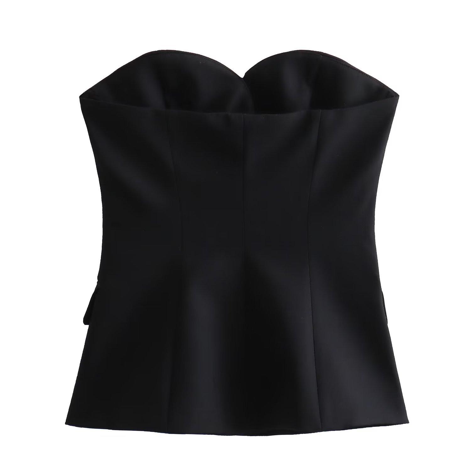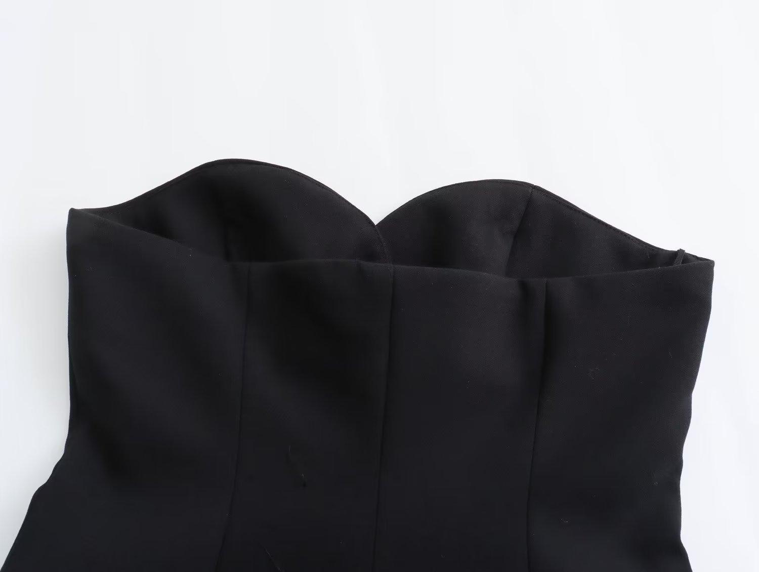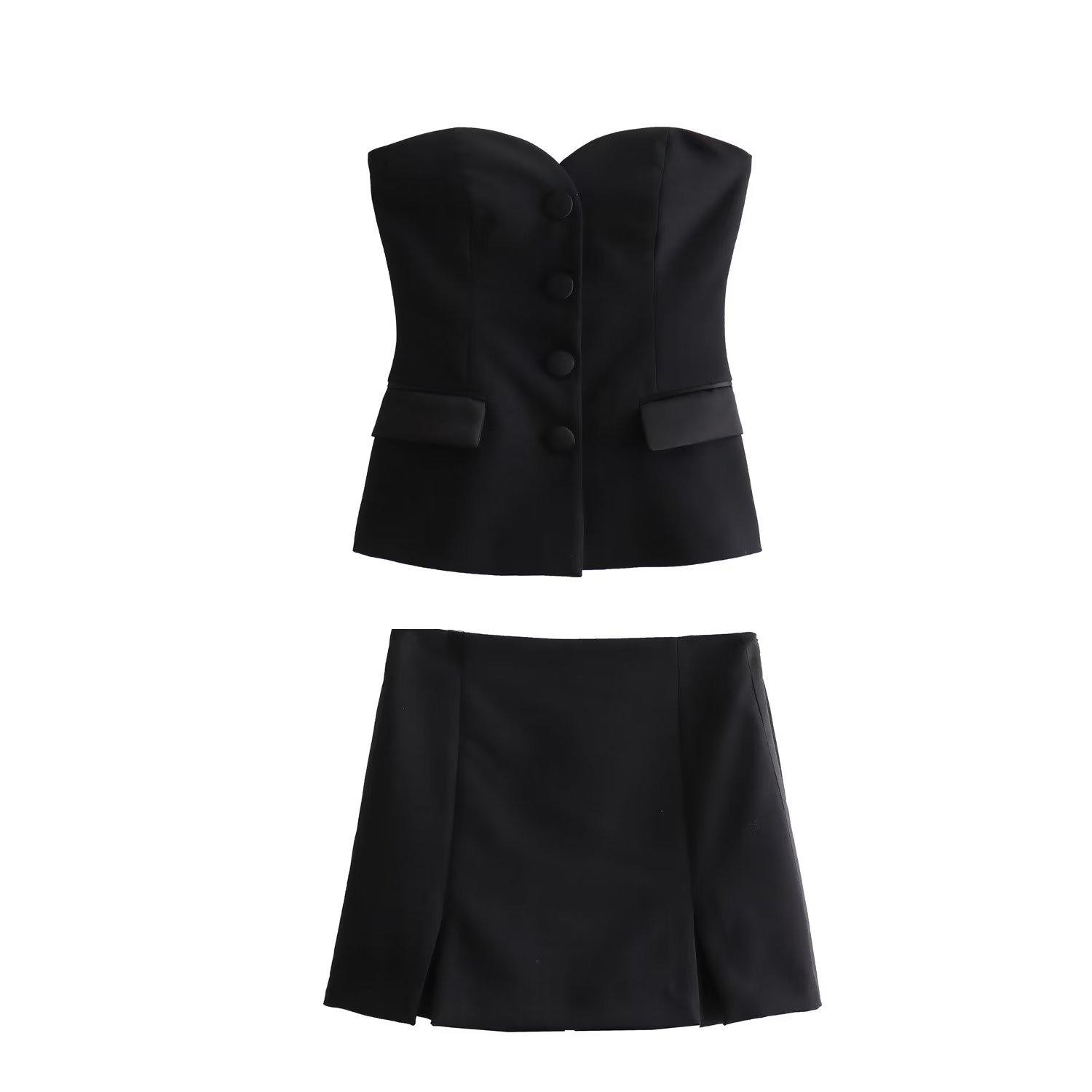 Nuevo Otoño e Invierno 2023 Negro Top de Tubo Europeo y Americano para Mujer + Falda Slim Estilo para Mujer