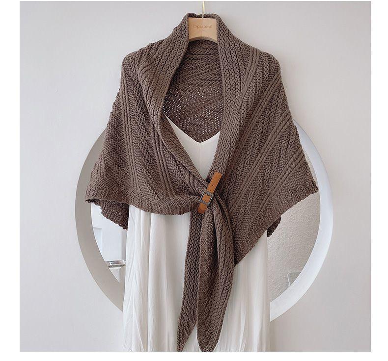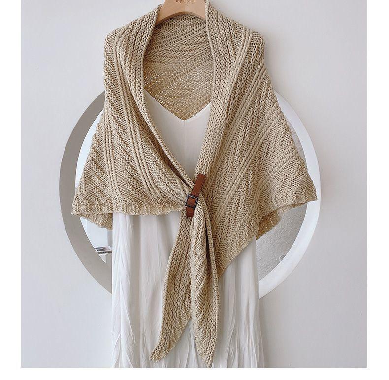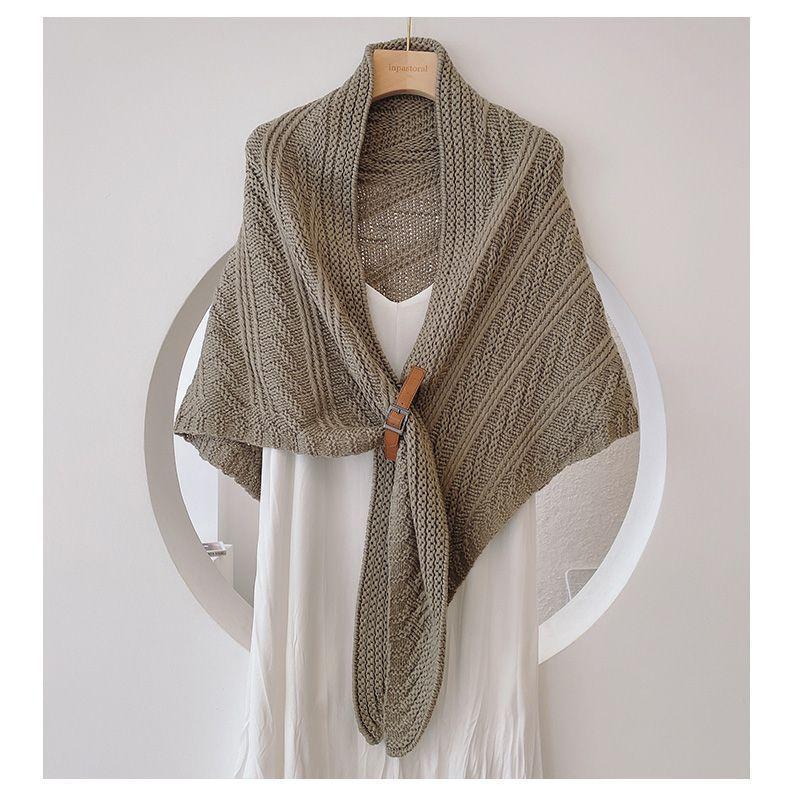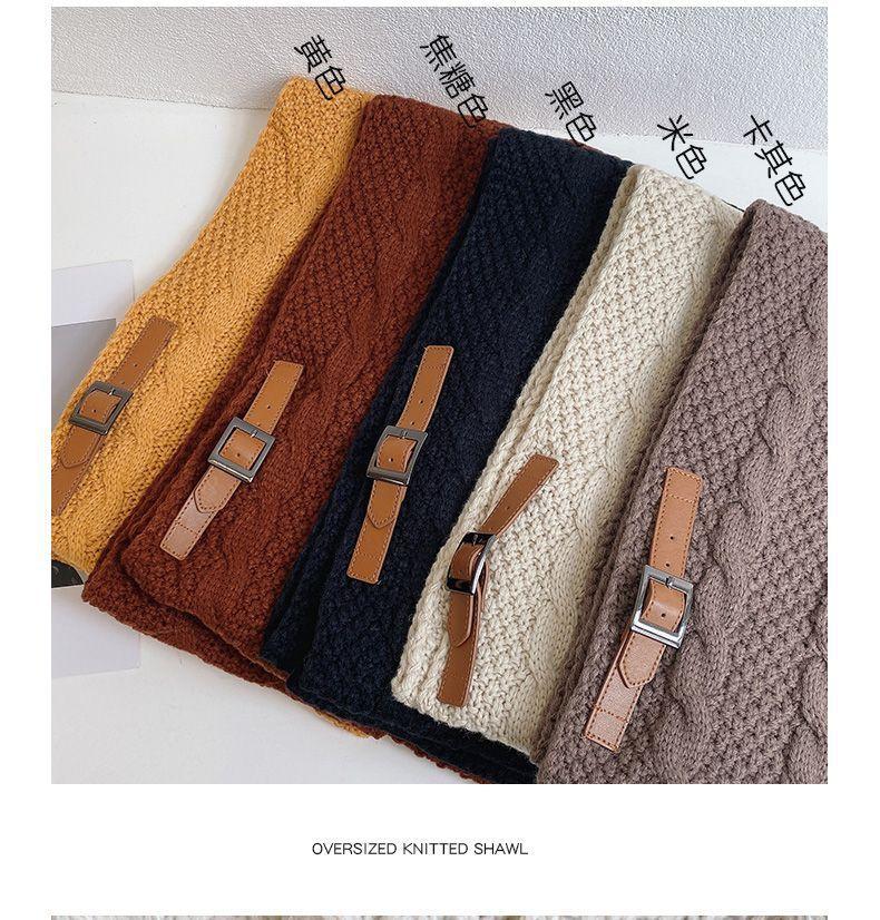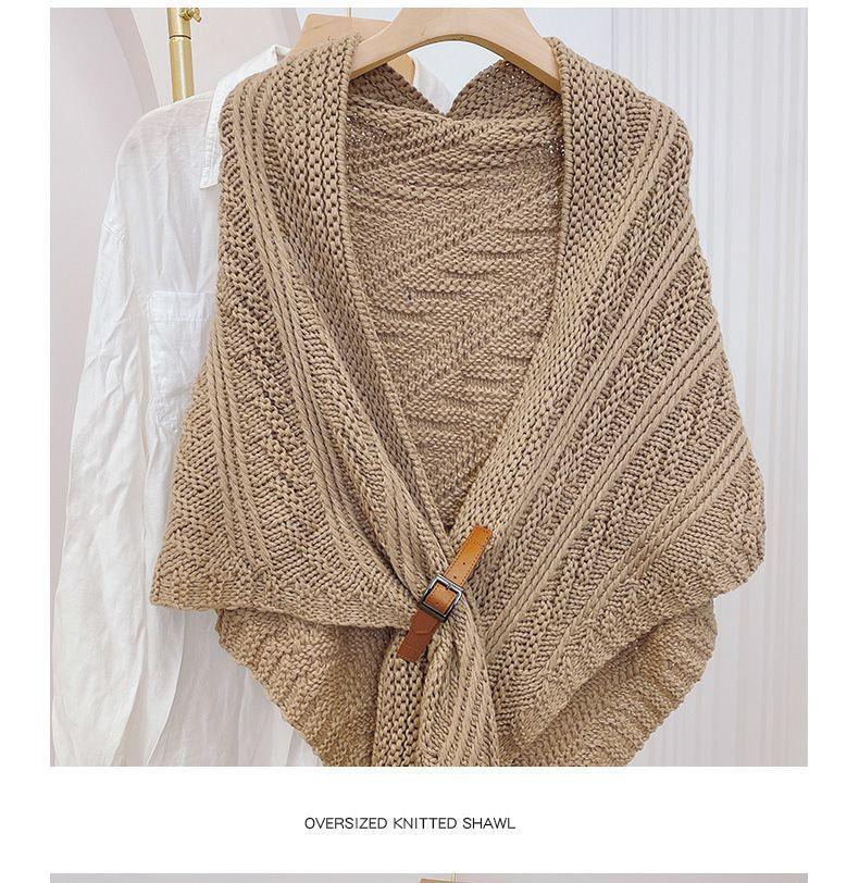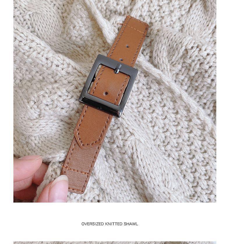 Threaded leather buckle shawl-khaki, Threaded leather buckle shawl-light coffee color, Threaded leather buckle...