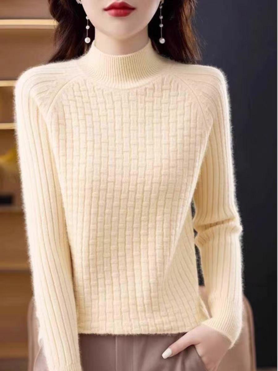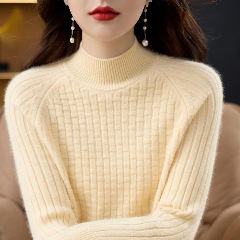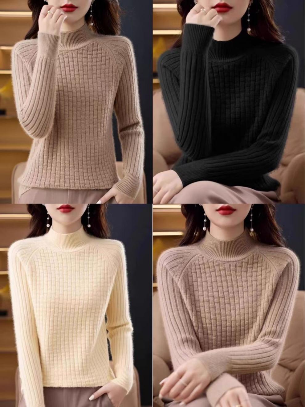 Suéter de Cuello Alto Medio Nuevo de Primavera y Otoño 2025 Tejido Base Versátil Suelto