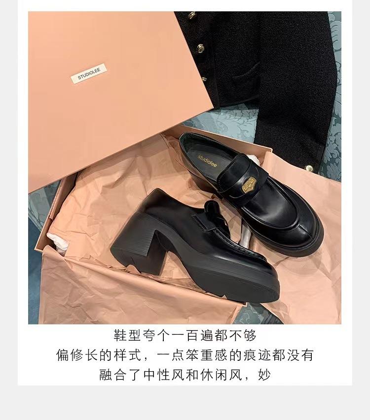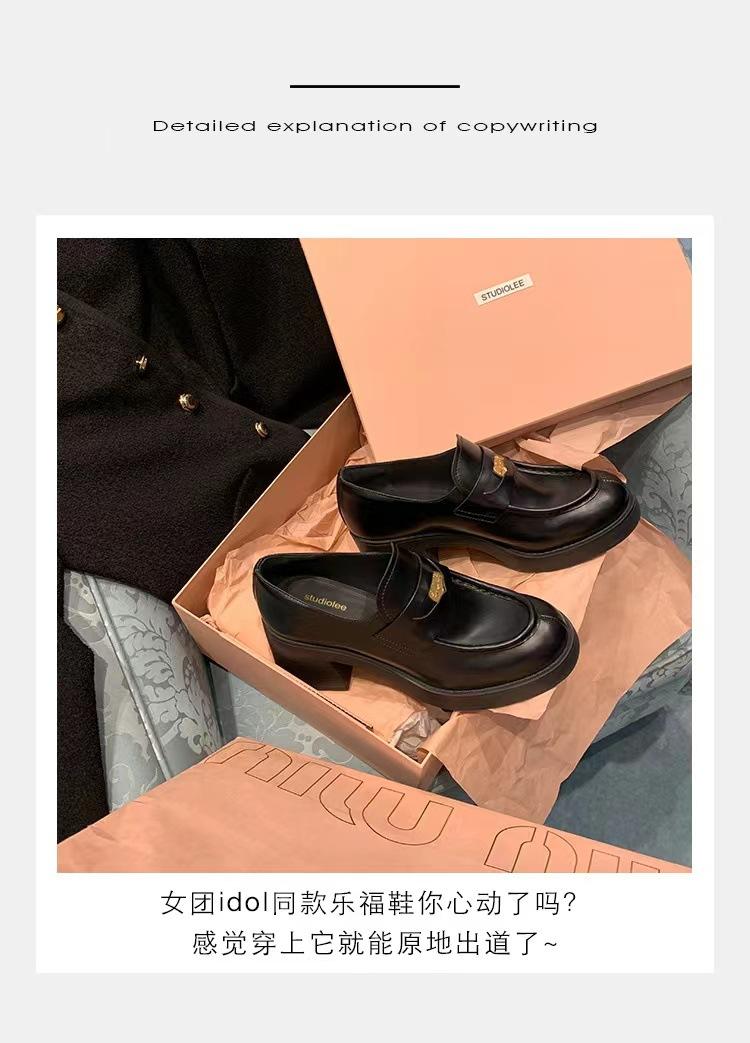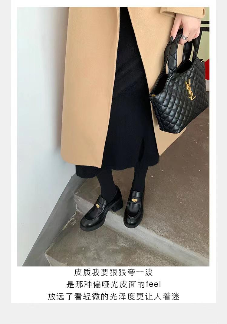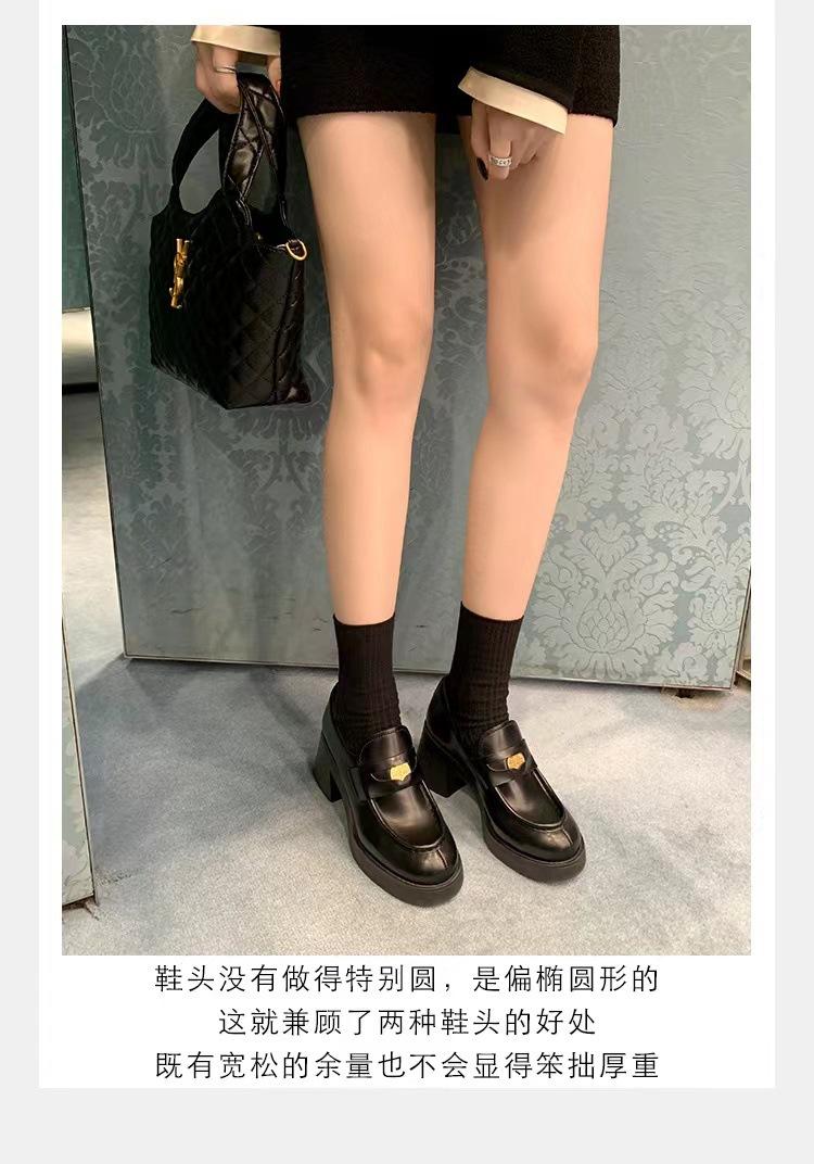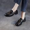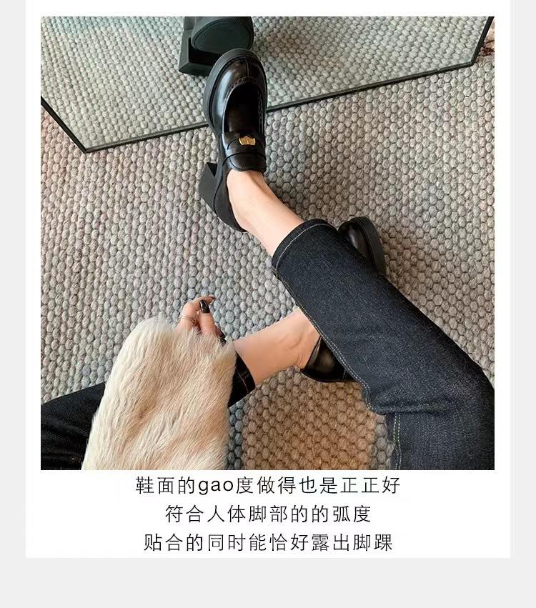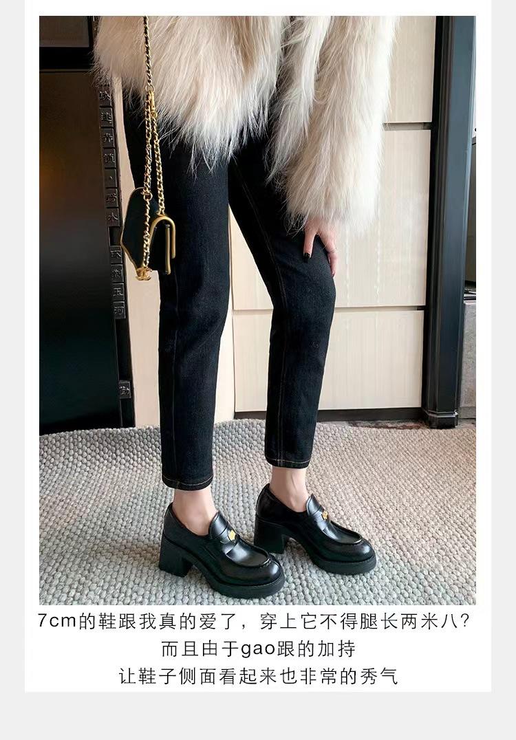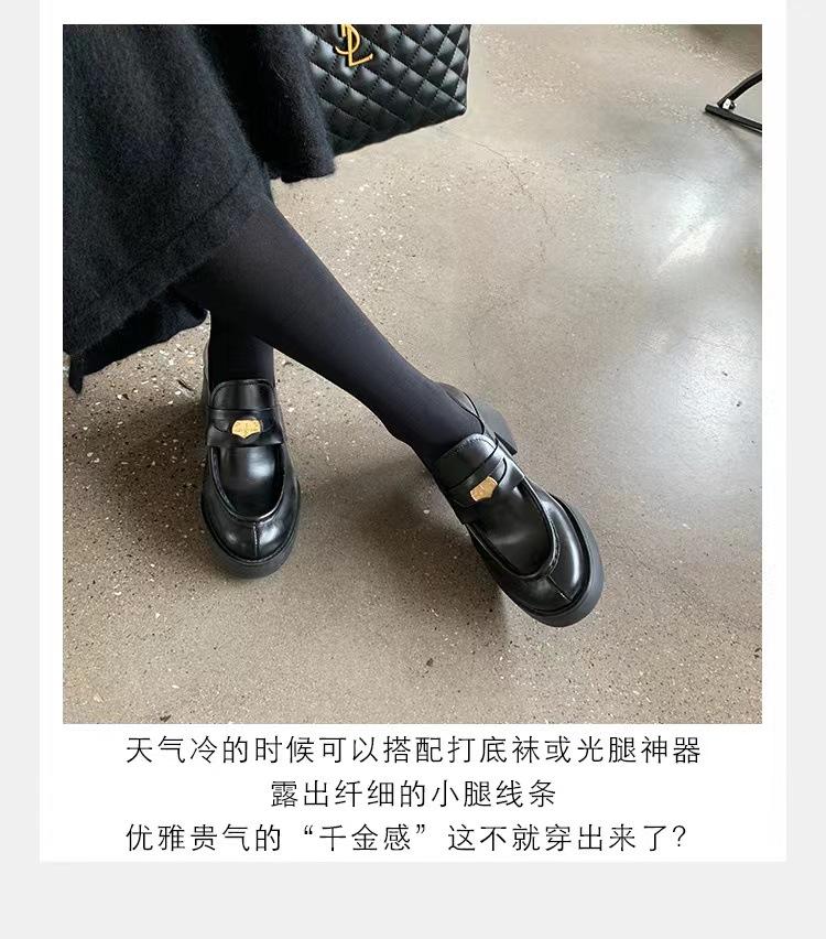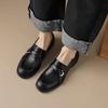 Mocasines de Cuero Genuino para Mujer 2024 Primavera Nuevo Tacón Grueso Suela Gruesa Flats Moneda Dorada Negro Estilo Británico Slip-on Zapatos de Cuero Pequeños