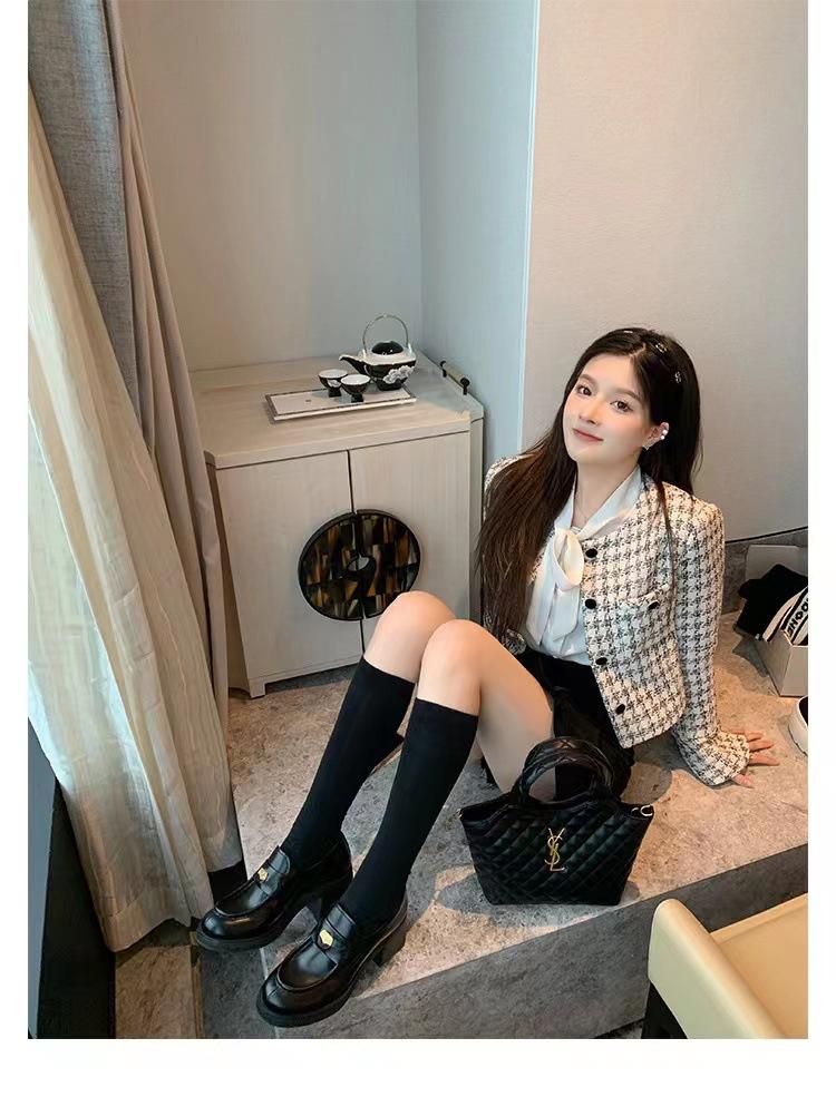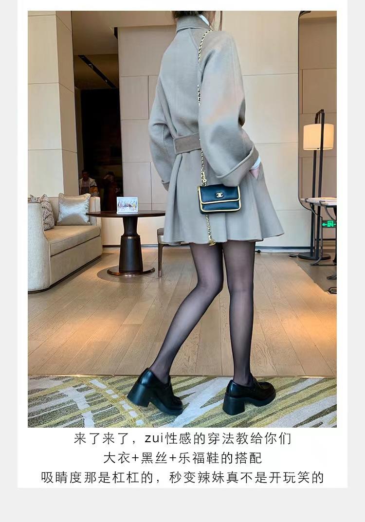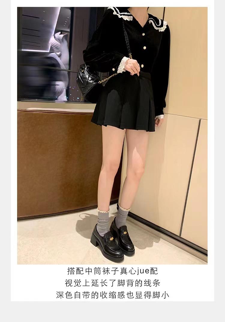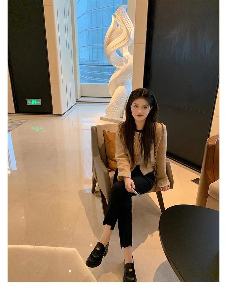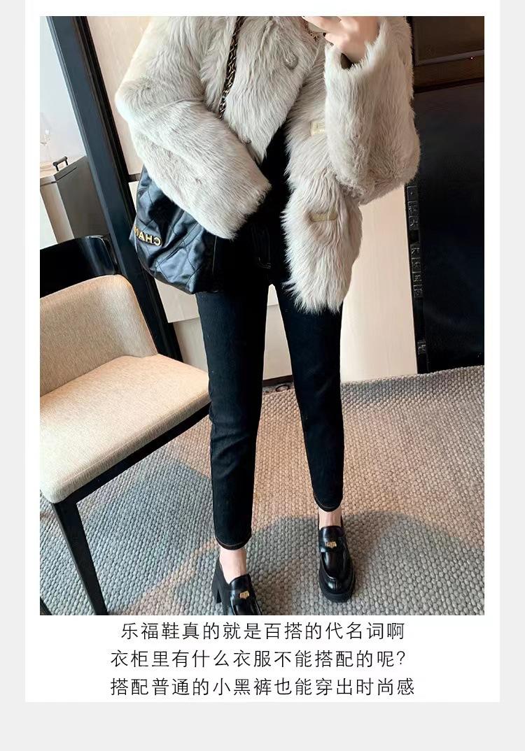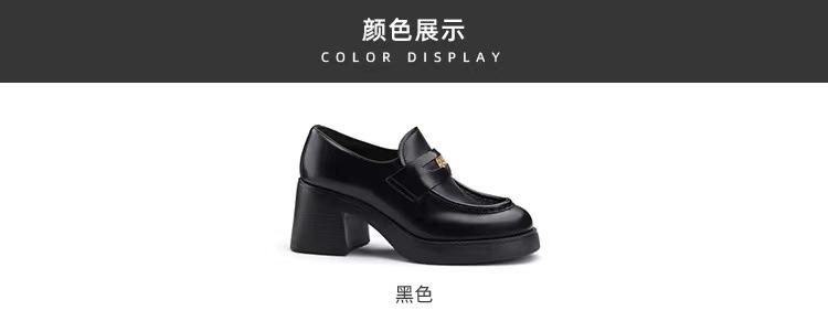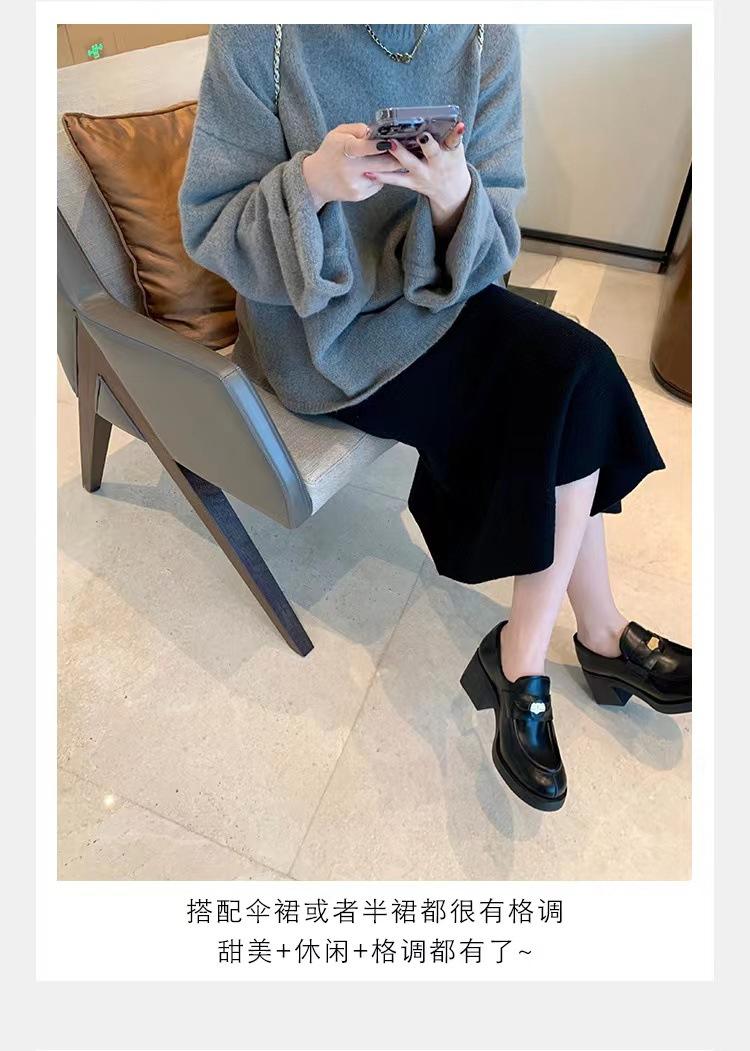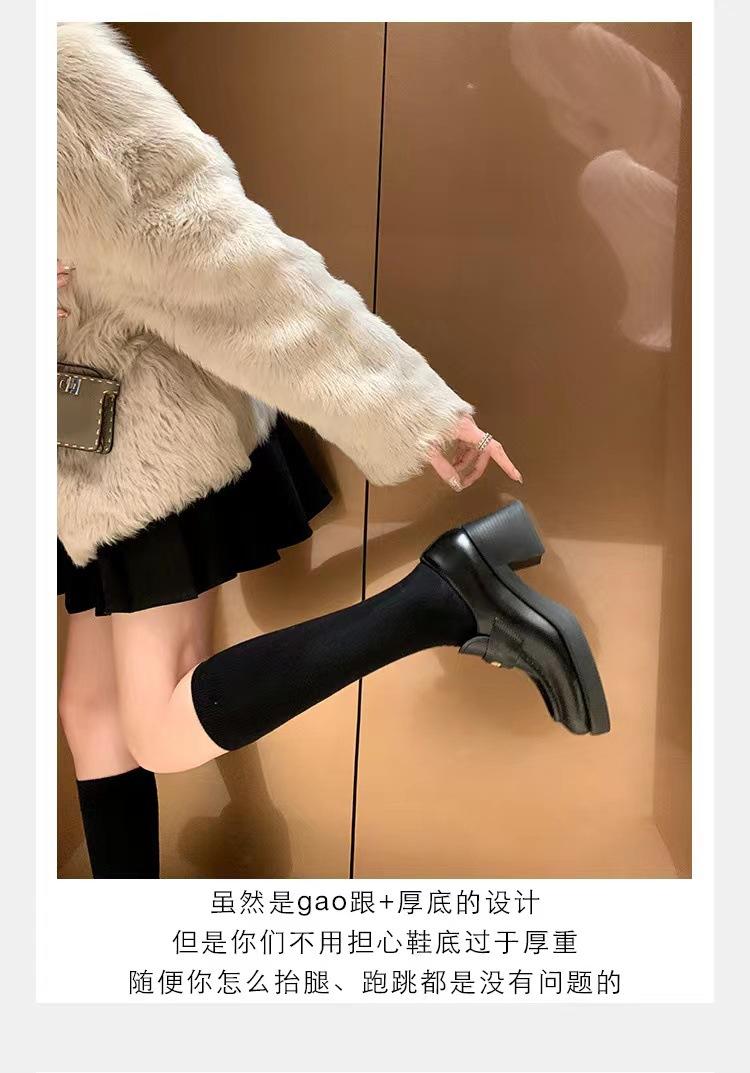Mocasines de Cuero Genuino para Mujer 2024 Primavera Nuevo Tacón Grueso Suela Gruesa Flats Moneda Dorada Negro Estilo Británico Slip-on Zapatos de Cuero Pequeños