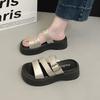 Sandalias y pantuflas de suela gruesa para mujer, ropa de verano para exteriores, moda de red roja, interior, hogar, sensación de excrementos, suela suave, lindas pantuflas de una palabra, al por mayor