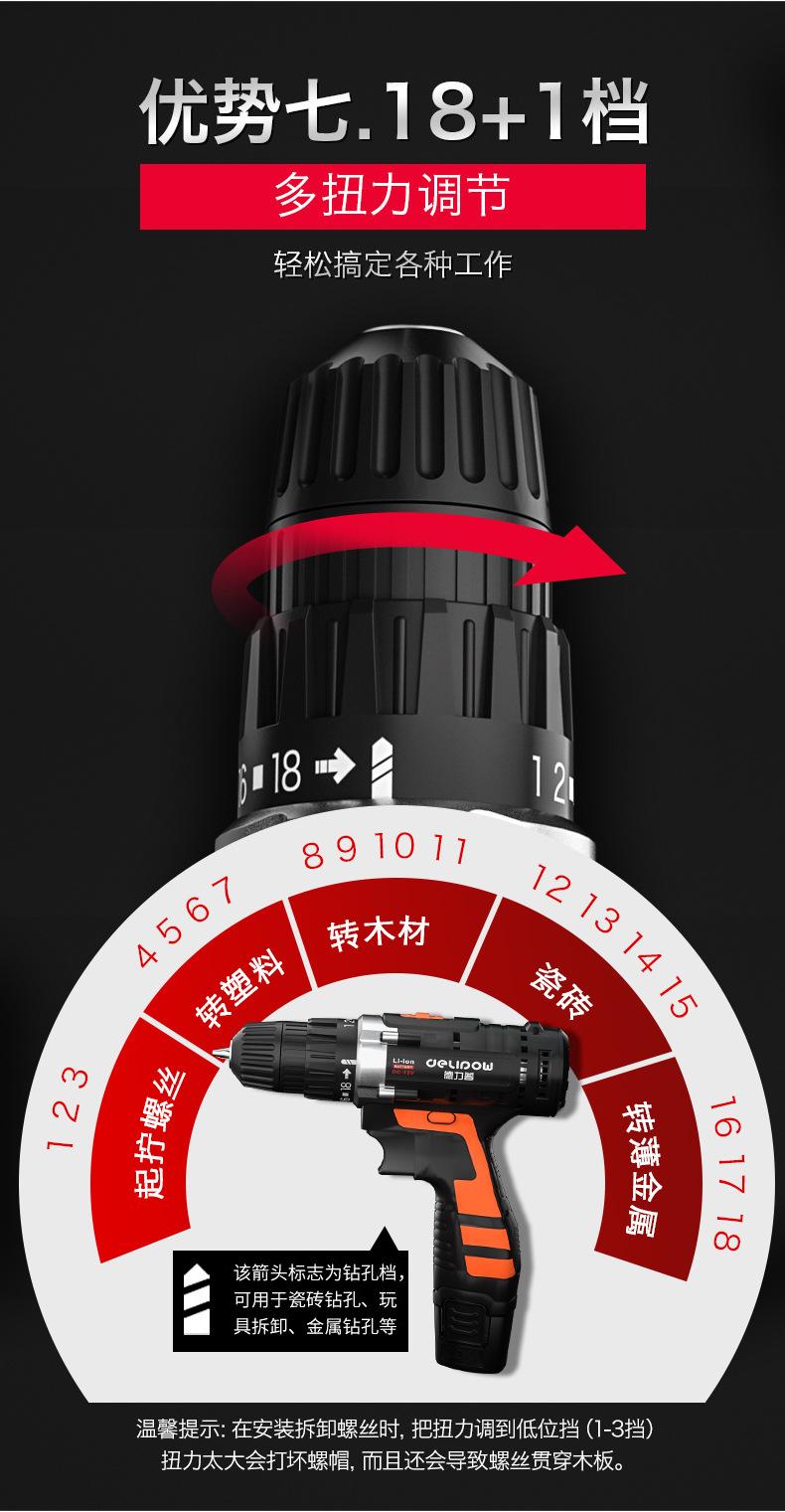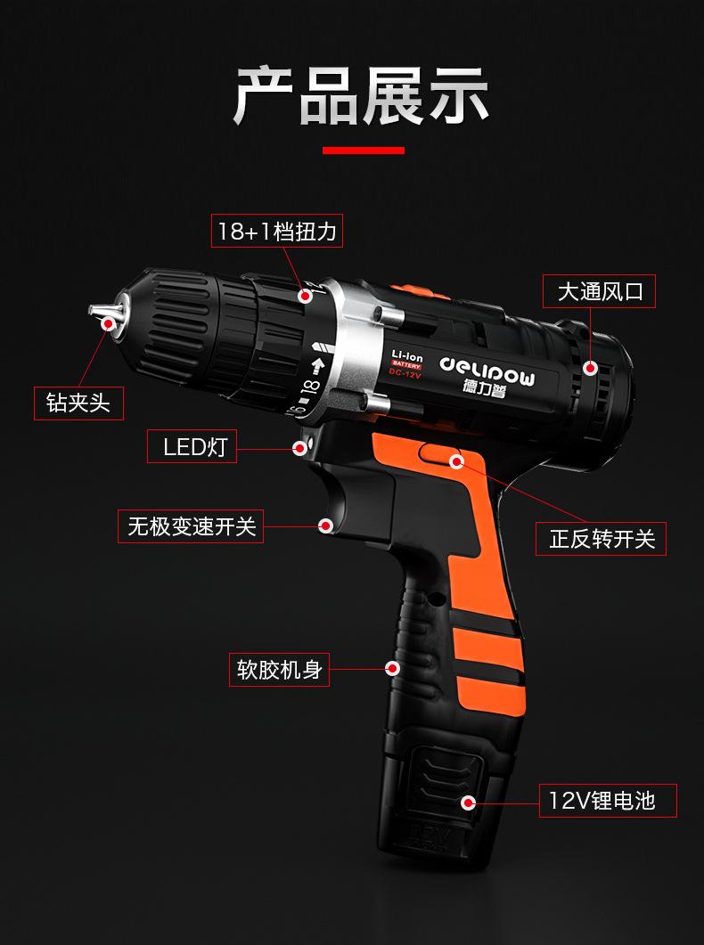 Taladro eléctrico de mano recargable Delip, taladro de mano, taladro de pistola, batería de litio, herramienta doméstica multifuncional, destornillador eléctrico, taladro eléctrico de mano.