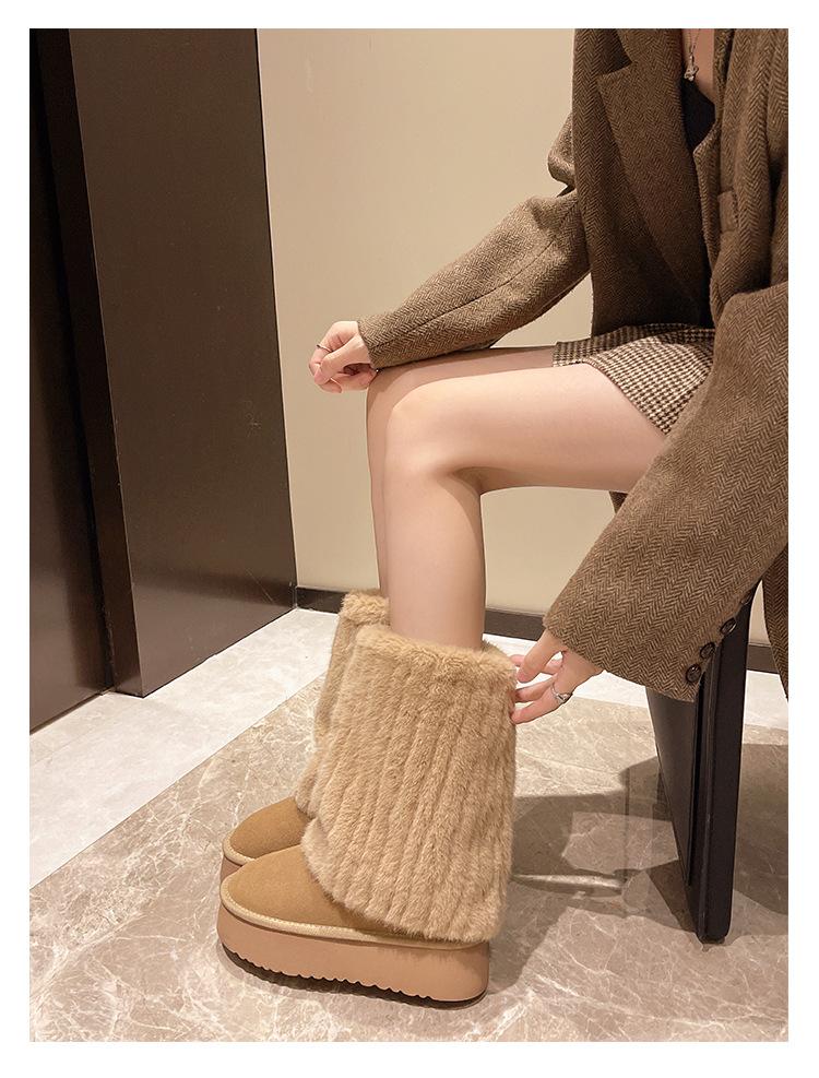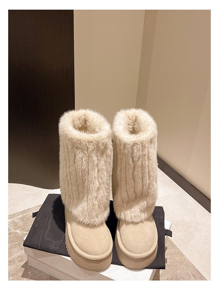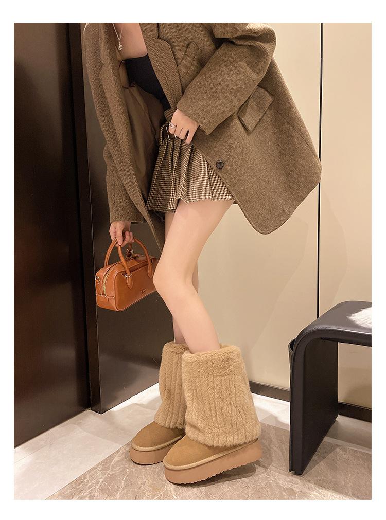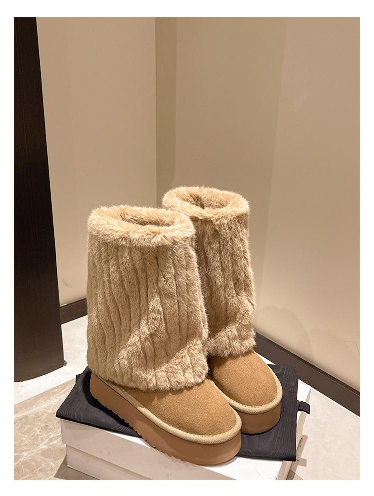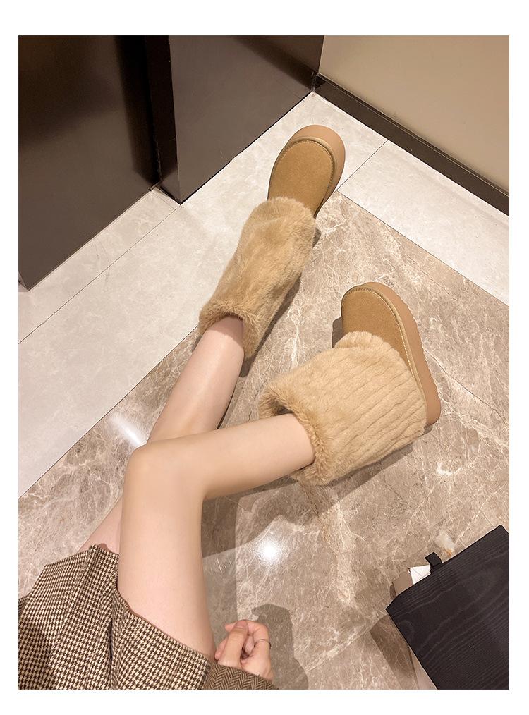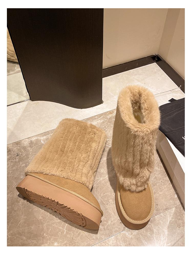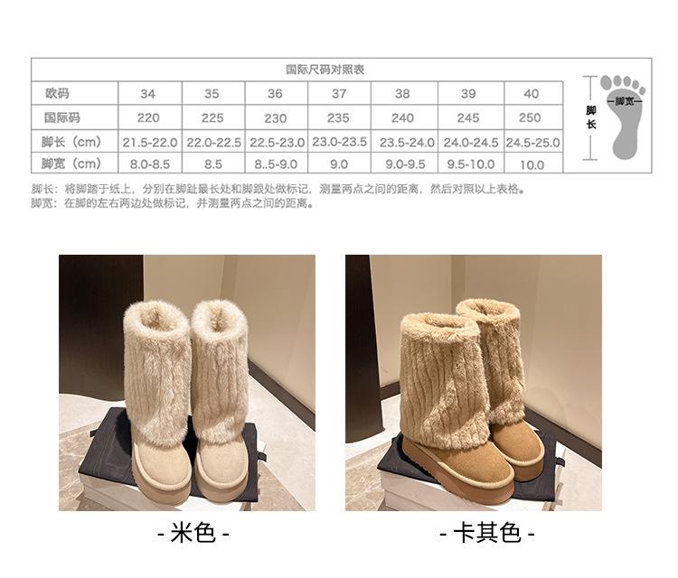 Botas de Nieve Mao Mao Mujer 2024 Nuevo Invierno Piel Una Suela Gruesa Antideslizante con Forro Polar Botas de Tubo para Pantalones Gruesos para Mujer
