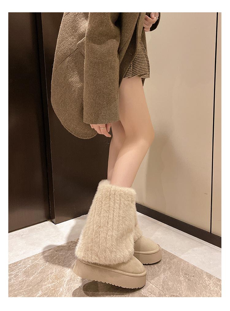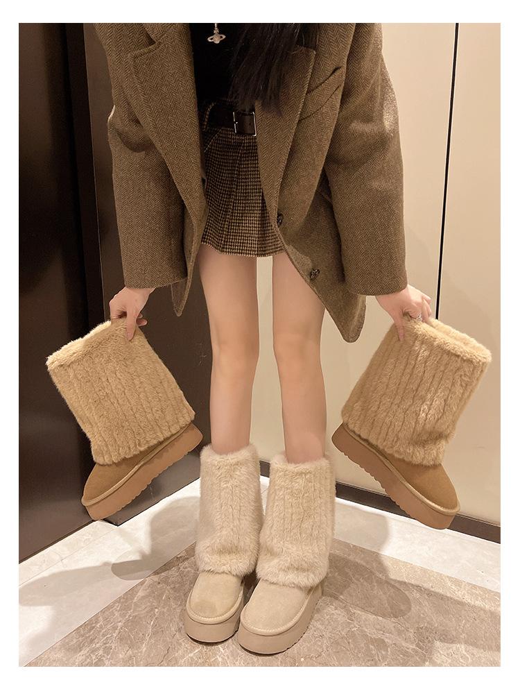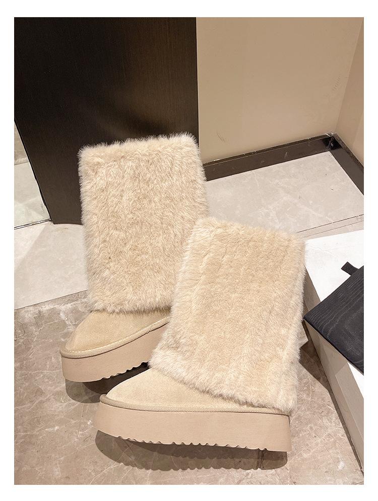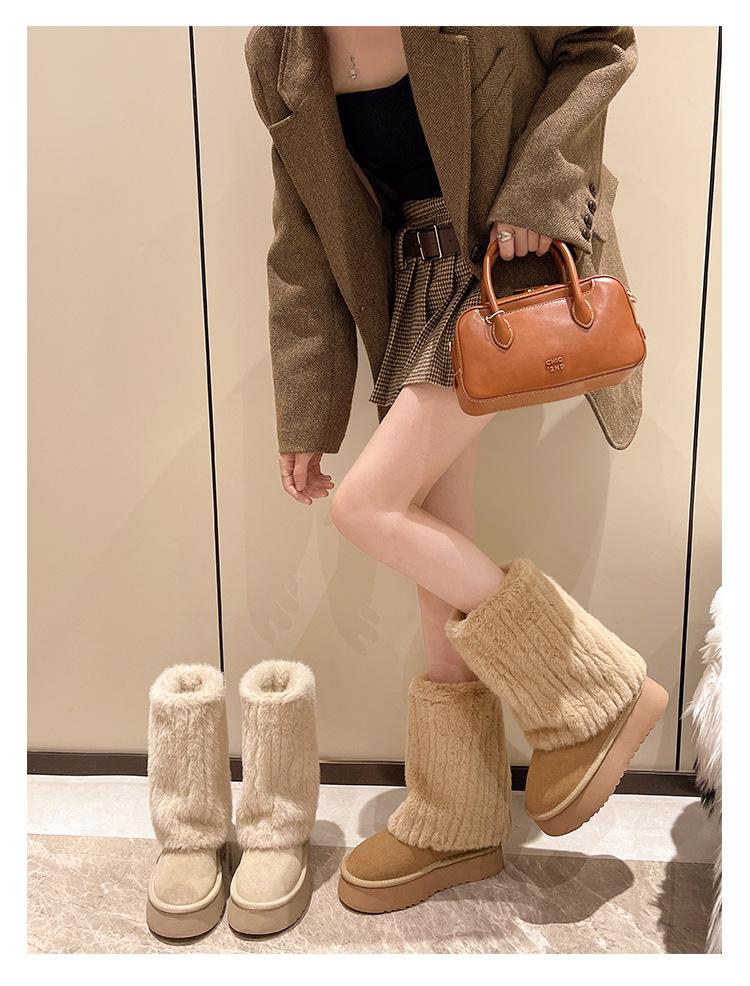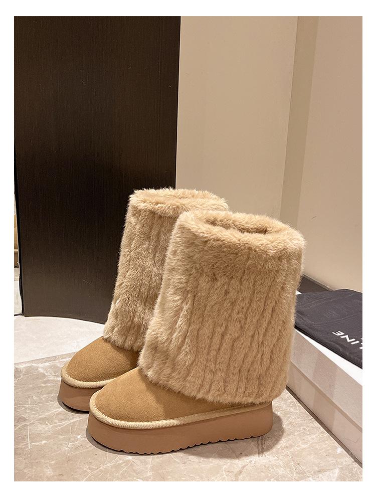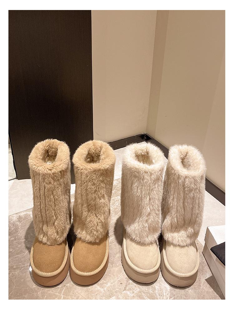 Botas de Nieve Mao Mao Mujer 2024 Nuevo Invierno Piel Una Suela Gruesa Antideslizante con Forro Polar Botas de Tubo para Pantalones Gruesos para Mujer