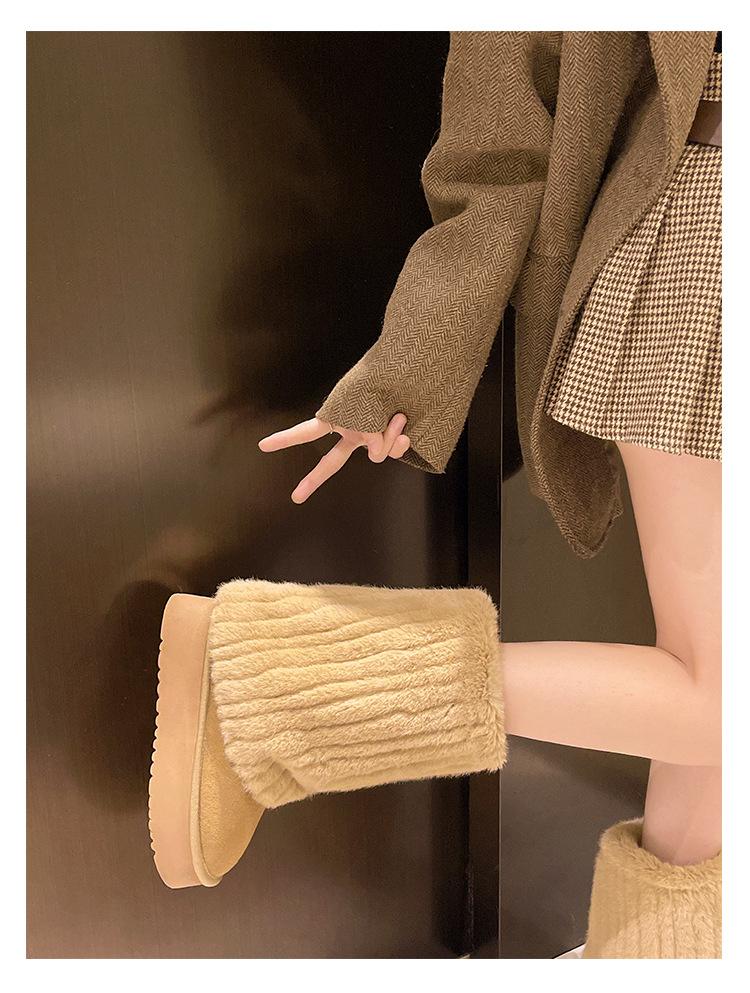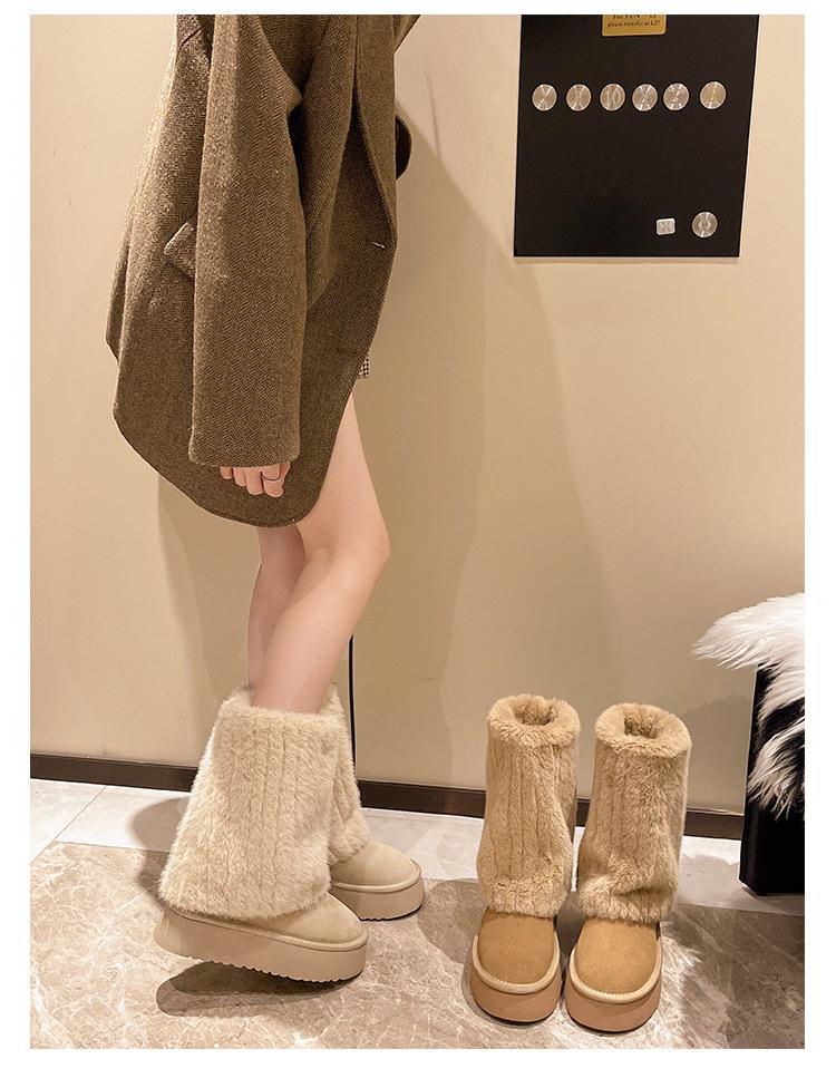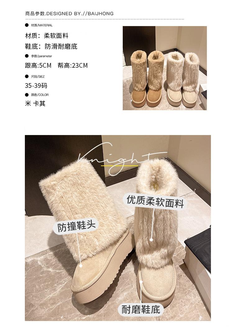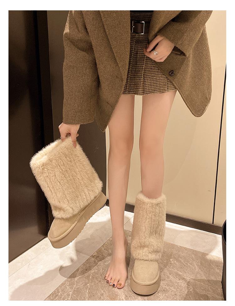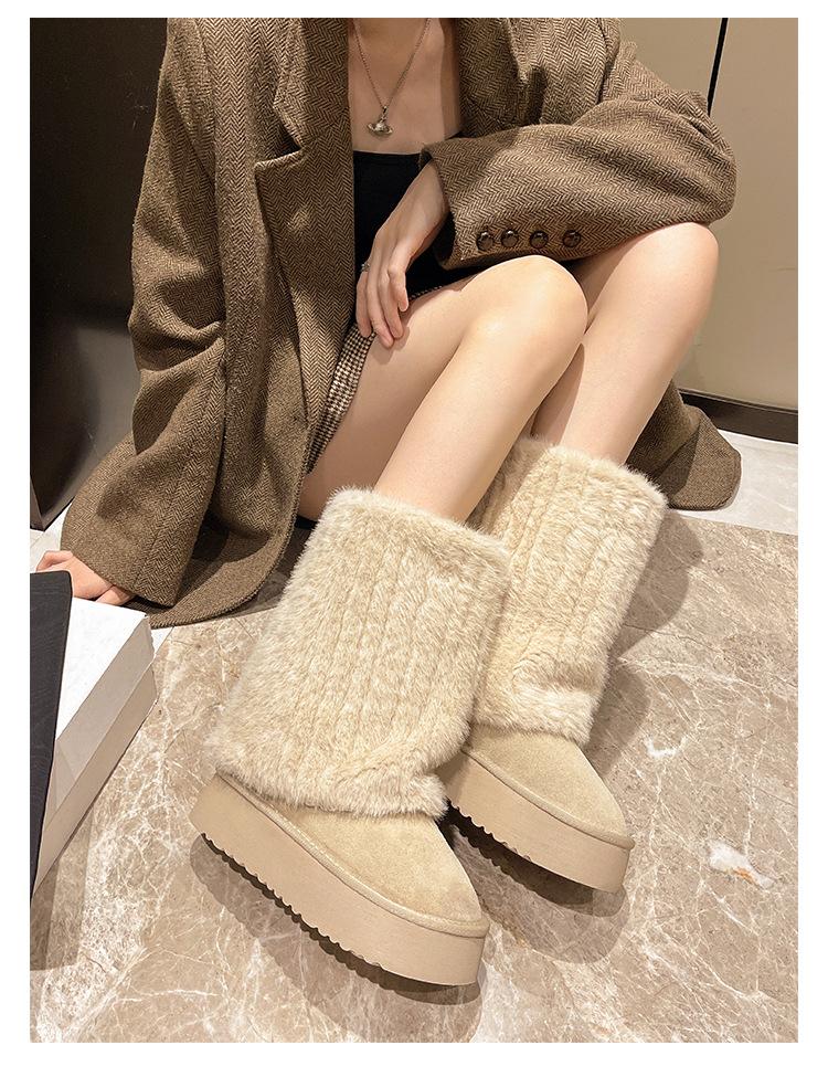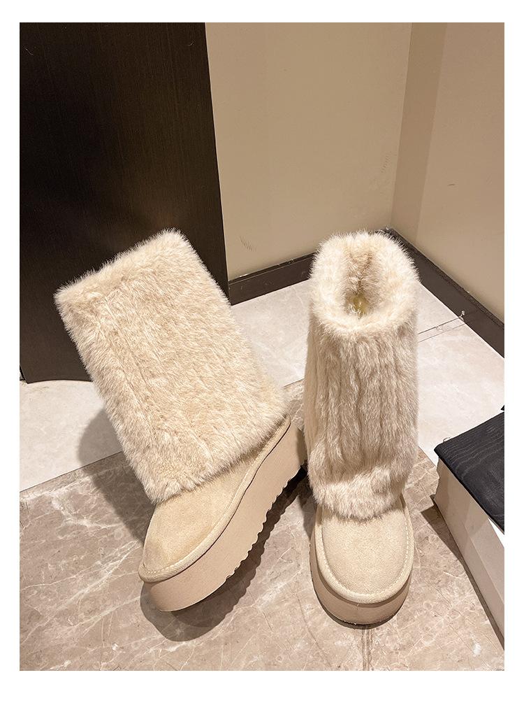 Botas de Nieve Mao Mao Mujer 2024 Nuevo Invierno Piel Una Suela Gruesa Antideslizante con Forro Polar Botas de Tubo para Pantalones Gruesos para Mujer