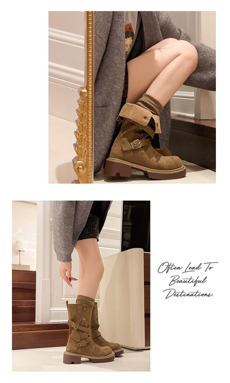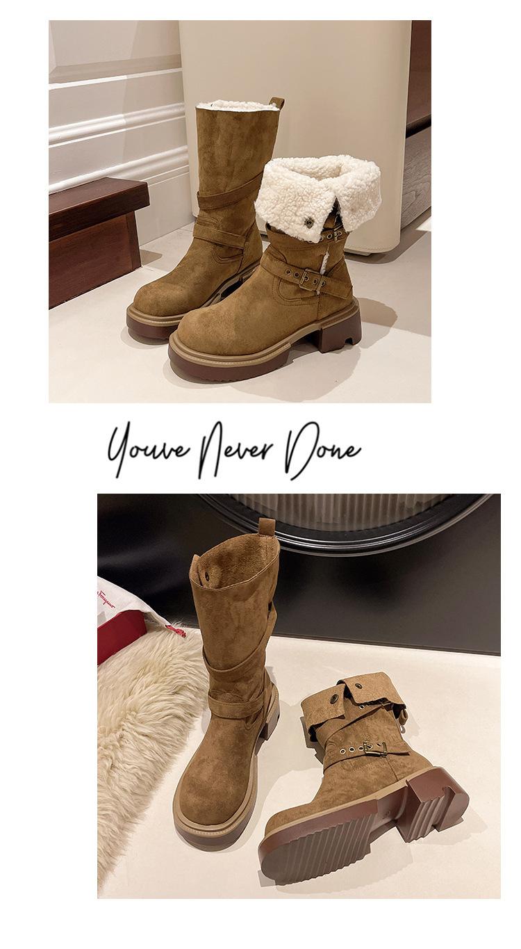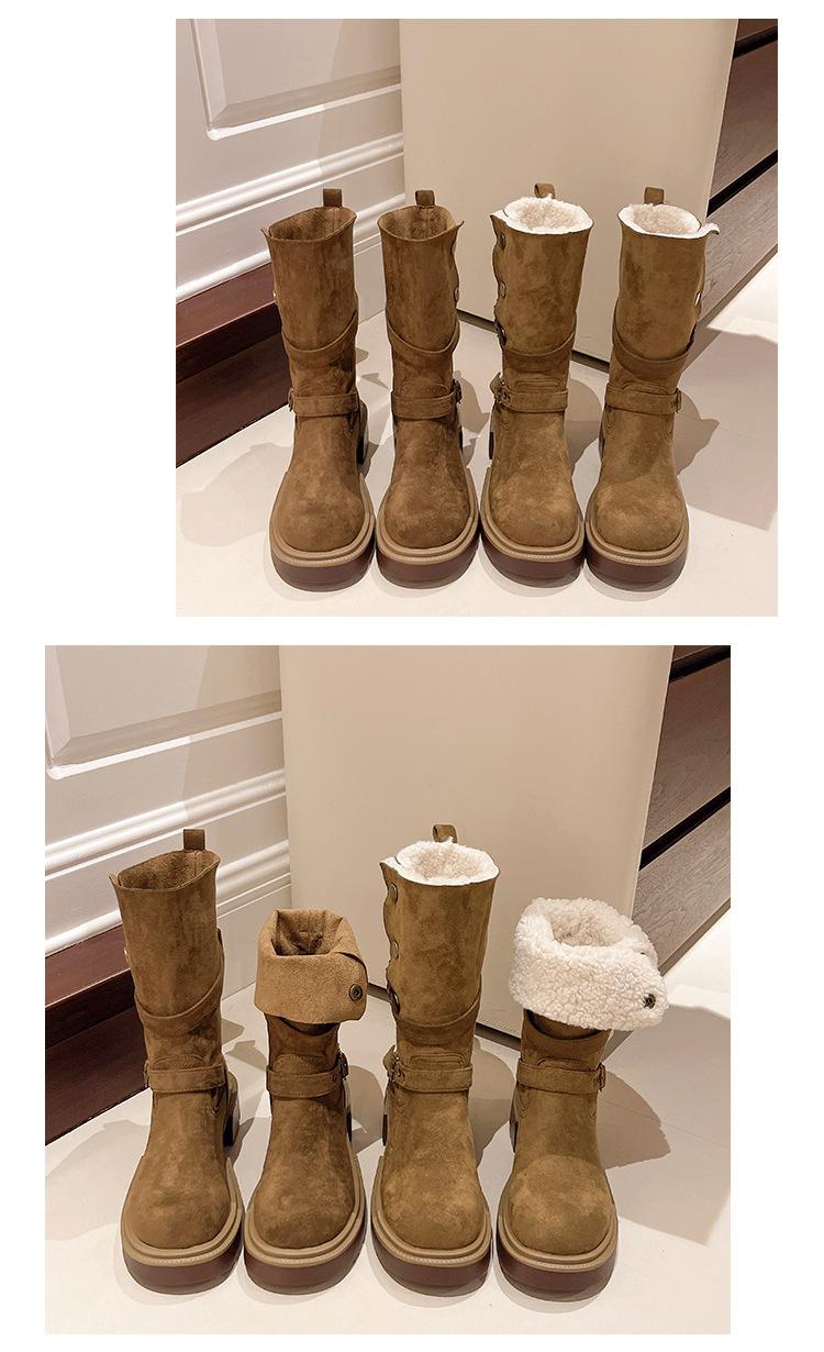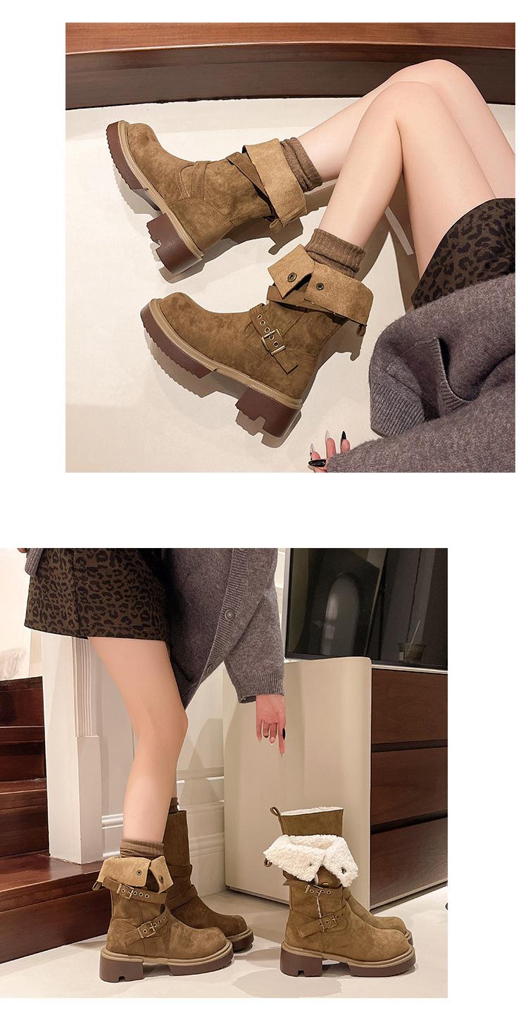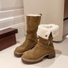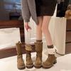 Botas Martin Maillard vintage para mujer, nuevas botas de nieve de tubo medio de lana de cordero con forro polar de invierno 2024, botines de suela gruesa para dos usos.