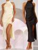 Vestido sin tirantes con costuras de satén de estilo europeo y americano 2024, falda de cintura alta con borde cruzado de primavera y verano, falda de cadera.