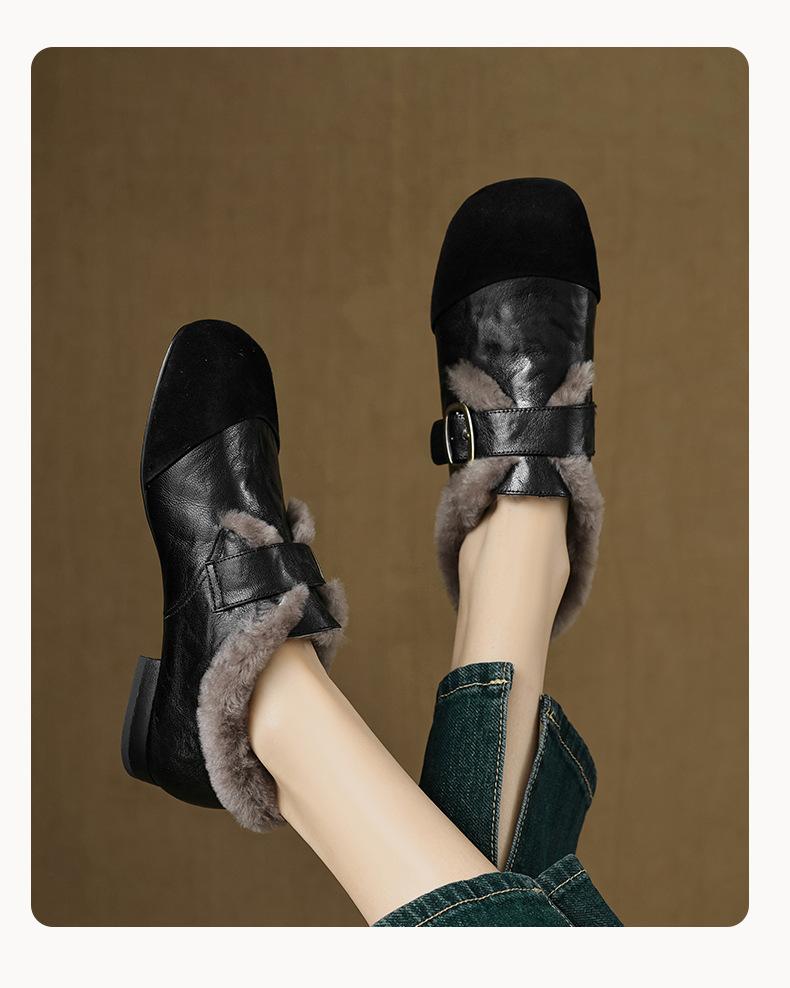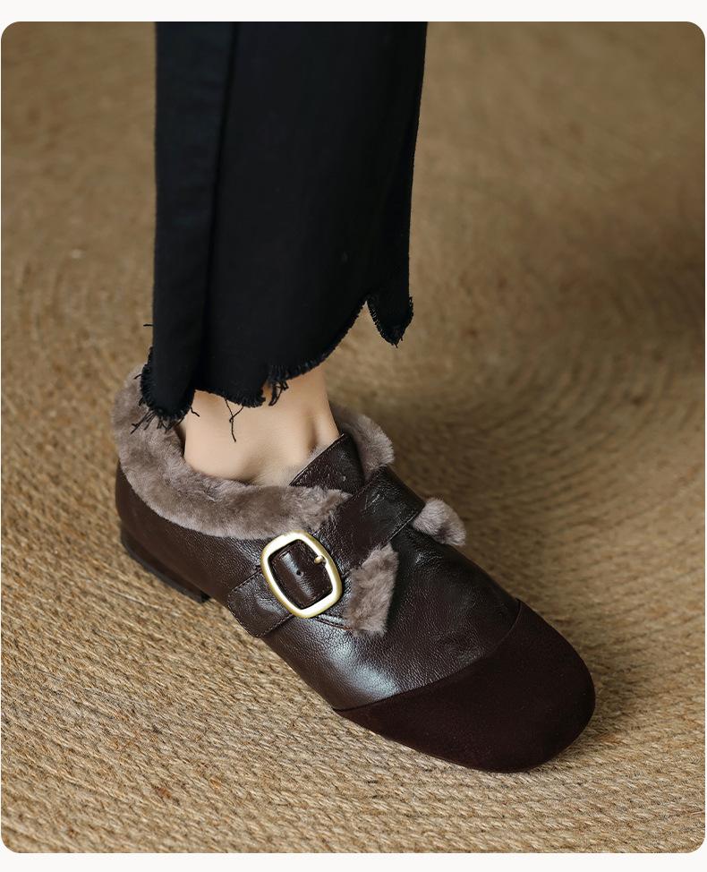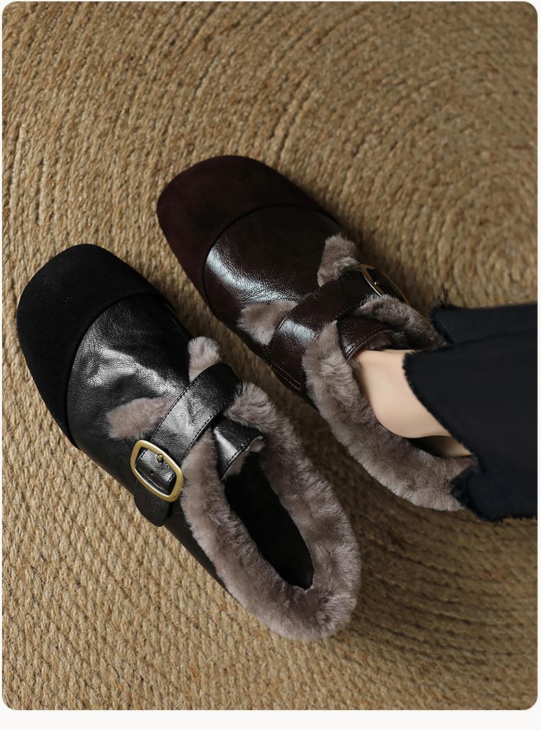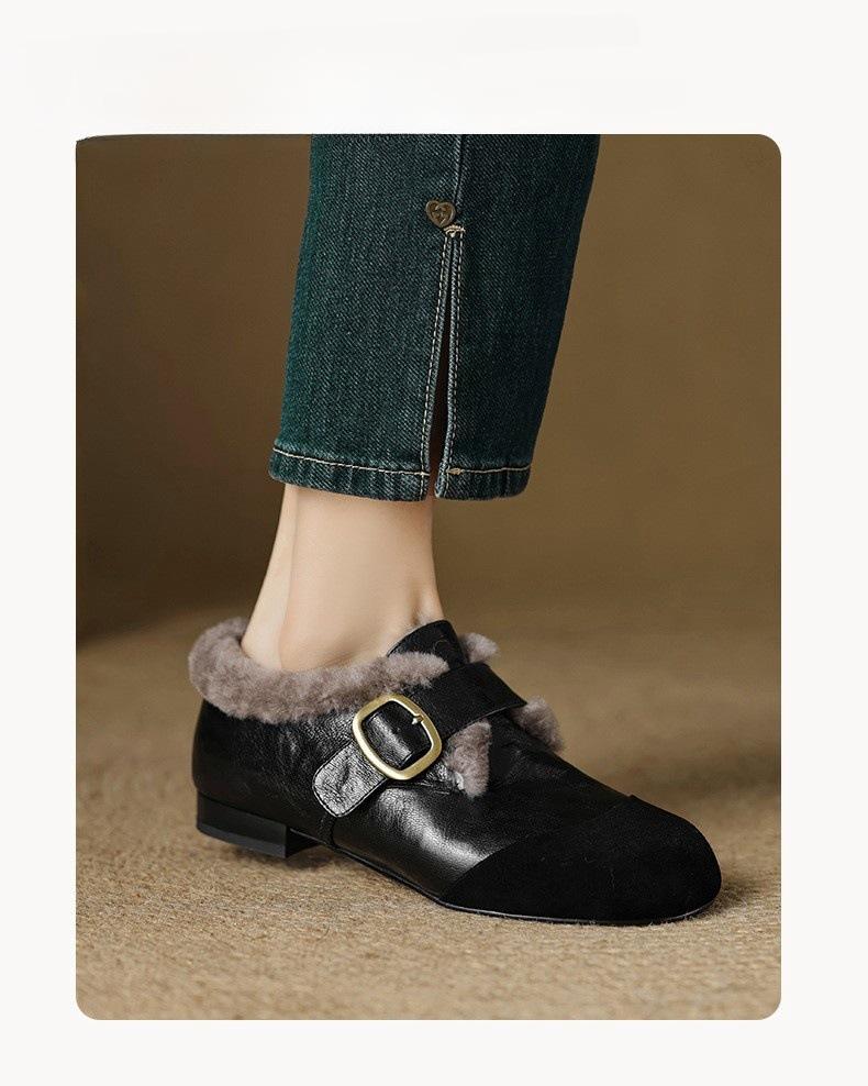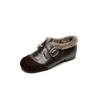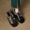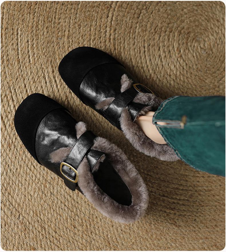 Zapatos planos de cuero retro franceses para mujer, otoño e invierno 2024, nuevos zapatos gruesos de boca profunda, zapatos cómodos de algodón.