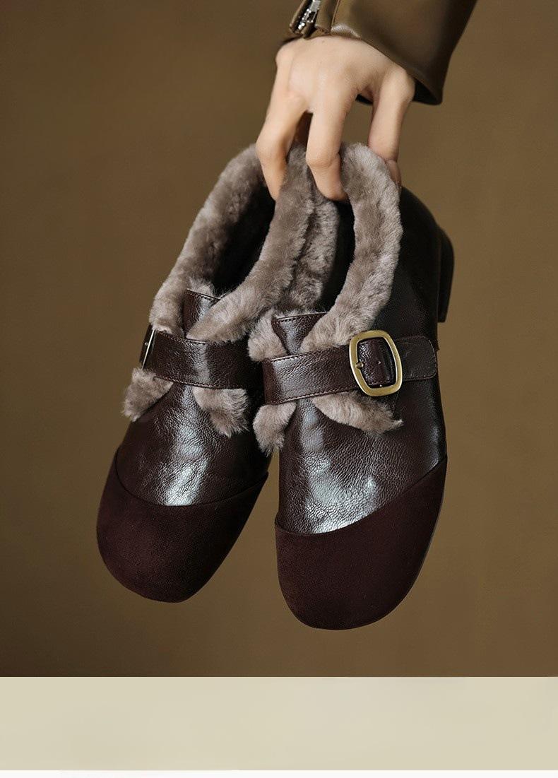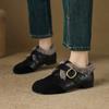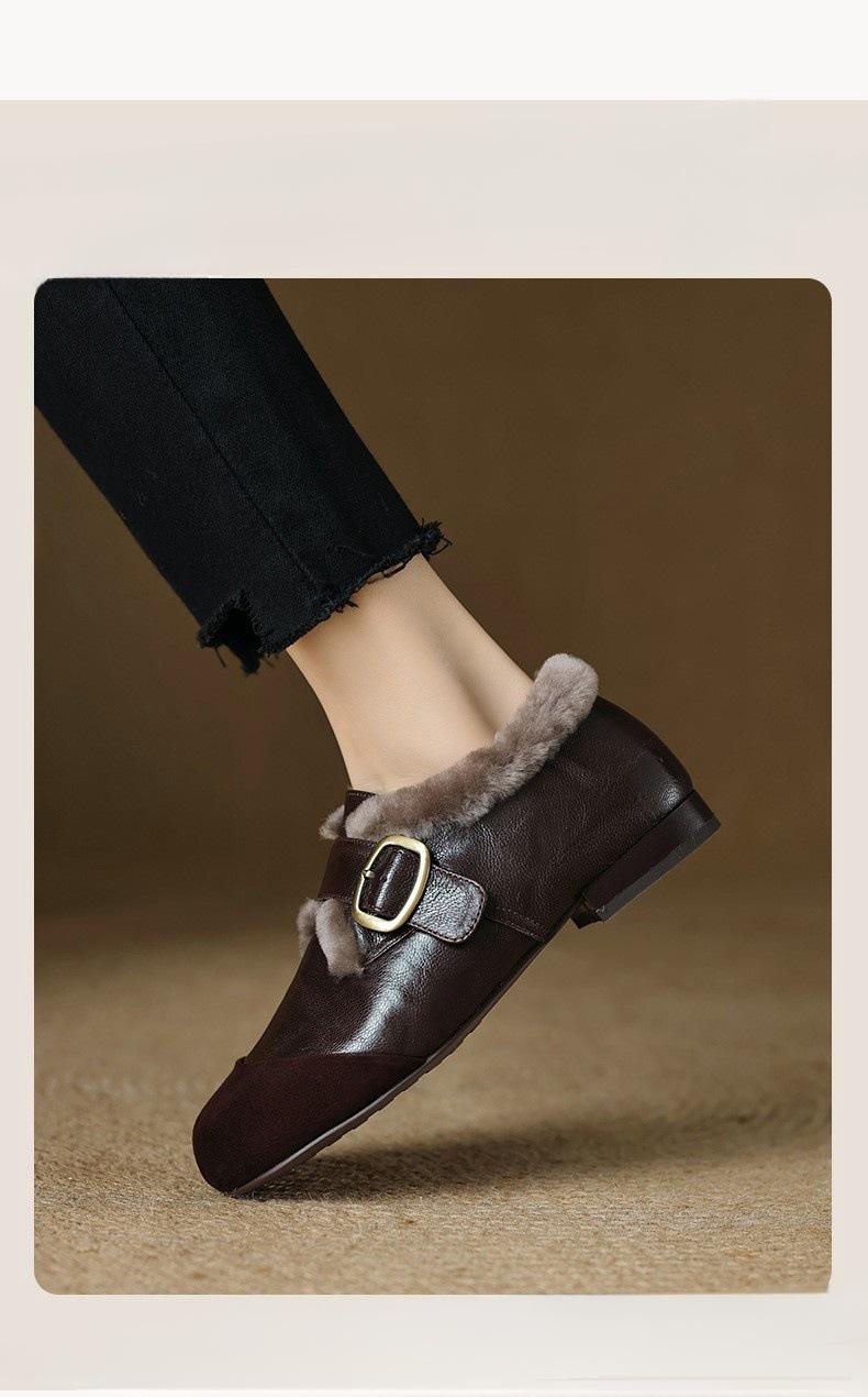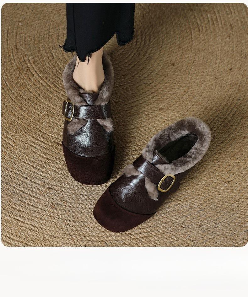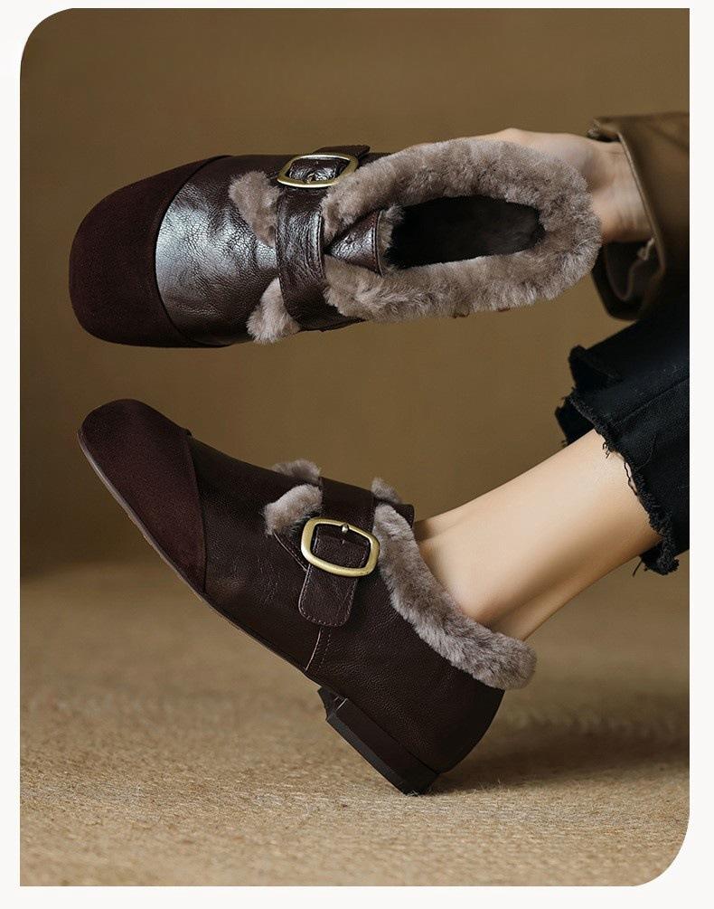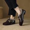 Zapatos planos de cuero retro franceses para mujer, otoño e invierno 2024, nuevos zapatos gruesos de boca profunda, zapatos cómodos de algodón.