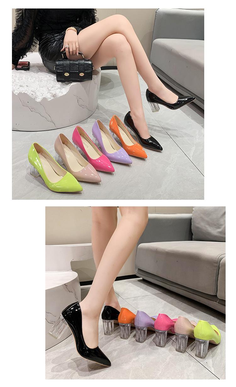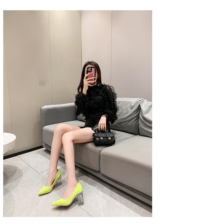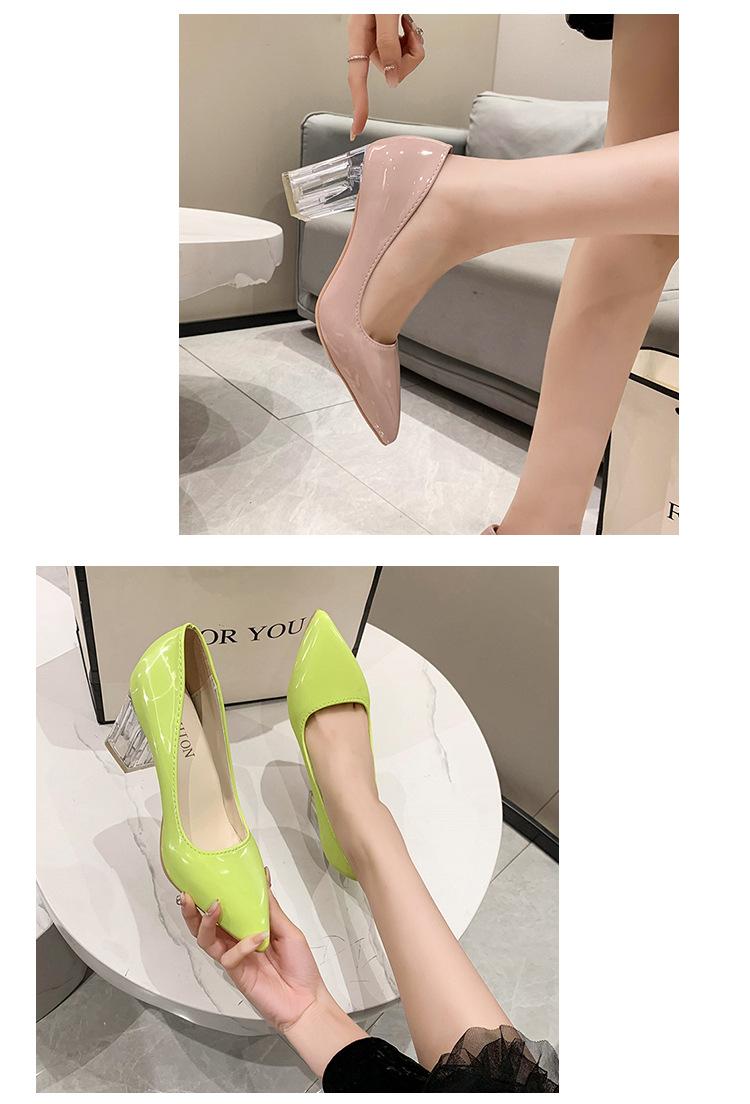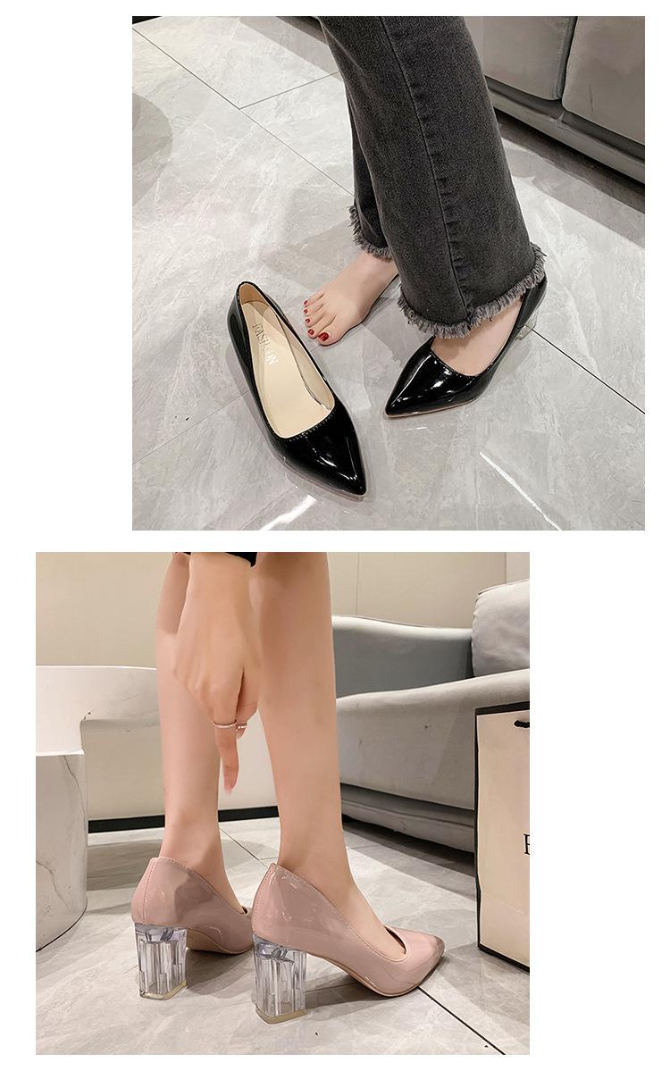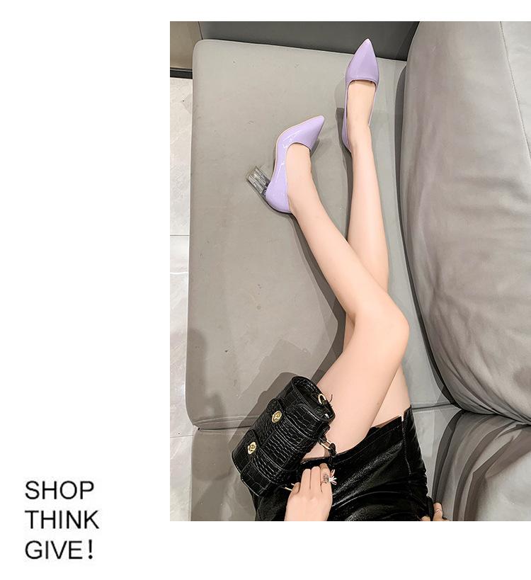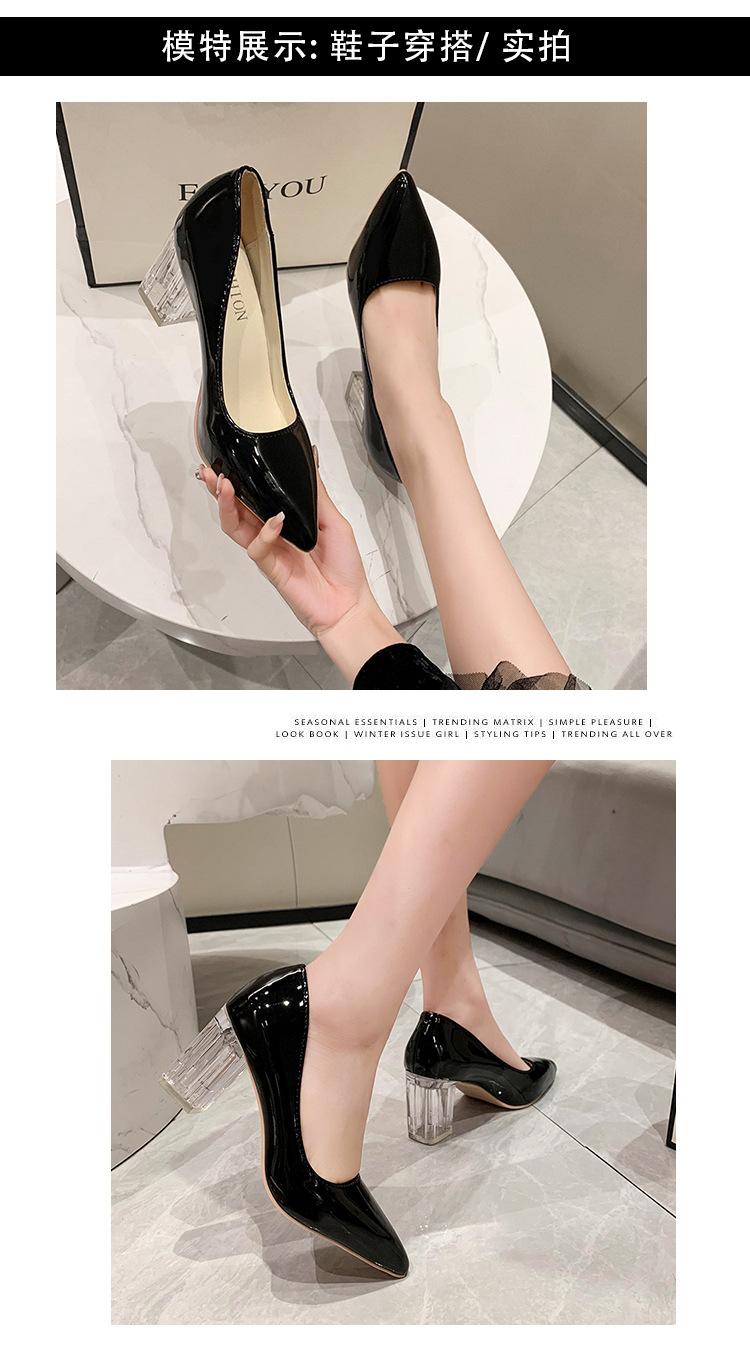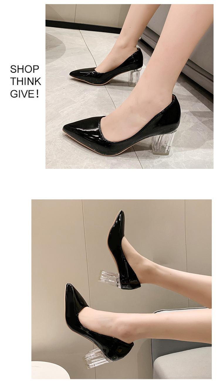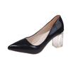 Zapatos de Tacón Alto de Talla Grande Europeos y Americanos Transfronterizos de Comercio Exterior para Mujer 2023 Nuevos Zapatos Sexy de Boca Baja con Tacón Grueso Transparente y Punta Afilada