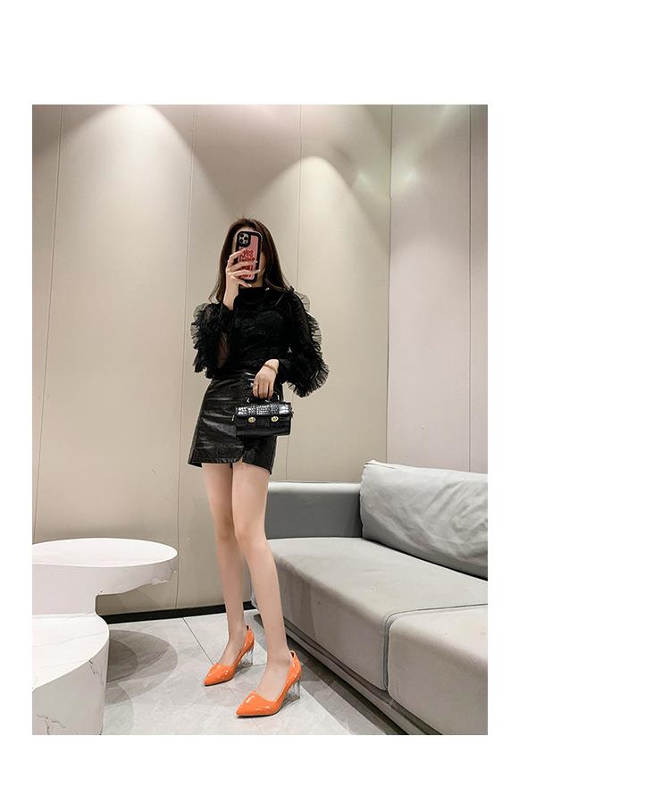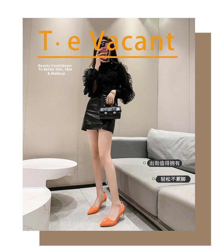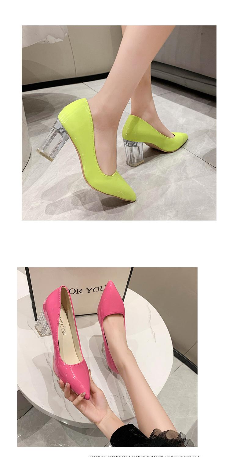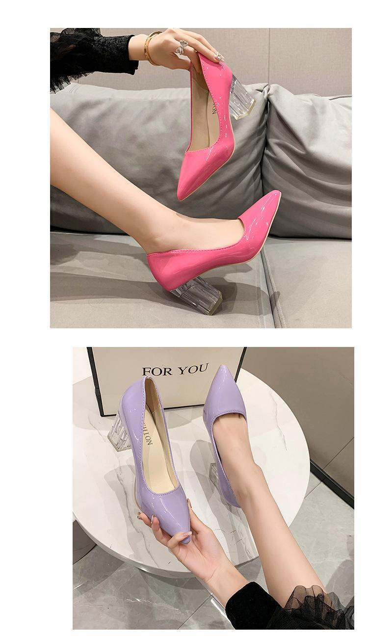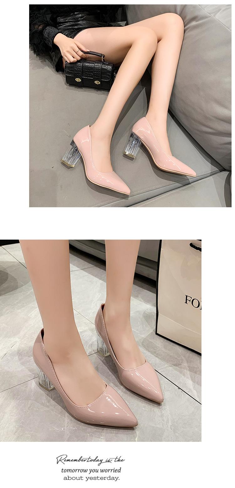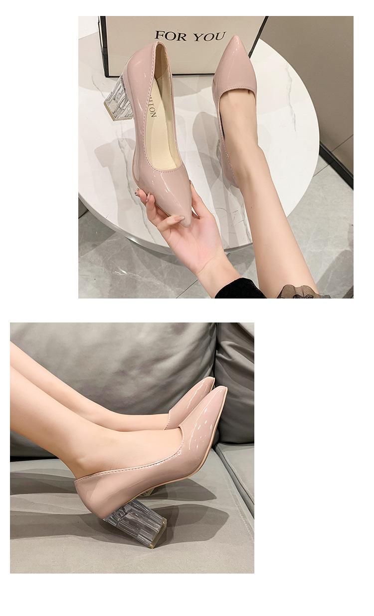 Zapatos de Tacón Alto de Talla Grande Europeos y Americanos Transfronterizos de Comercio Exterior para Mujer 2023 Nuevos Zapatos Sexy de Boca Baja con Tacón Grueso Transparente y Punta Afilada