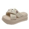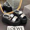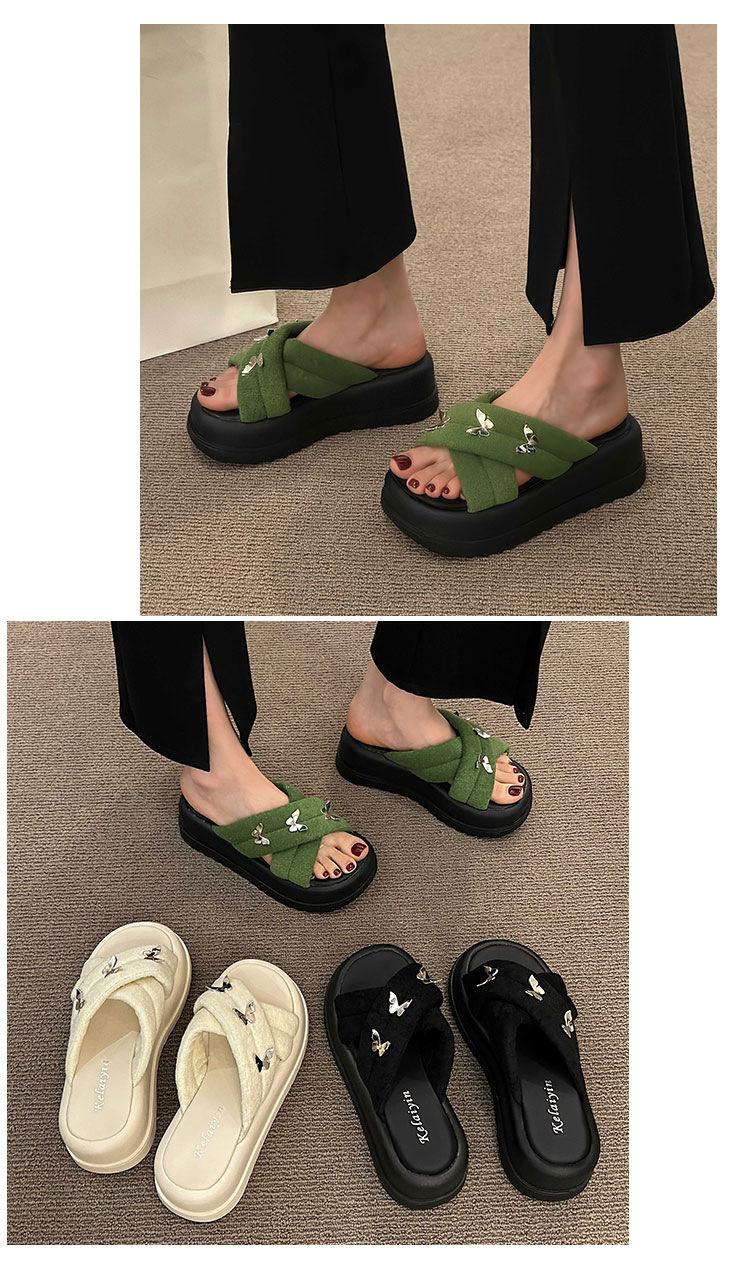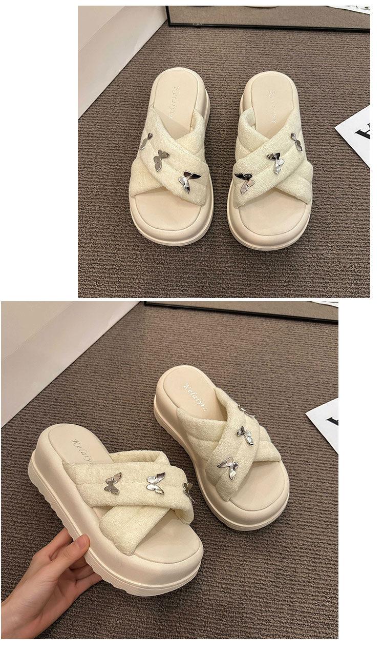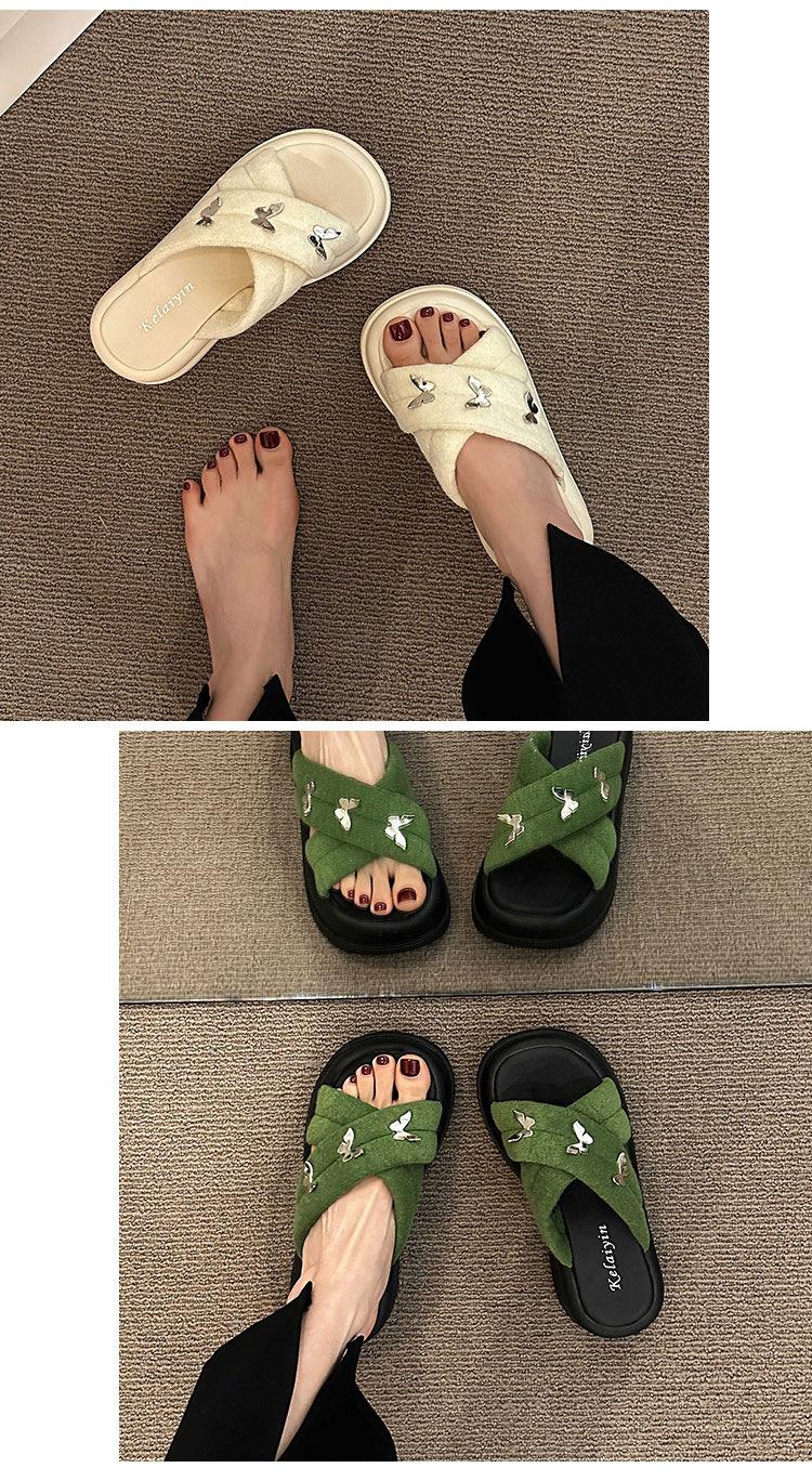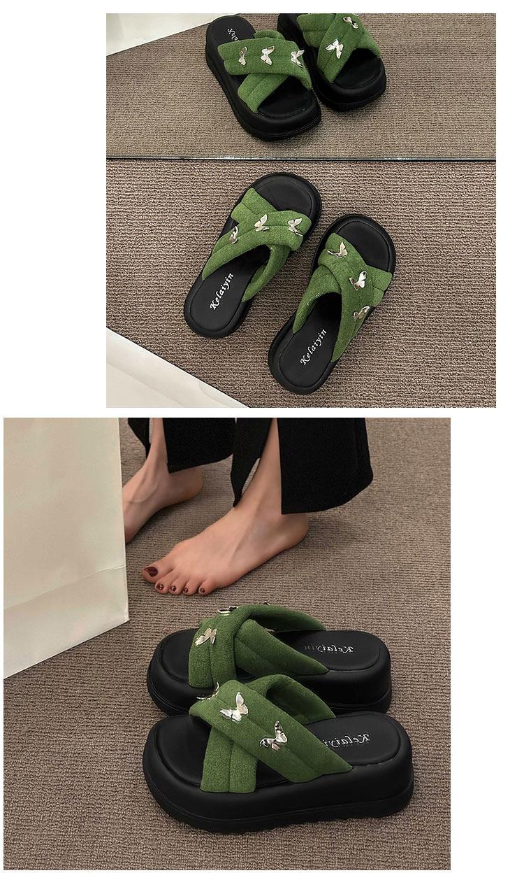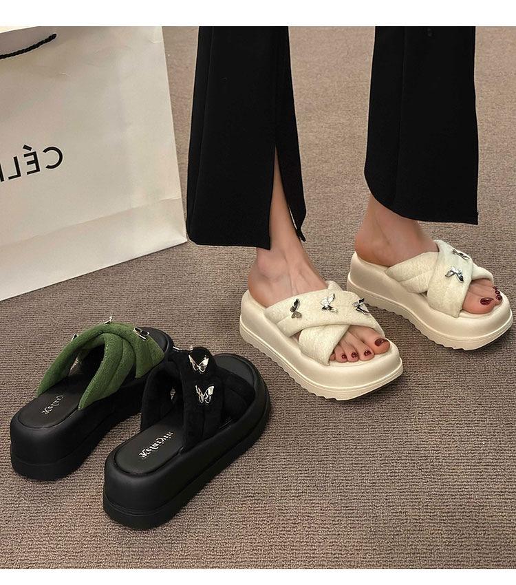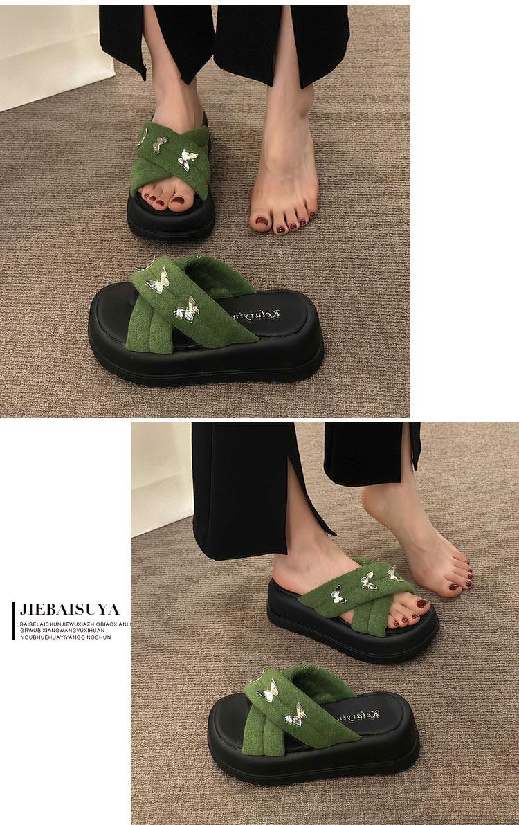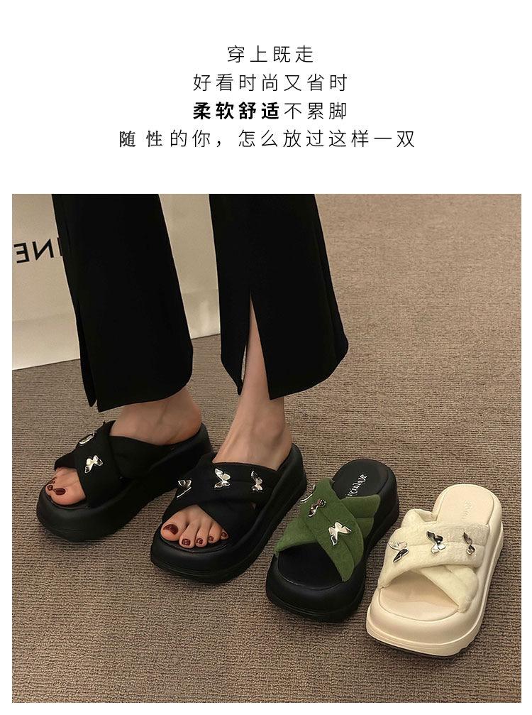 2024 Nuevas Pantuflas de Verano de Suela Gruesa para Aumentar la Altura para Mujer para Exterior con Hebilla Metálica de Mariposa Moda Explosión Sandalias de Una Palabra Antideslizantes