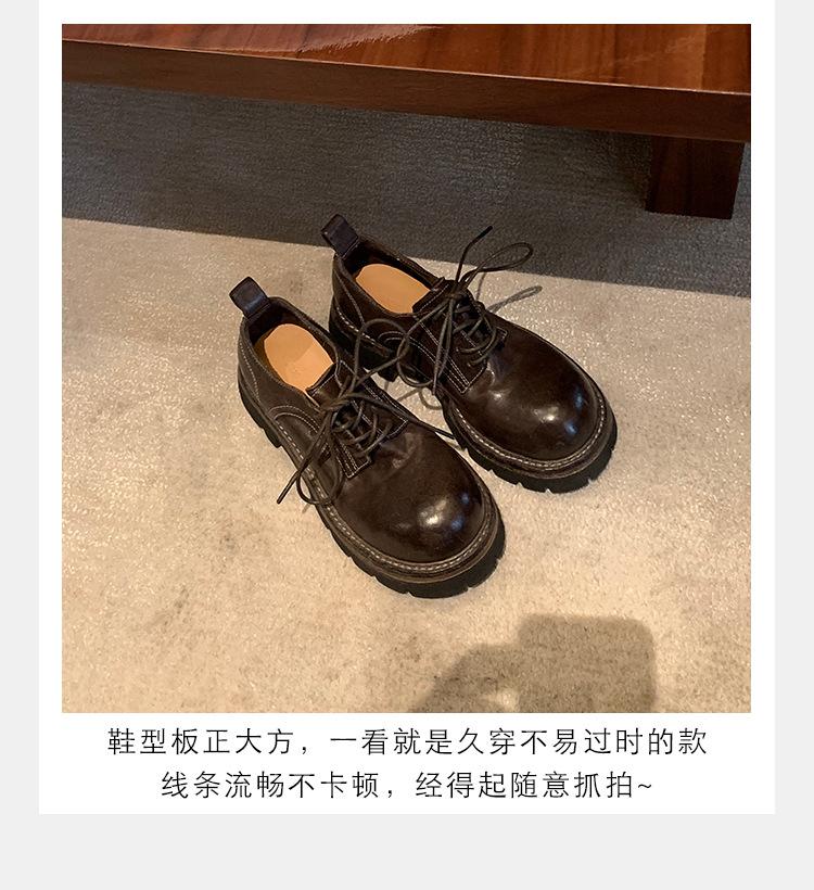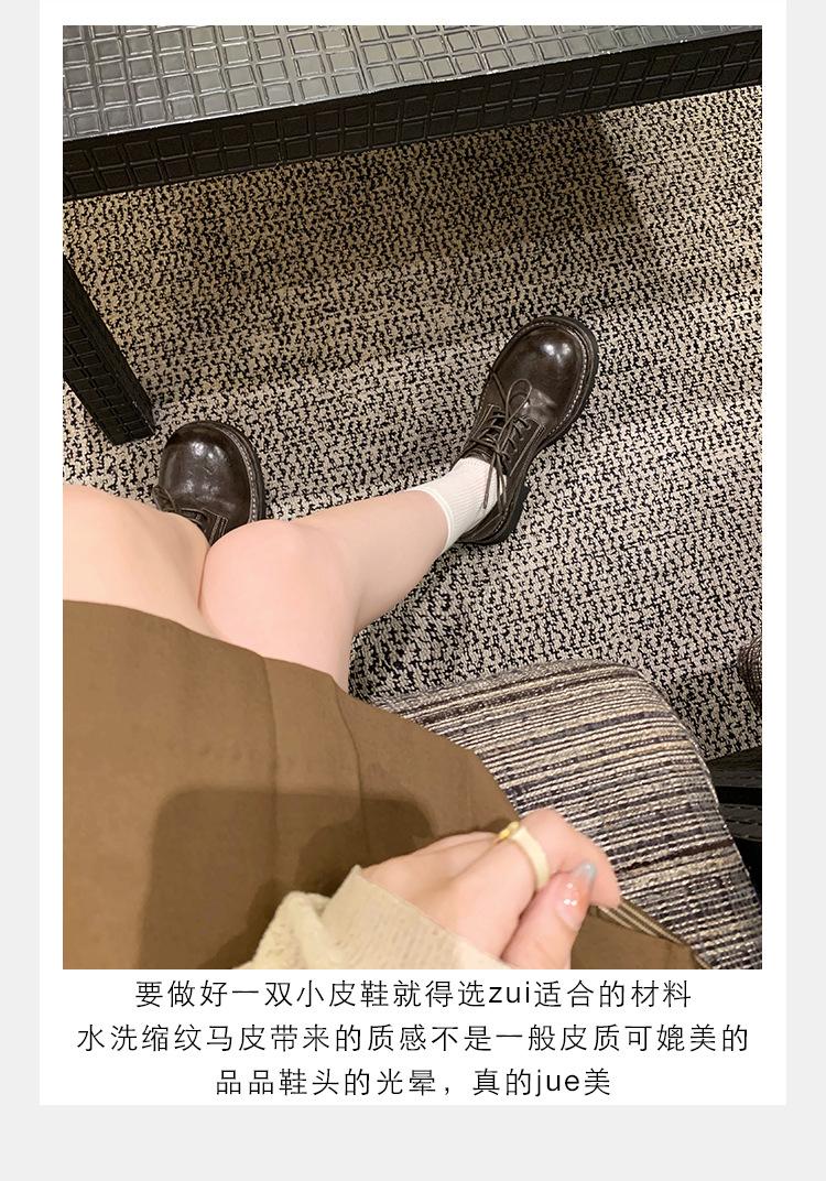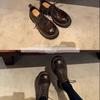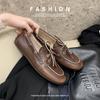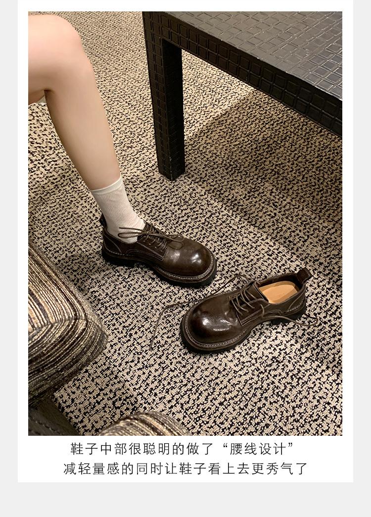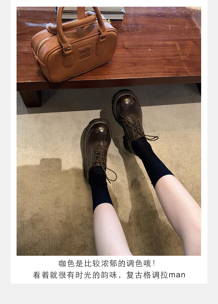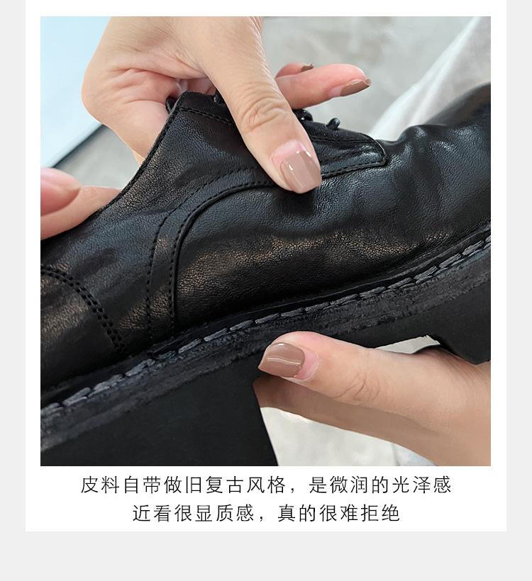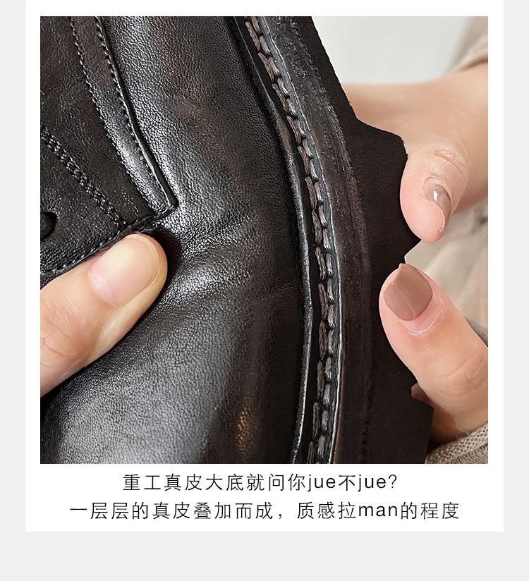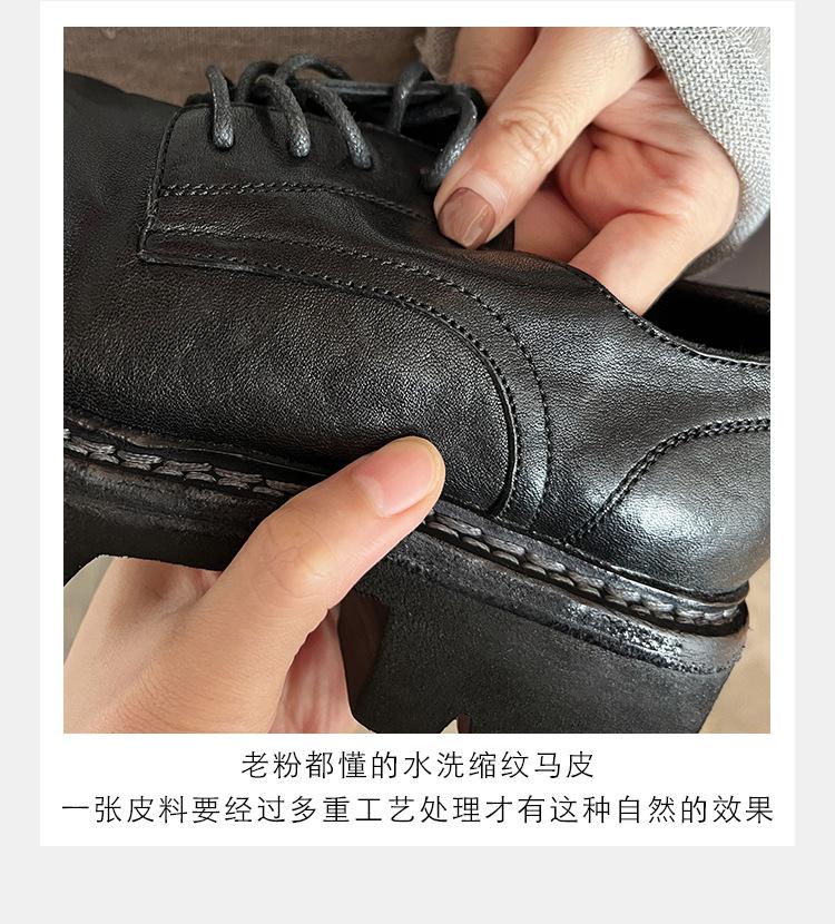 Edición de piel de vaca ~ Mocasines Grape Mom del mismo estilo, zapatos de mujer de una sola capa con cordones, cuero de caballo lavado y encogible, suela gruesa, zapatos pequeños de cuero vintage