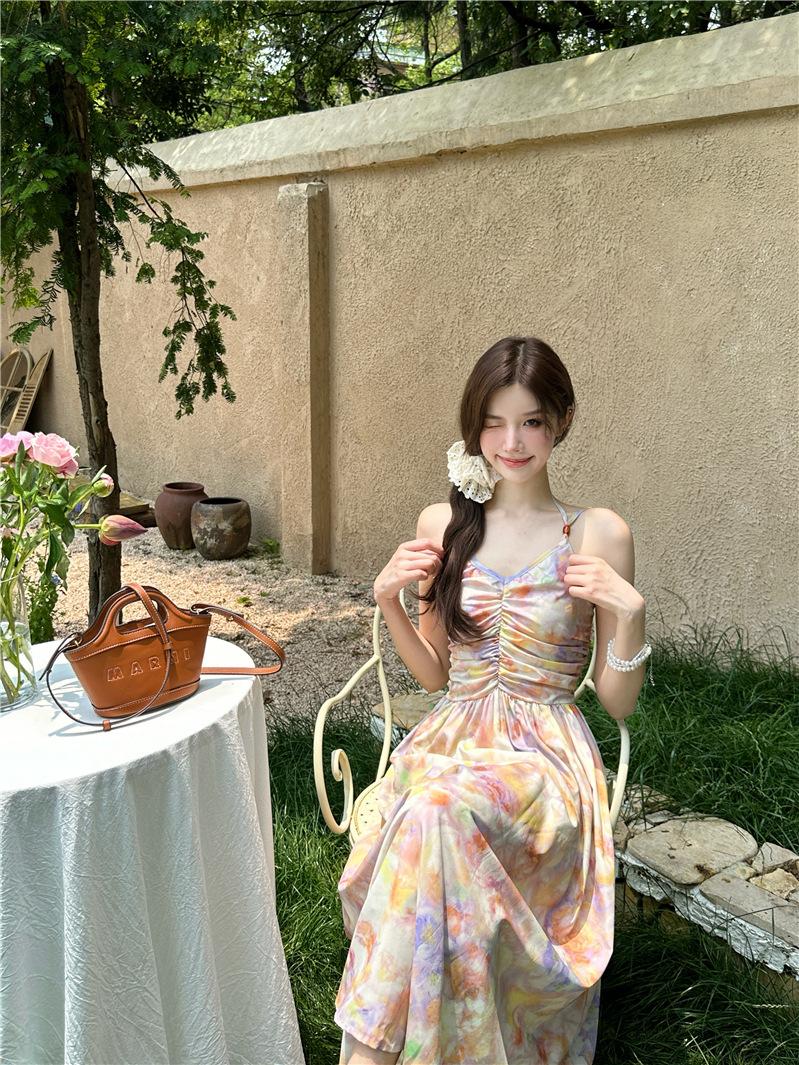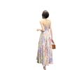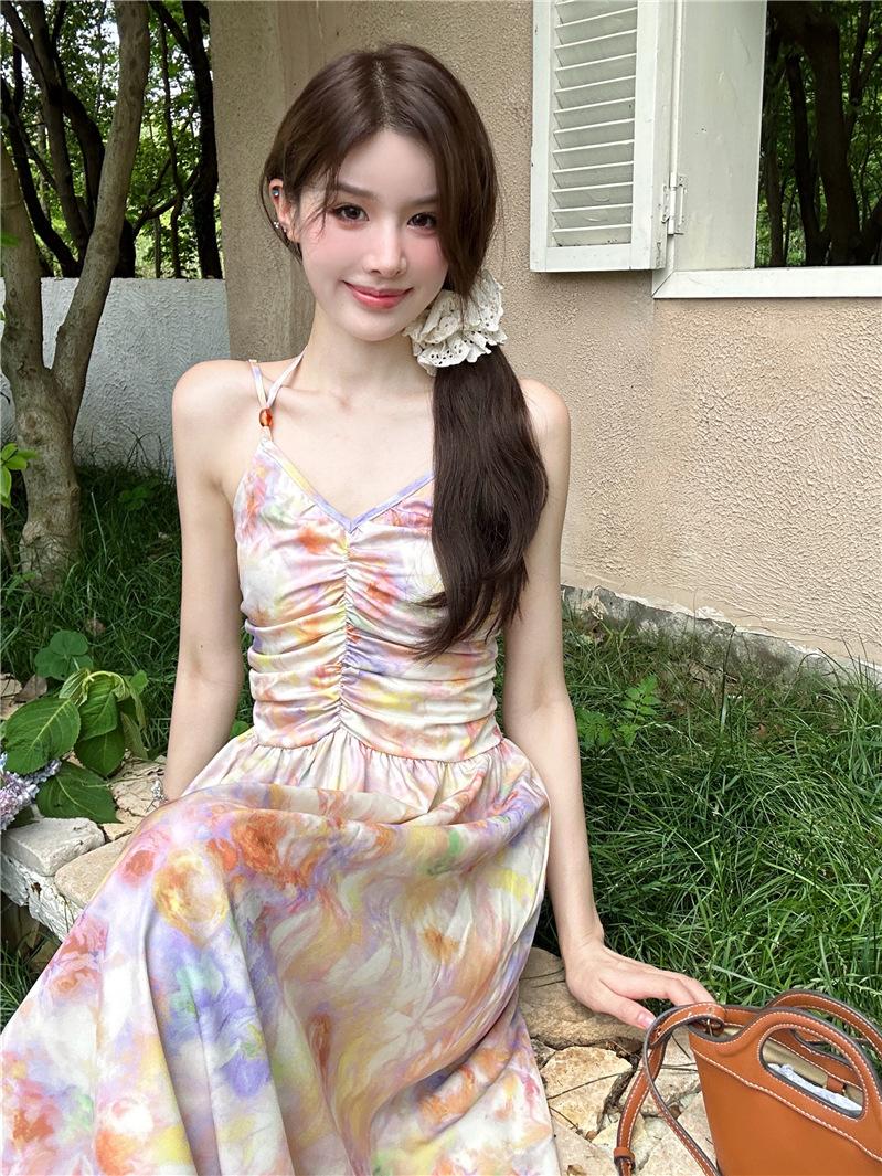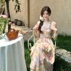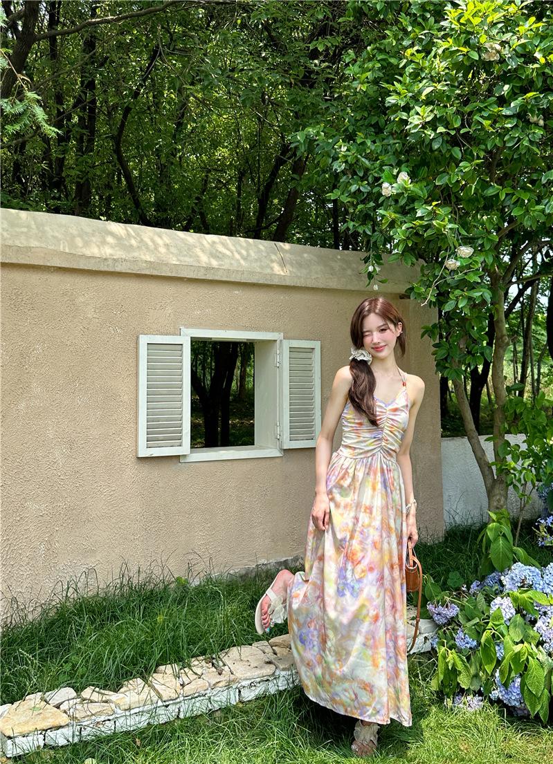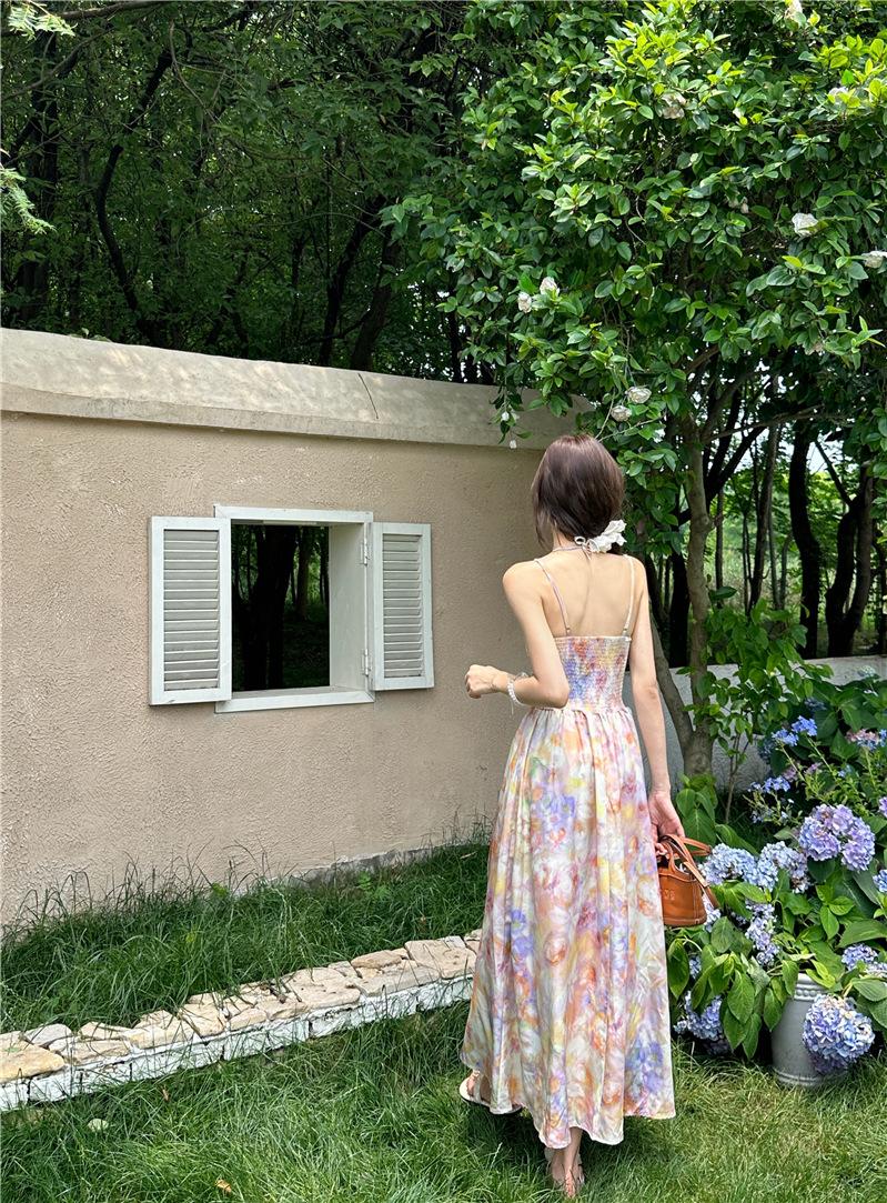 Vestido largo elegante con escote halter, espalda descubierta y estampado floral estilo retro francés para vacaciones de verano, para mujer