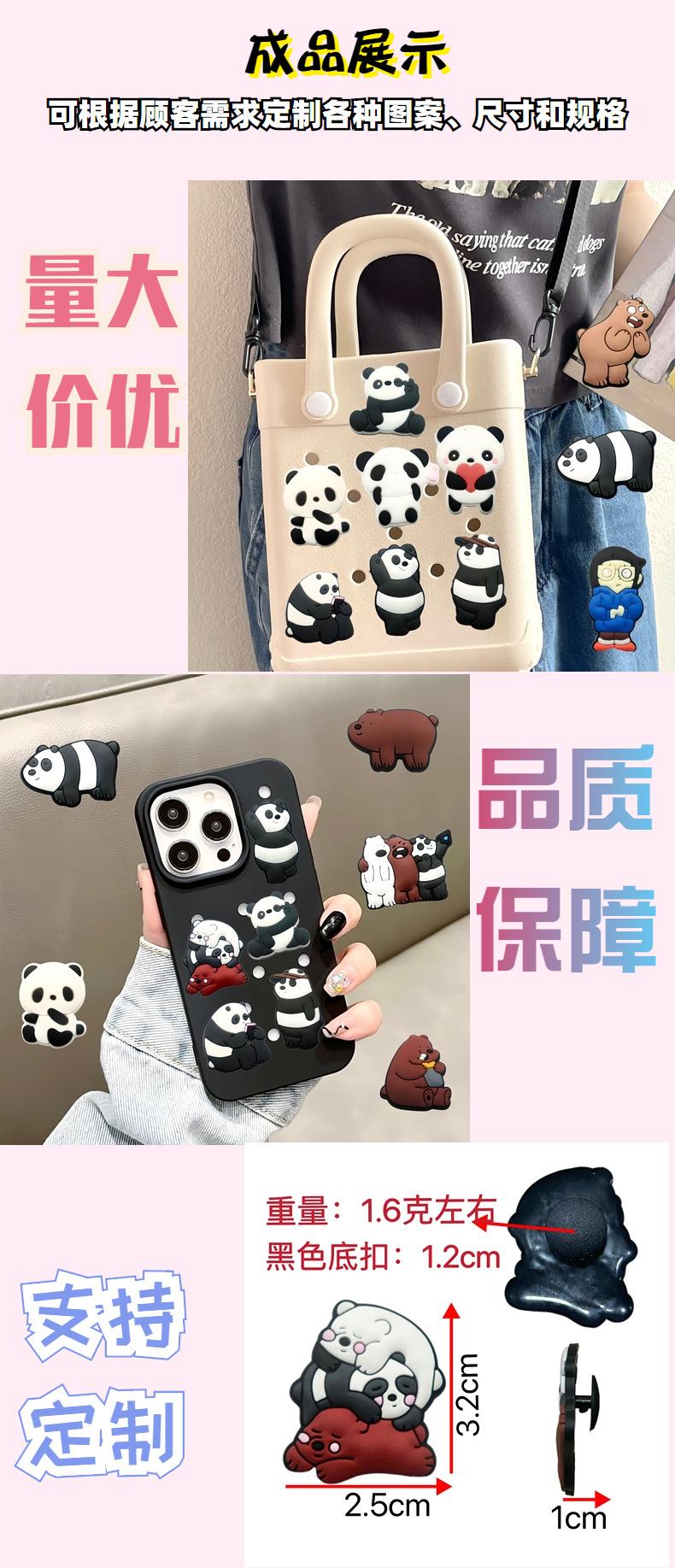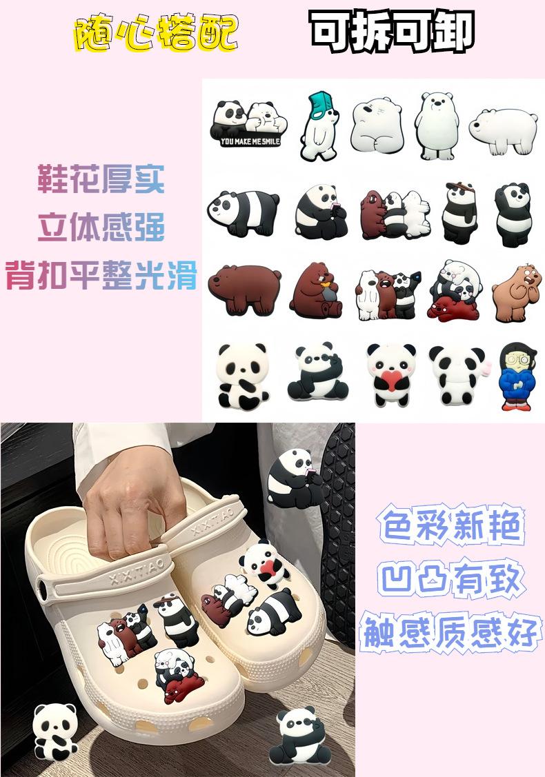 Zapatos de agujeros de panda de dibujos animados zapatos flor hebilla decorativa accesorios DIY zapatos de jardín accesorios transfronterizos