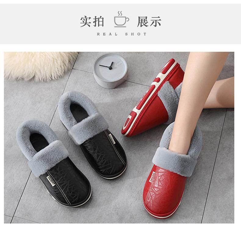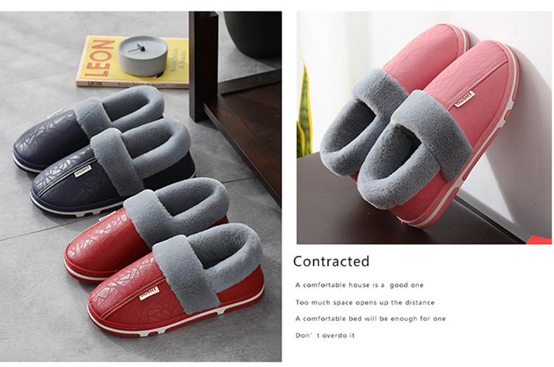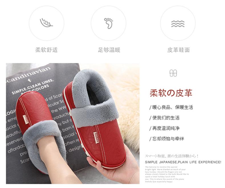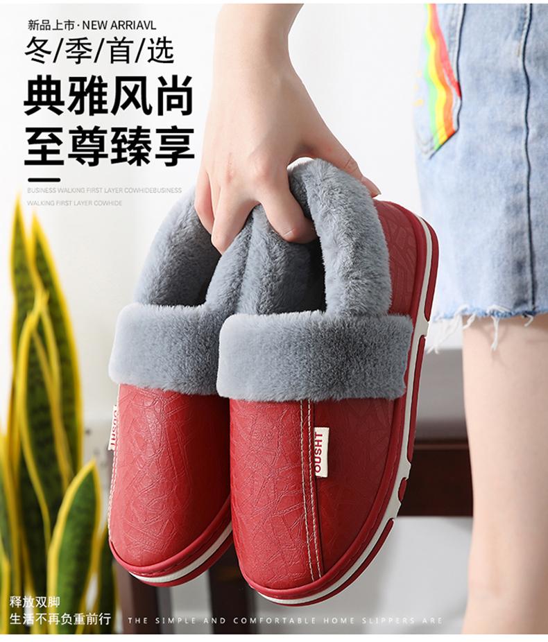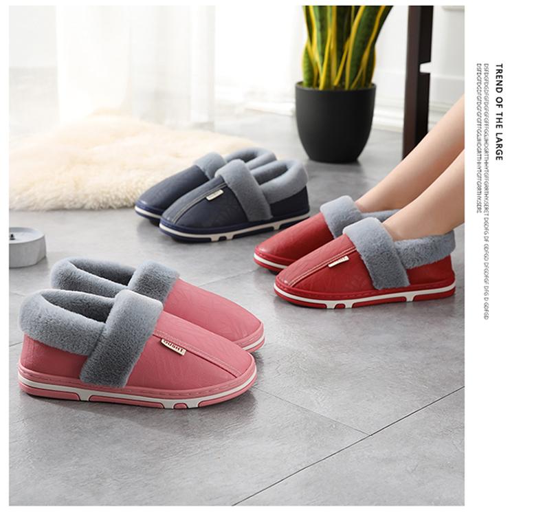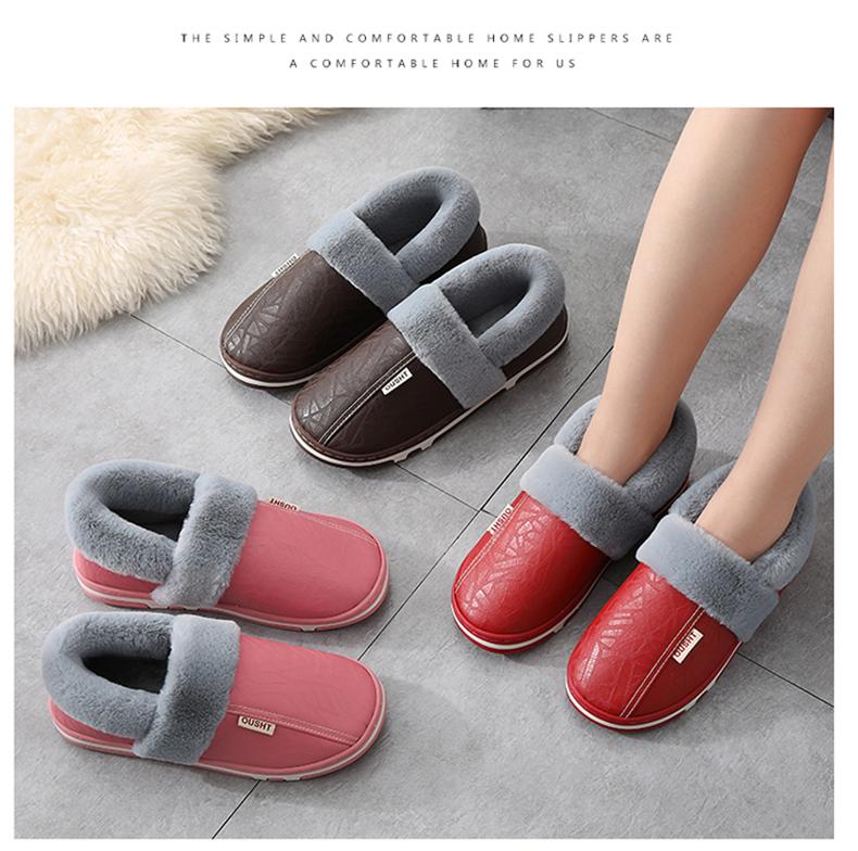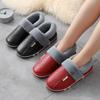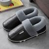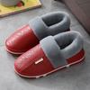 Bolsa de Zapatillas de Algodón Impermeables de Cuero PU para Pareja con Suela Gruesa Cómoda para Piso Antideslizante para Casa Zapatos de Algodón Cálidos para Invierno de Mujer