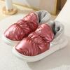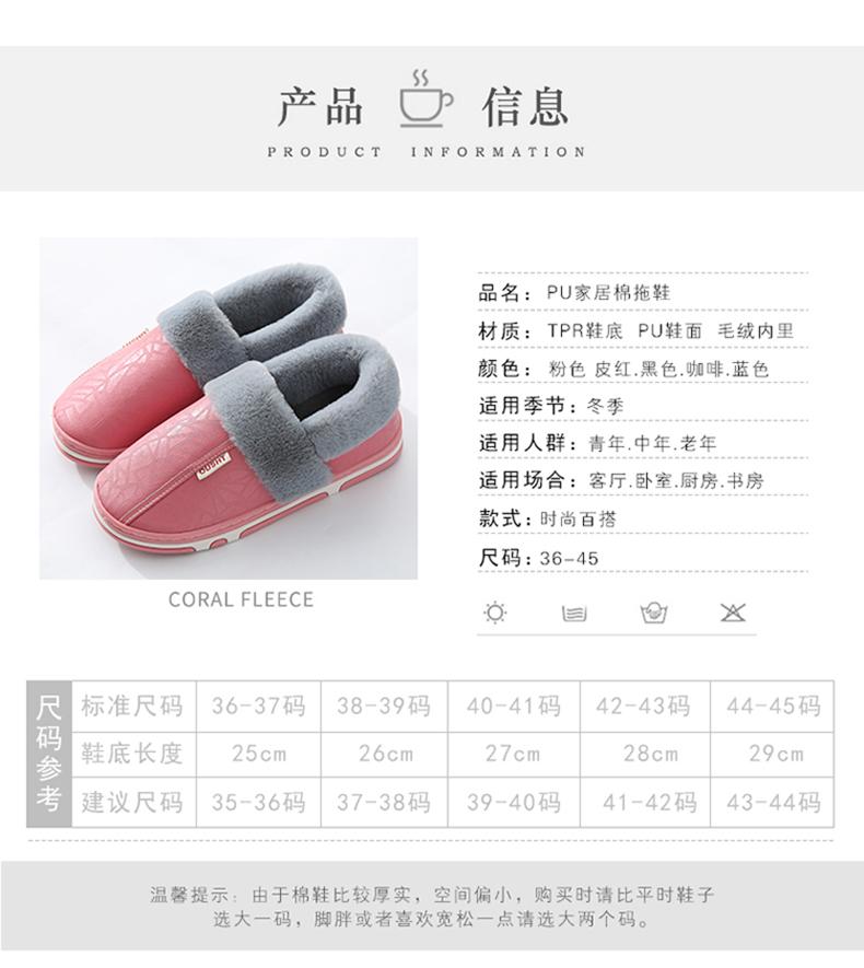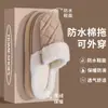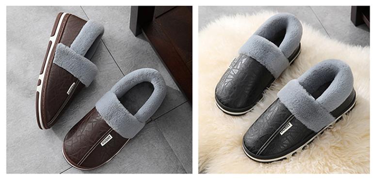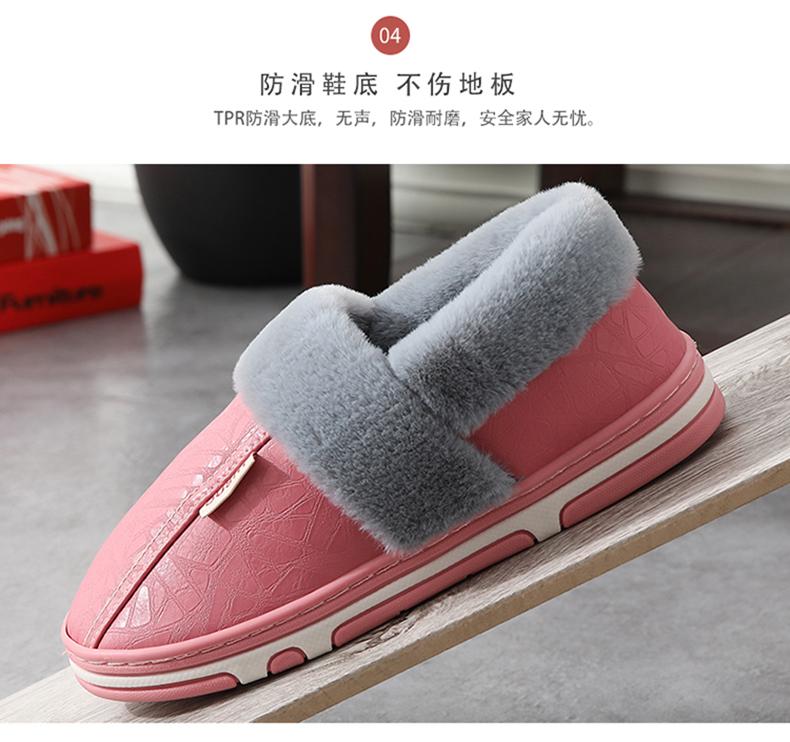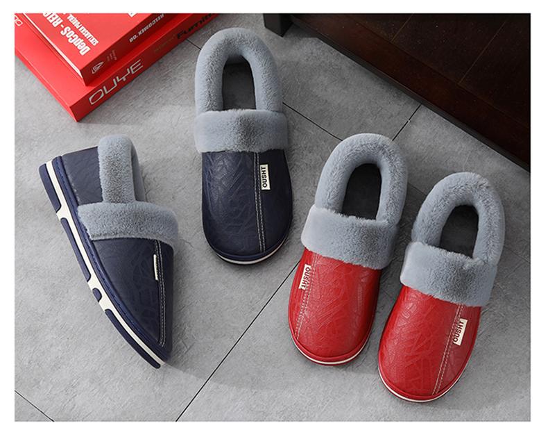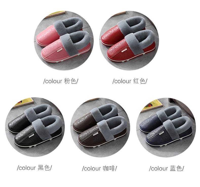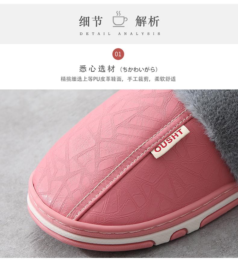 Bolsa de Zapatillas de Algodón Impermeables de Cuero PU para Pareja con Suela Gruesa Cómoda para Piso Antideslizante para Casa Zapatos de Algodón Cálidos para Invierno de Mujer