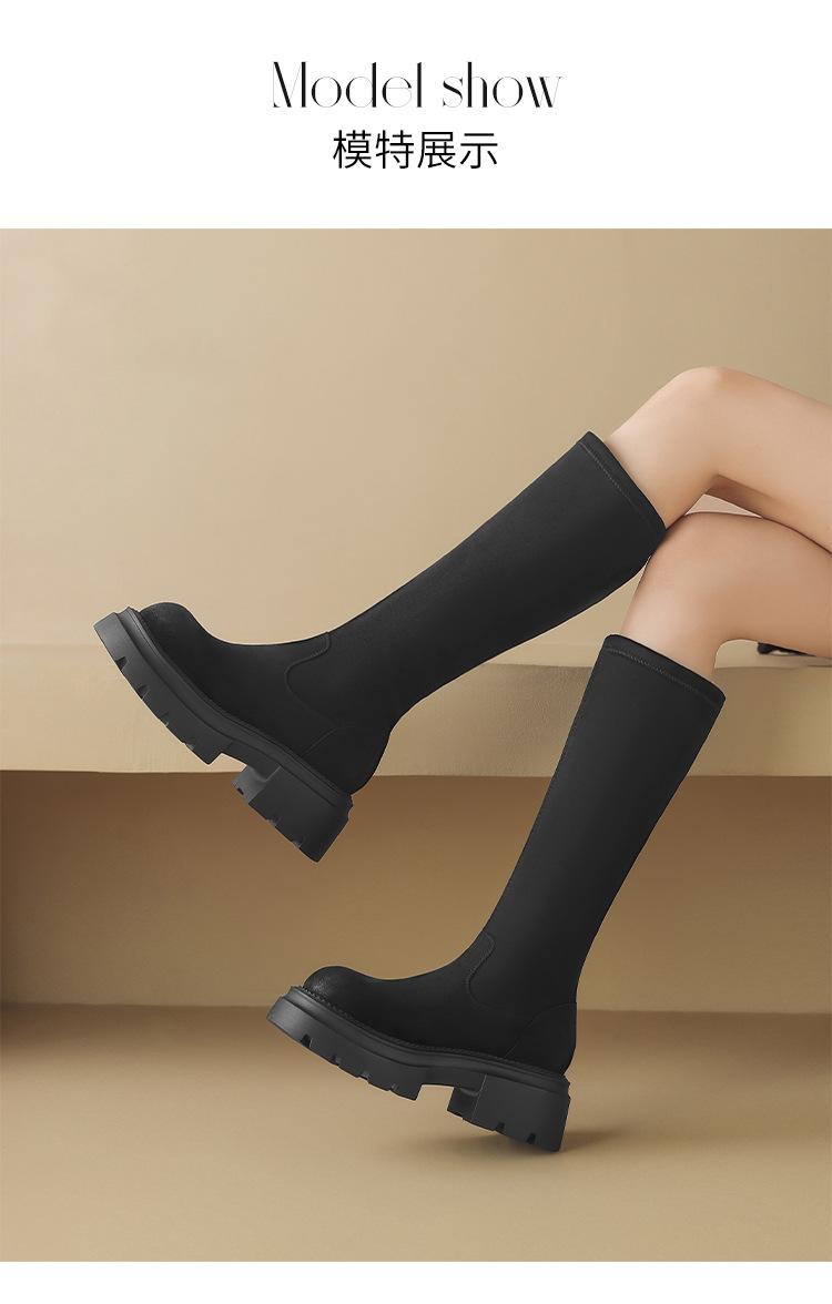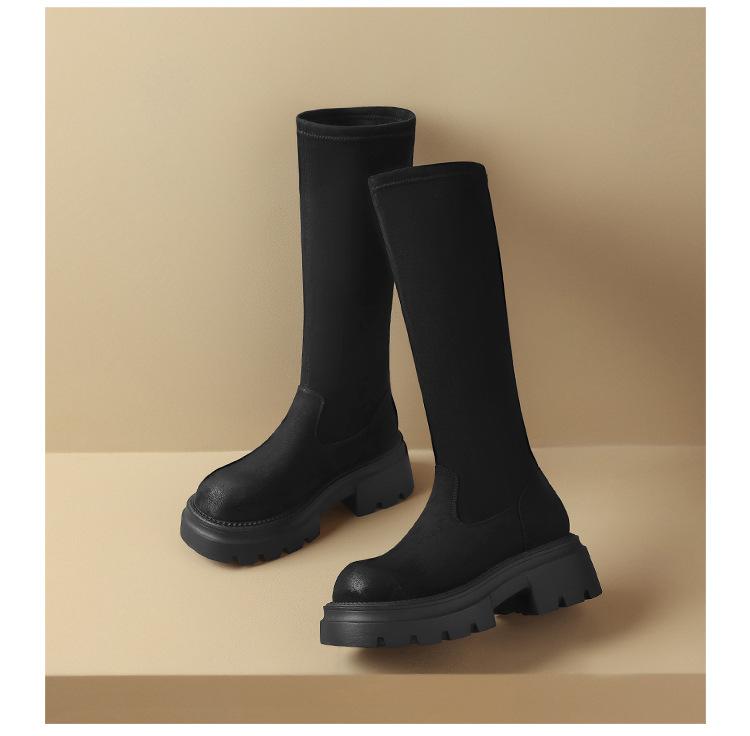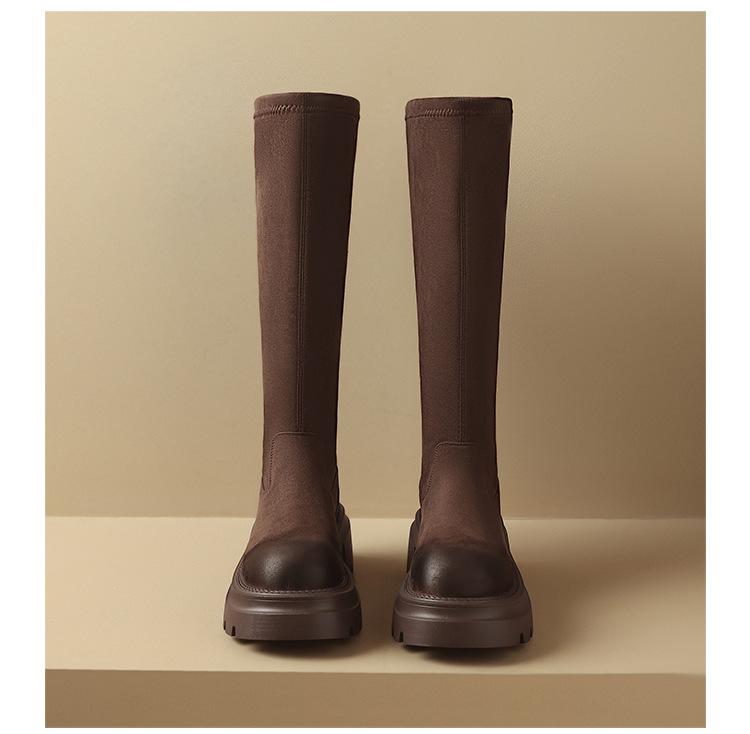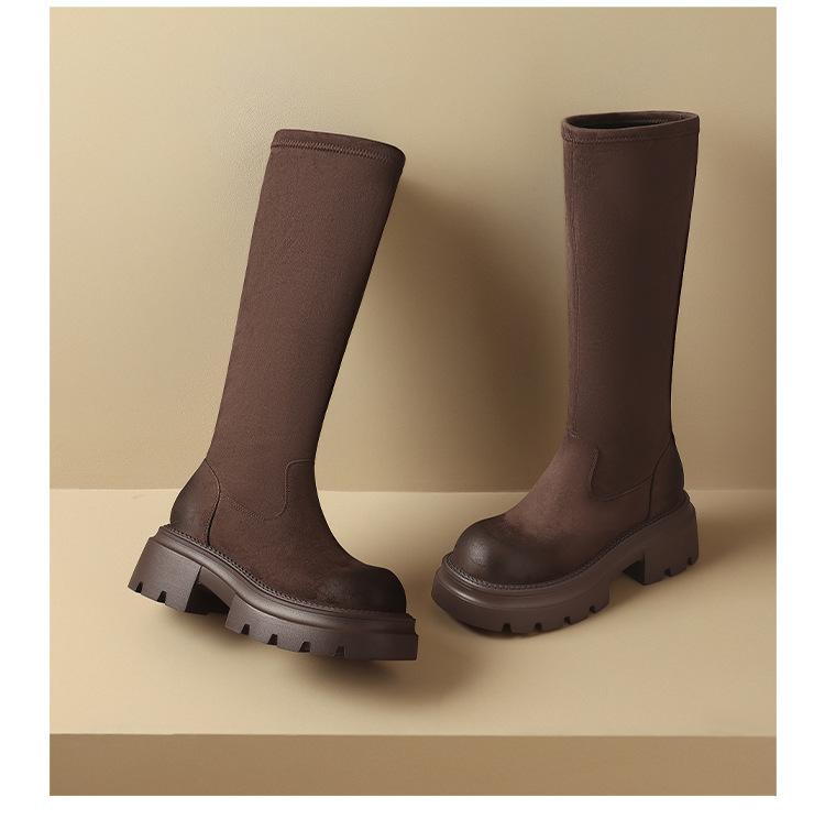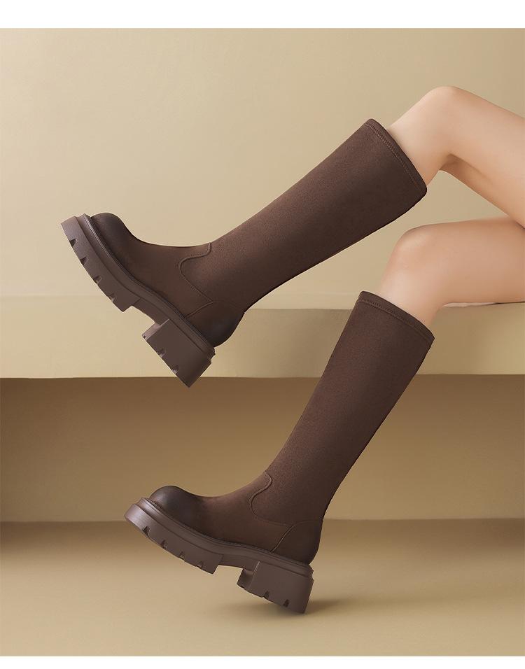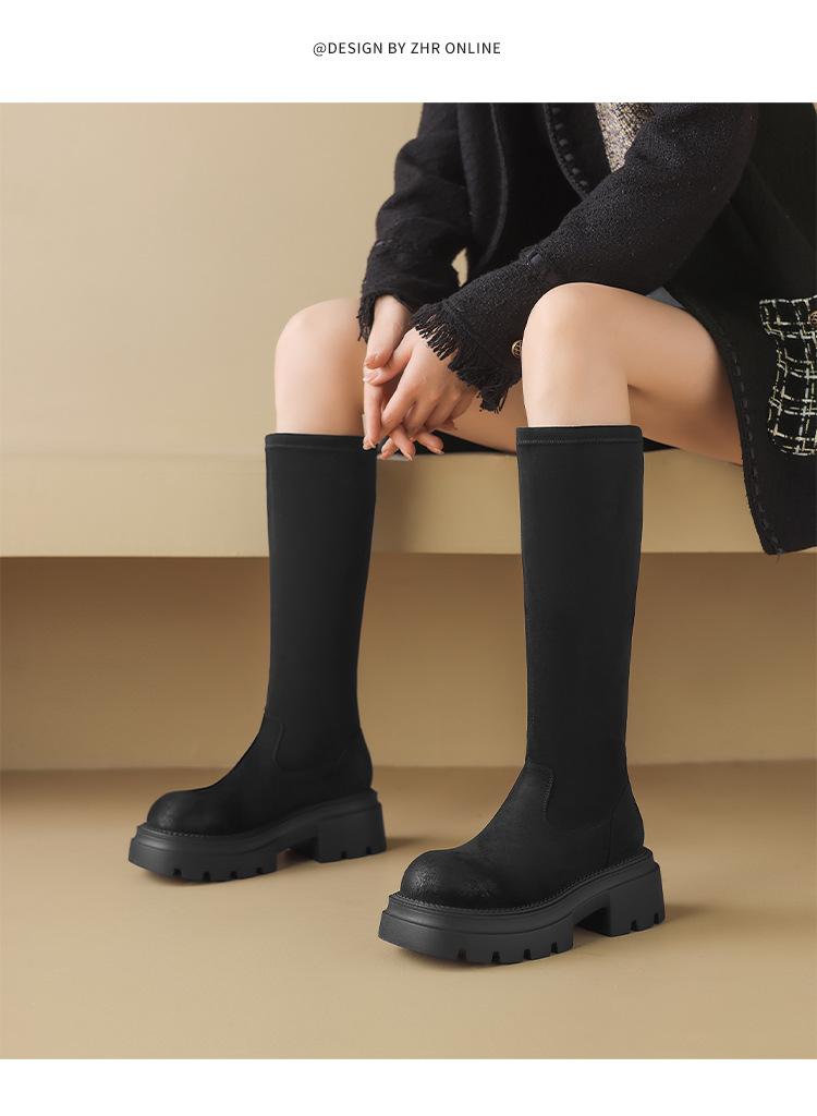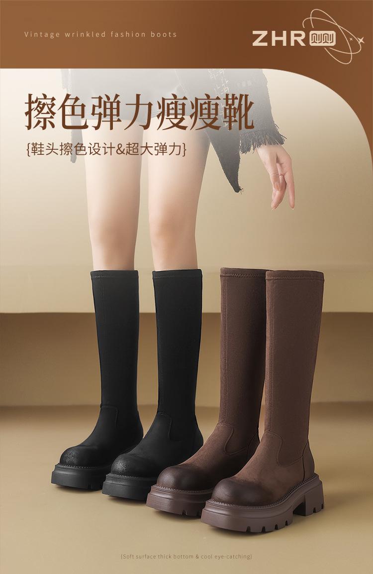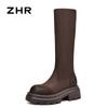 ZHR son botas finas y elásticas de color sólido simples para mujer, botas de caballero Joker retro de nueva moda otoño e invierno 2024
