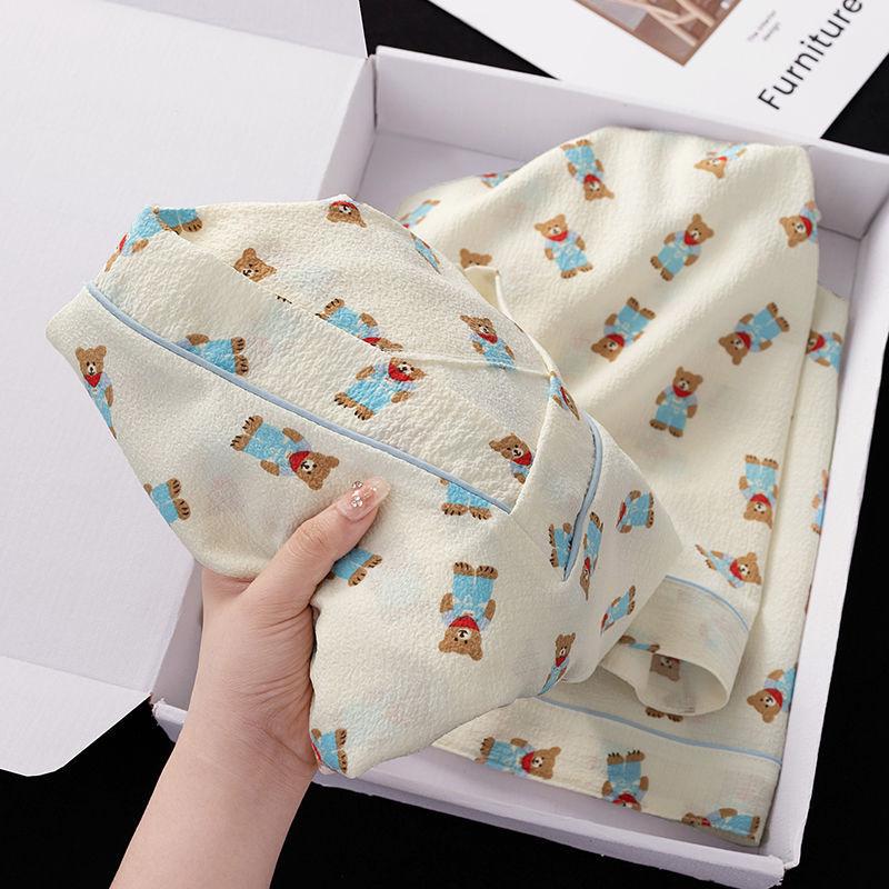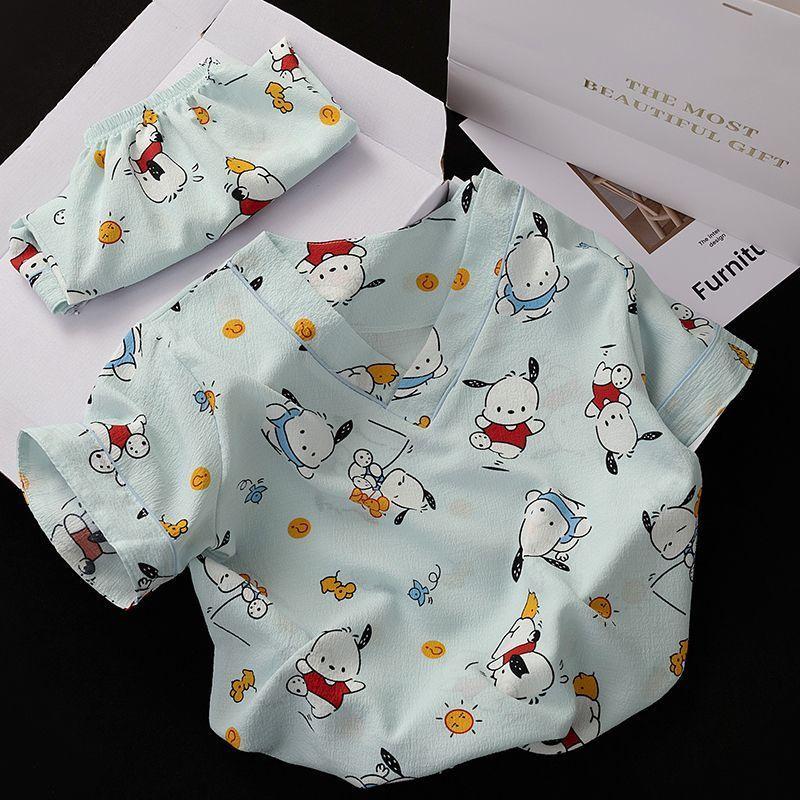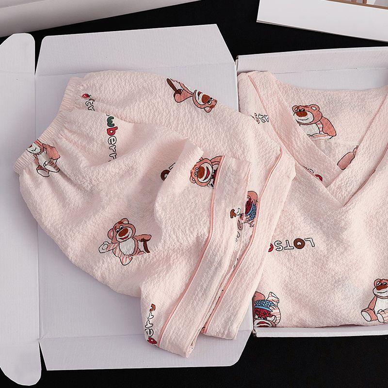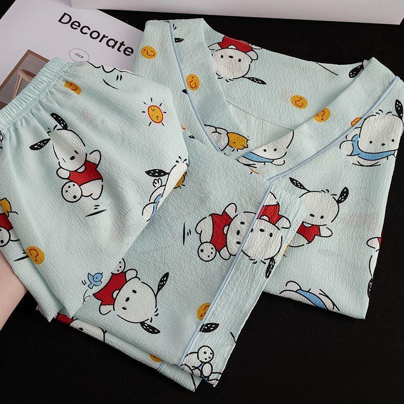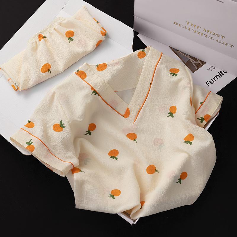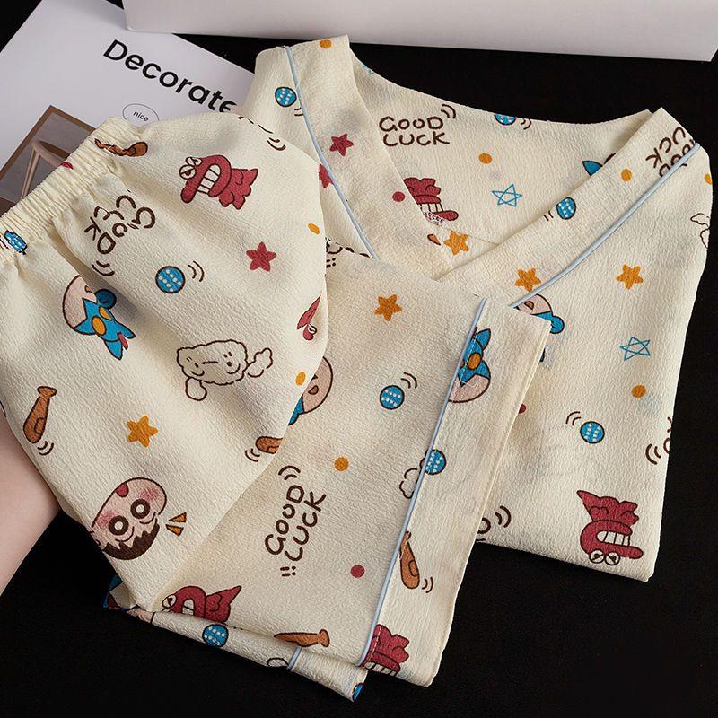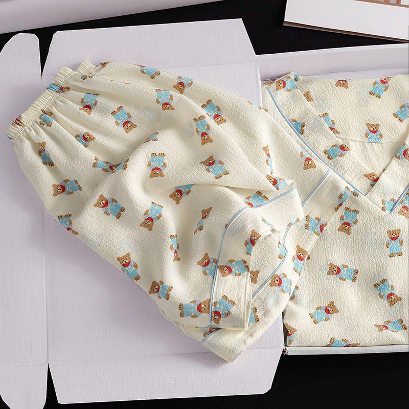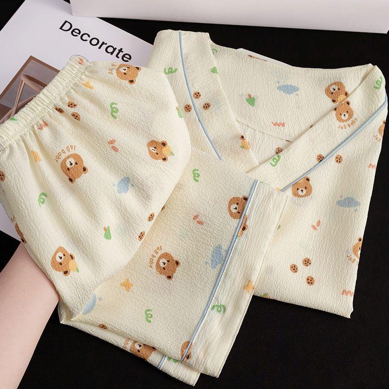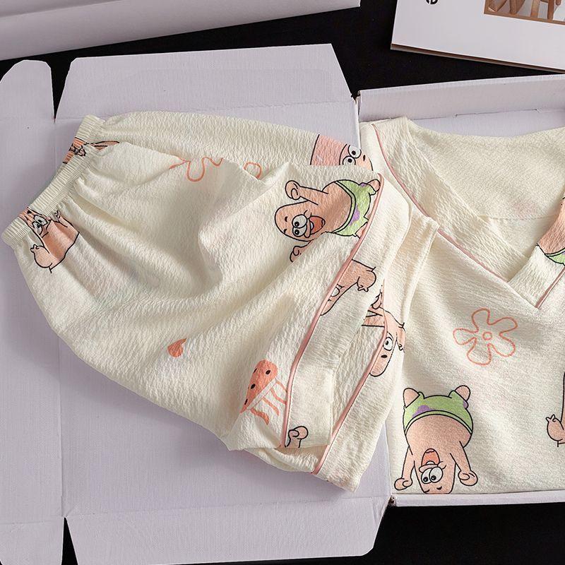 Pijama de tela Zou de algodón con burbujas para mujer, pantalones cortos de verano de manga corta, cuello en V fino, traje de verano para el hogar para estudiantes