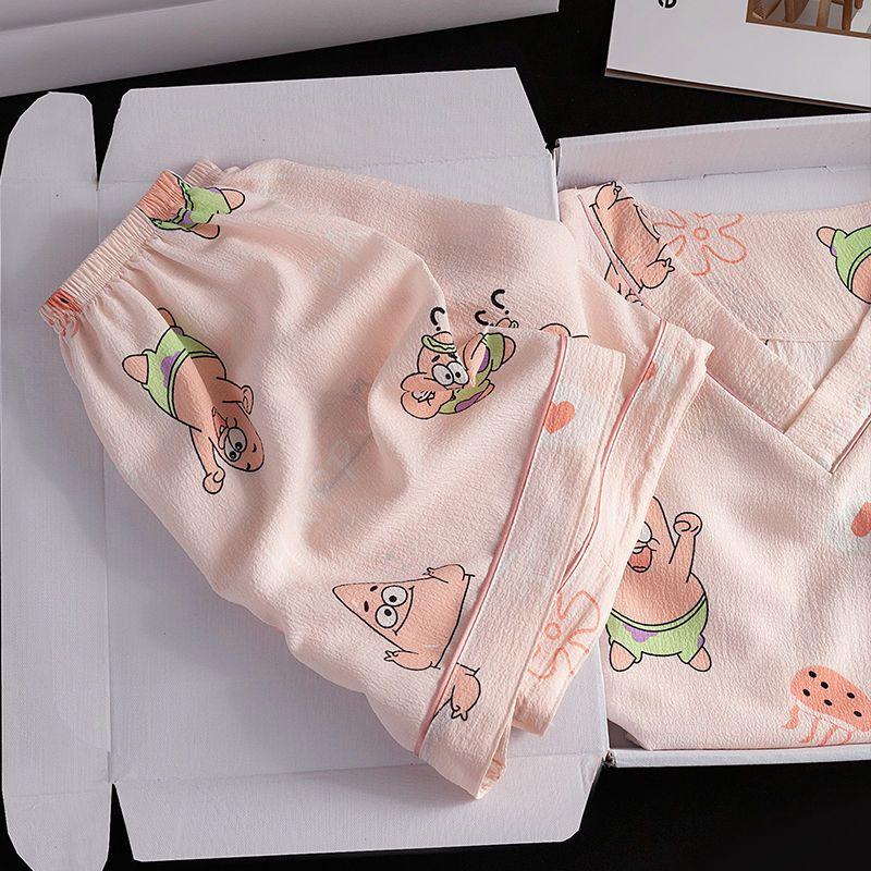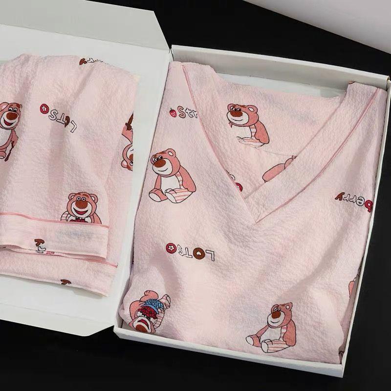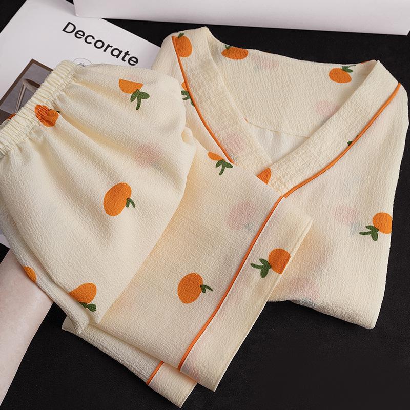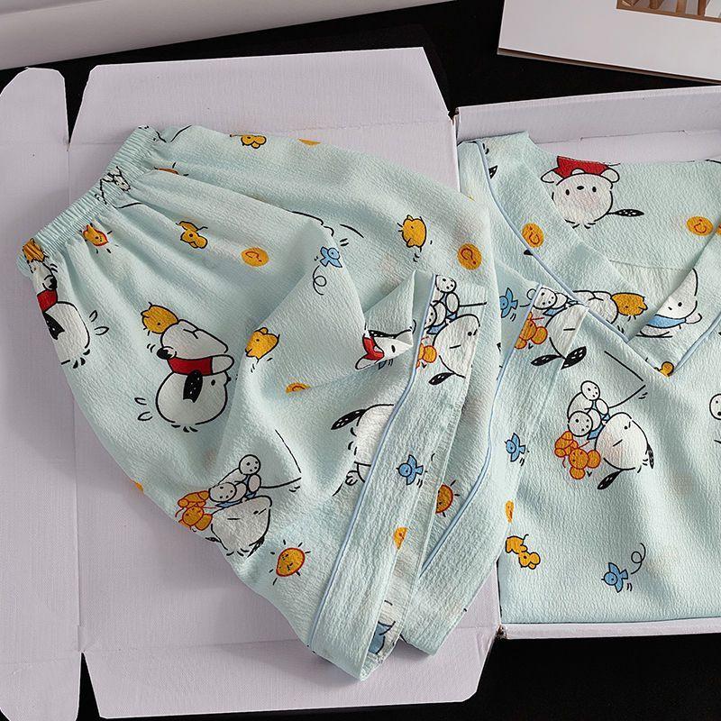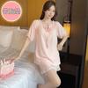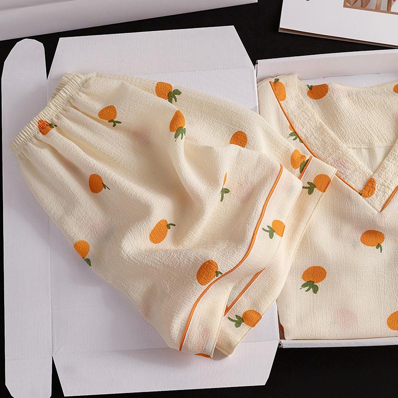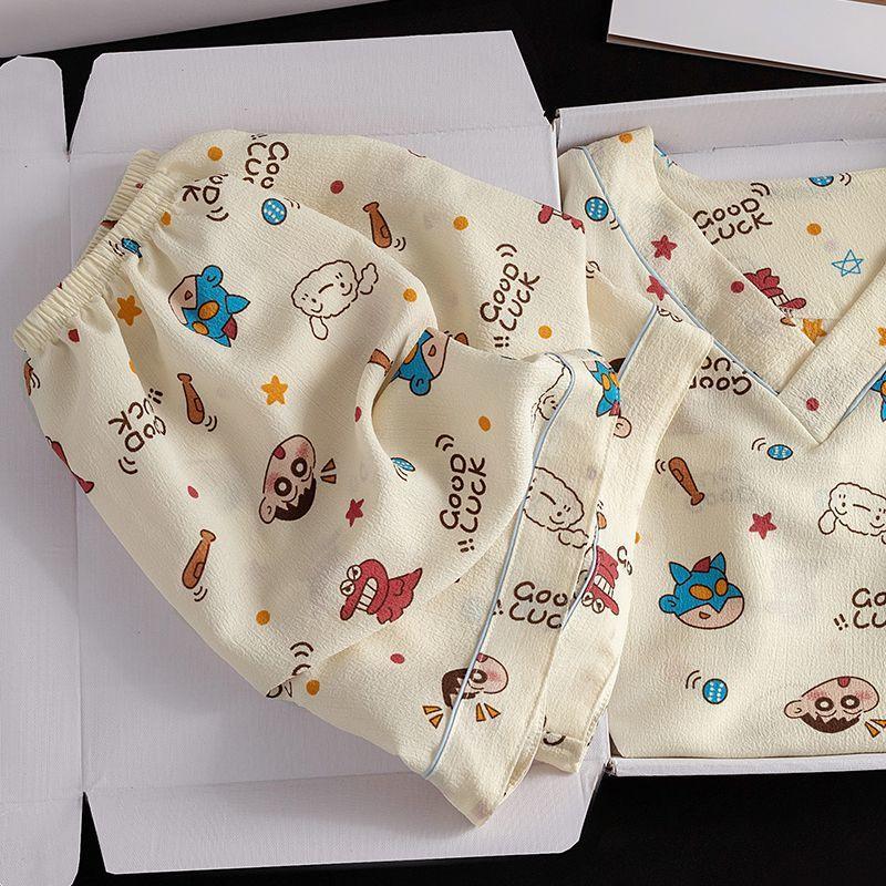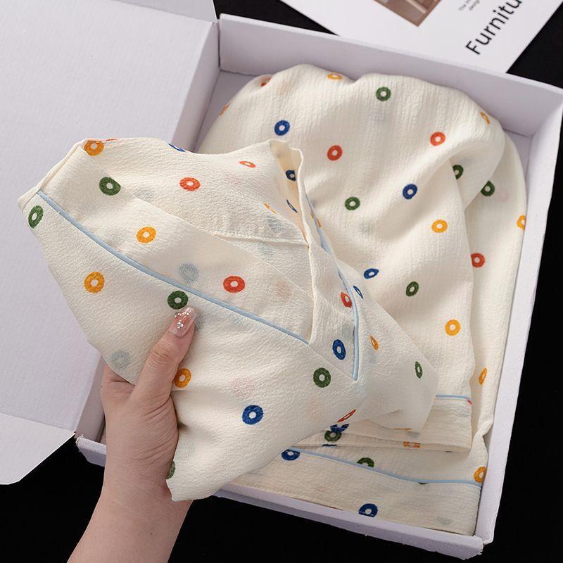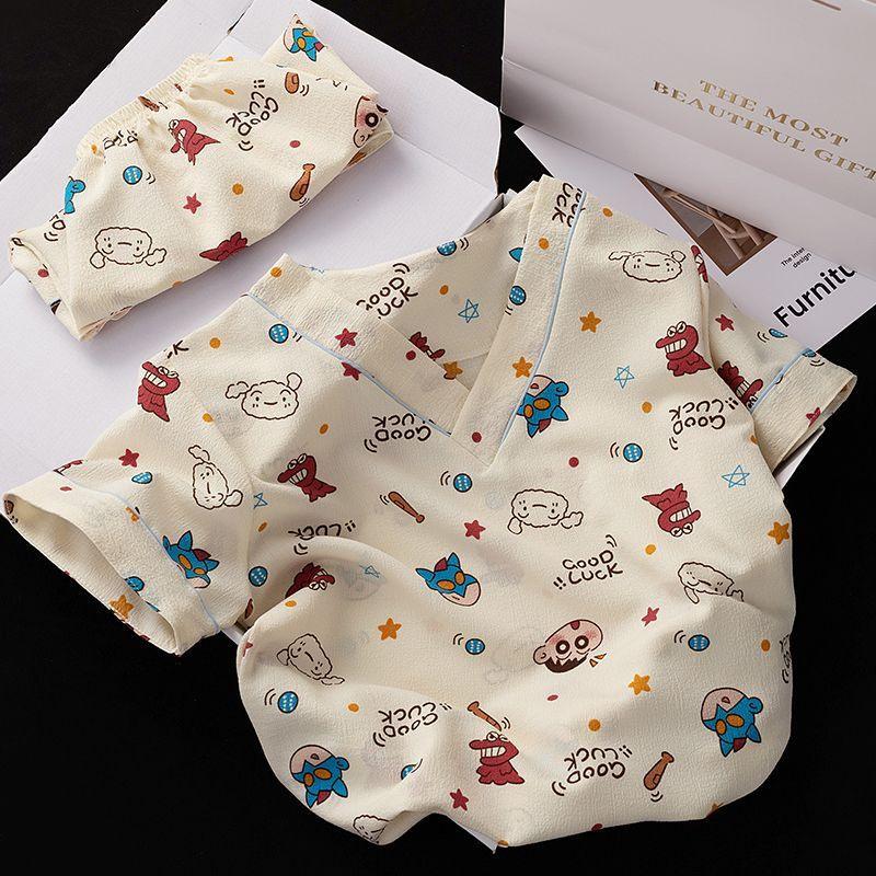 Pijama de tela Zou de algodón con burbujas para mujer, pantalones cortos de verano de manga corta, cuello en V fino, traje de verano para el hogar para estudiantes