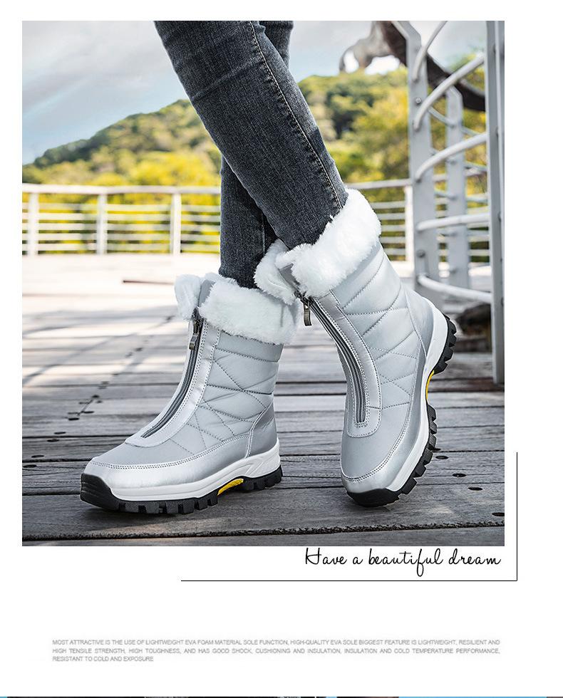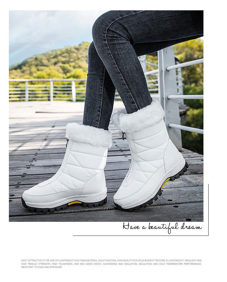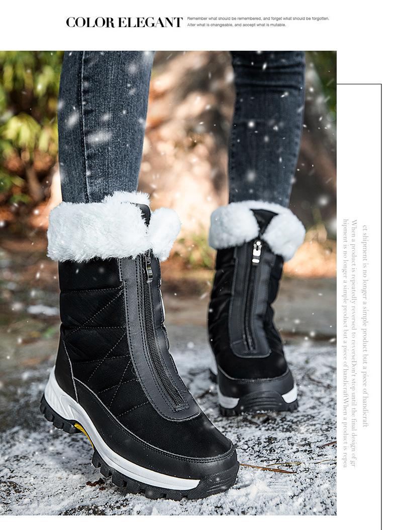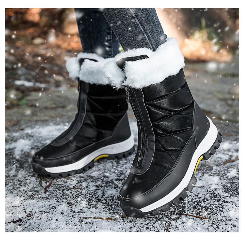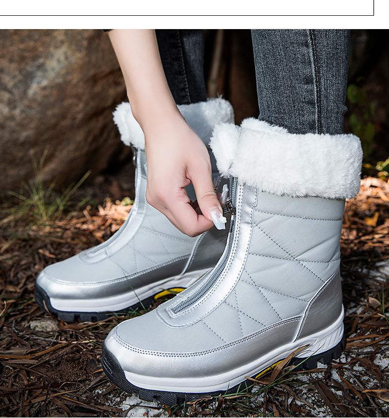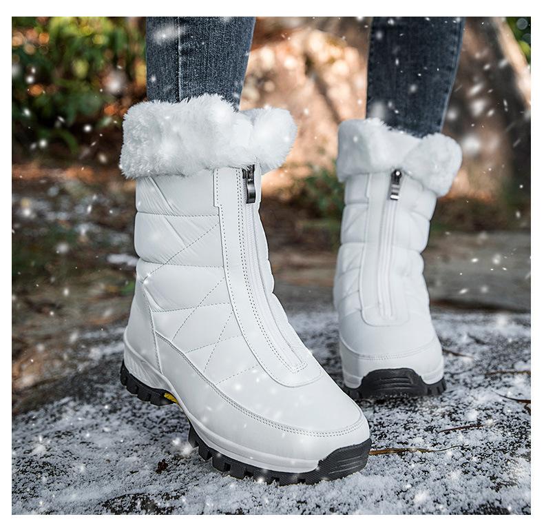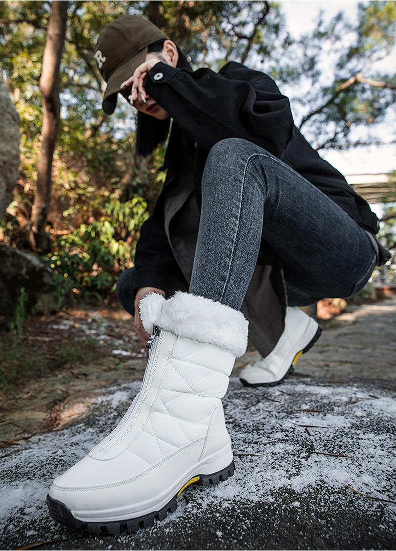 Nuevas botas de nieve de otoño e invierno para mujer, botas de algodón de suela gruesa con cremallera frontal hasta media pantorrilla de talla grande, botas cortas y zapatos casuales de invierno.