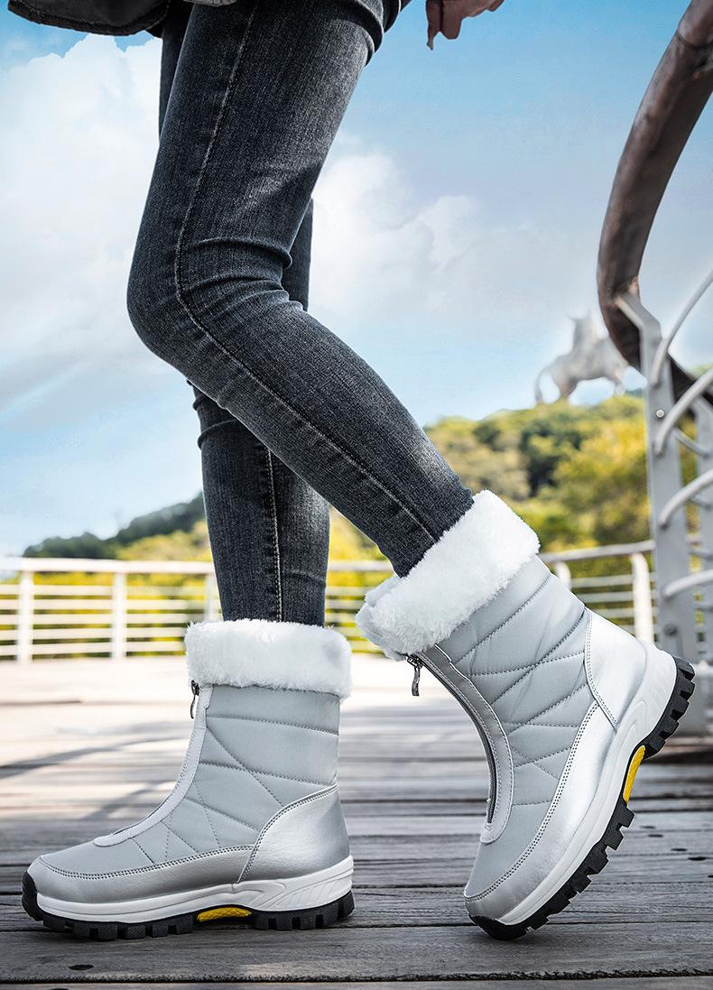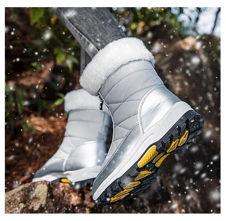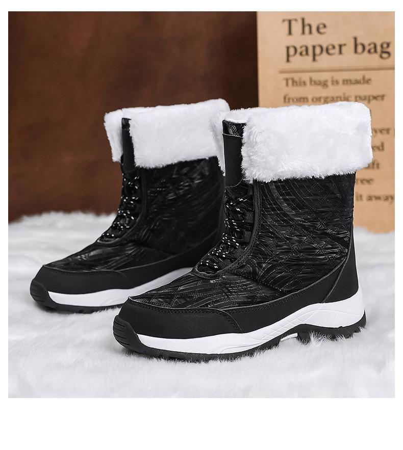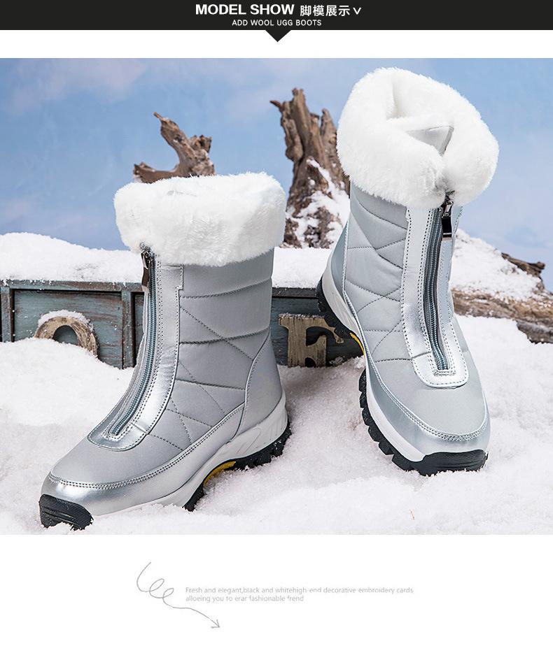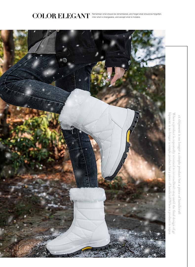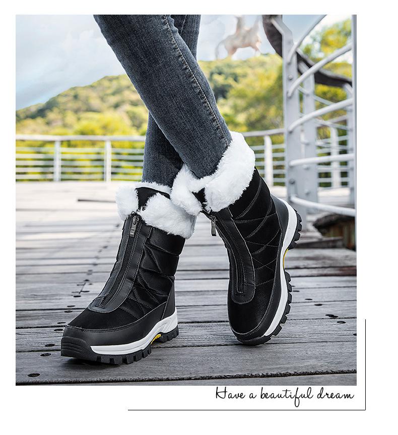 Nuevas botas de nieve de otoño e invierno para mujer, botas de algodón de suela gruesa con cremallera frontal hasta media pantorrilla de talla grande, botas cortas y zapatos casuales de invierno.