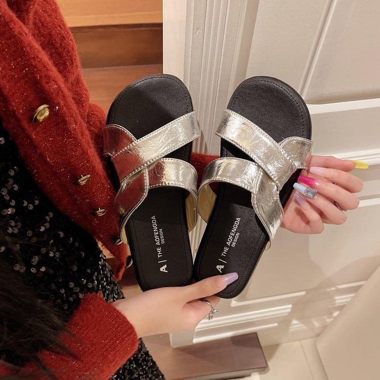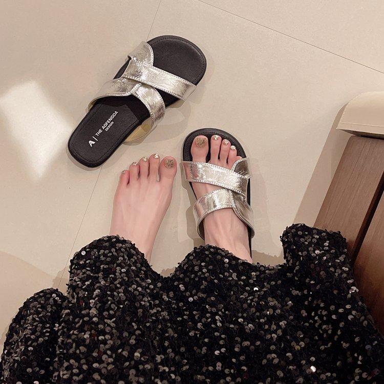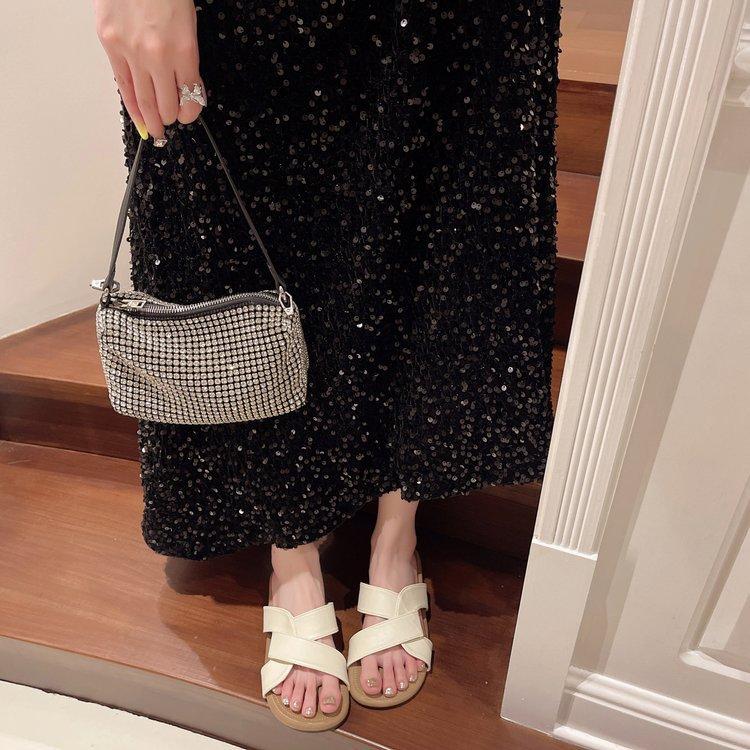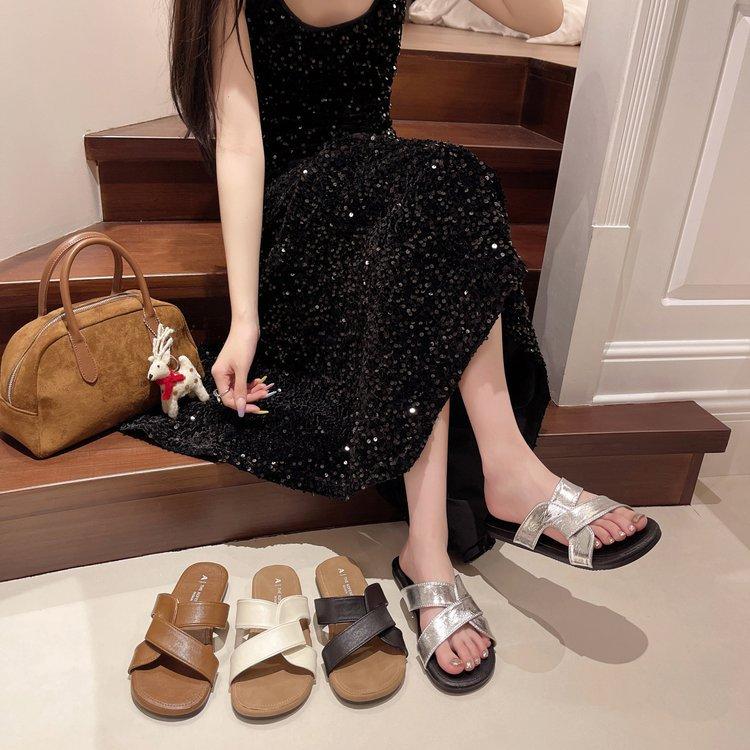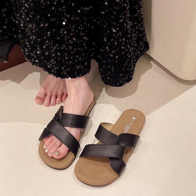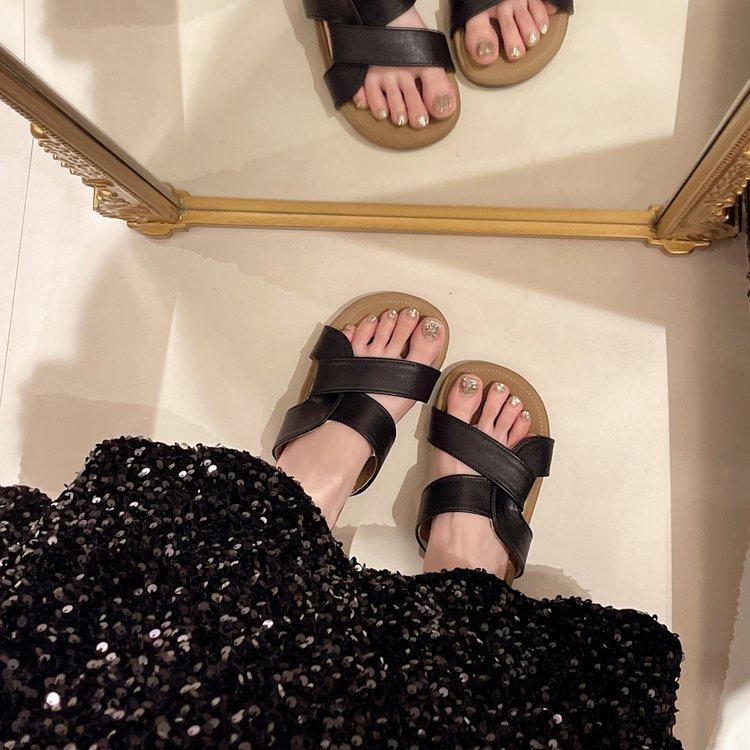 Pantuflas de Tiras Cruzadas para Verano para Mujer 2024 Nuevo Estilo Retro Francés Casual de Suela Plana Sandalias de Playa Antideslizantes