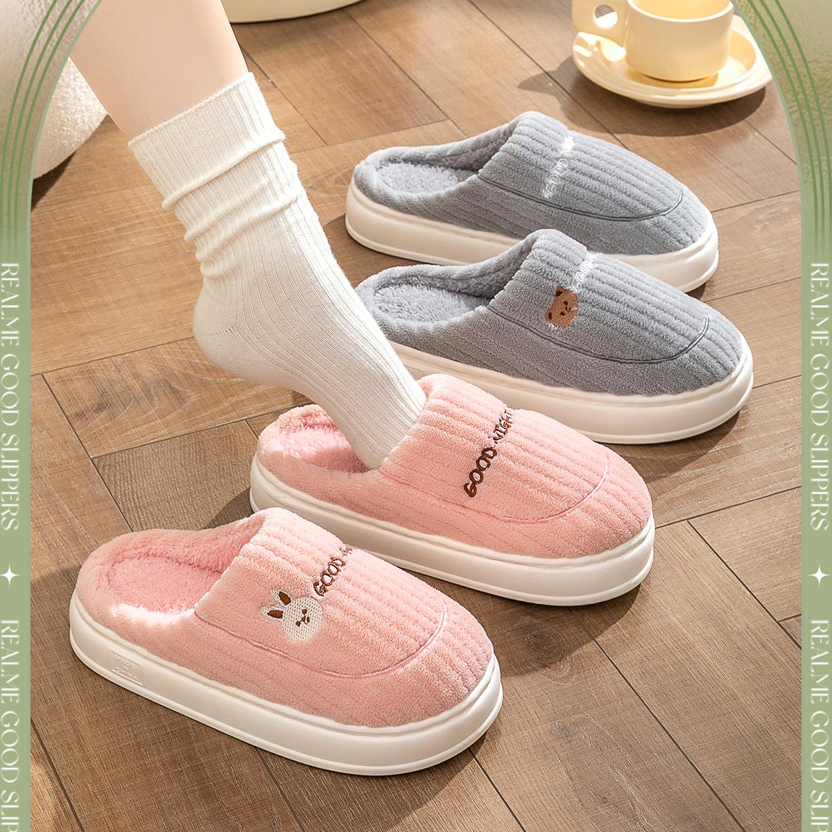 Pantuflas de algodón de suela gruesa para mujer para usar en invierno 2025, nuevas para interior, para el hogar, para amantes, pantuflas de felpa para otoño e invierno para hombre
