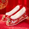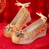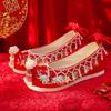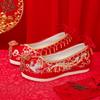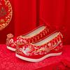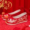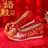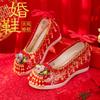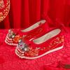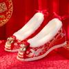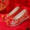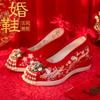 Zapatos de boda Xiuhe, zapatos Hanfu, zapatos Cheongsam para mujer, zapatos bordados con cojín, zapatos de novia de boda chinos retro con falda con cara de caballo.