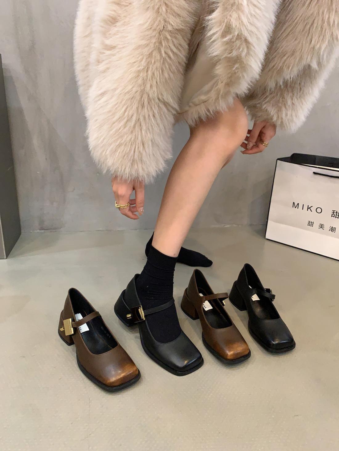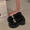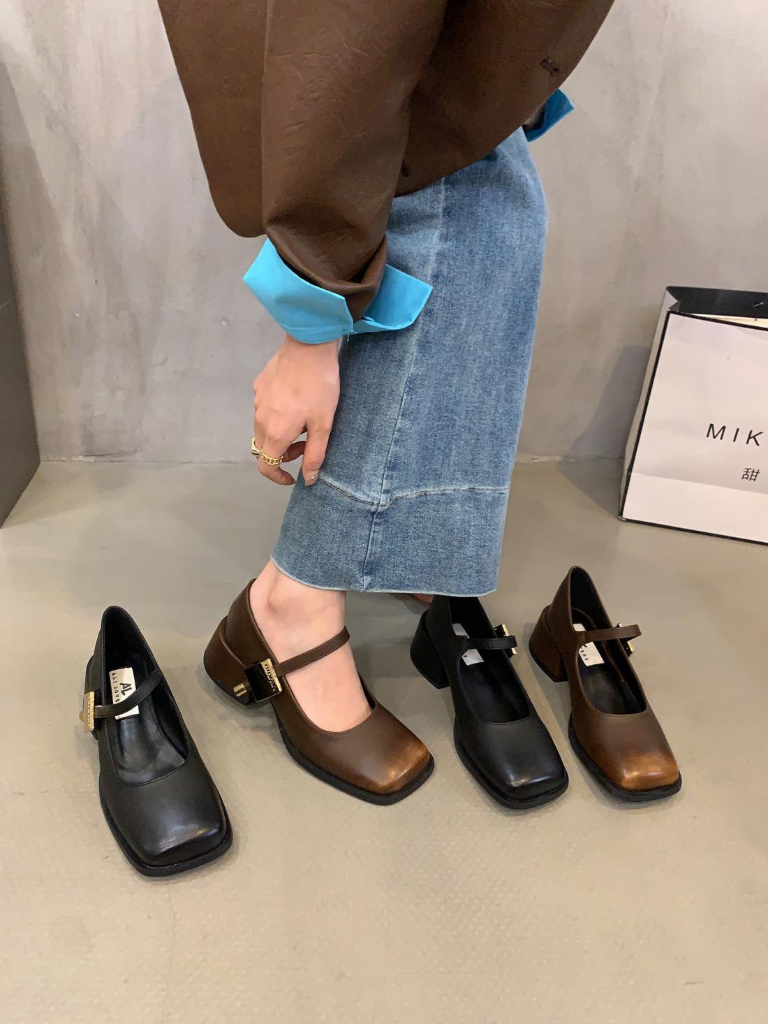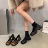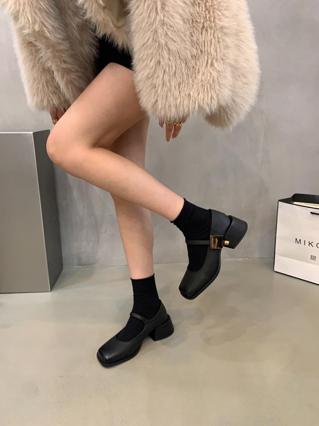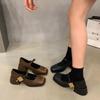 Zapatos Mary Jane de Tacón Grueso Negro Punta Cuadrada Zapatos de Mujer 2025 Nuevo Primavera y Otoño Retro Estilo Británico Zapatos de Cuero Pequeños