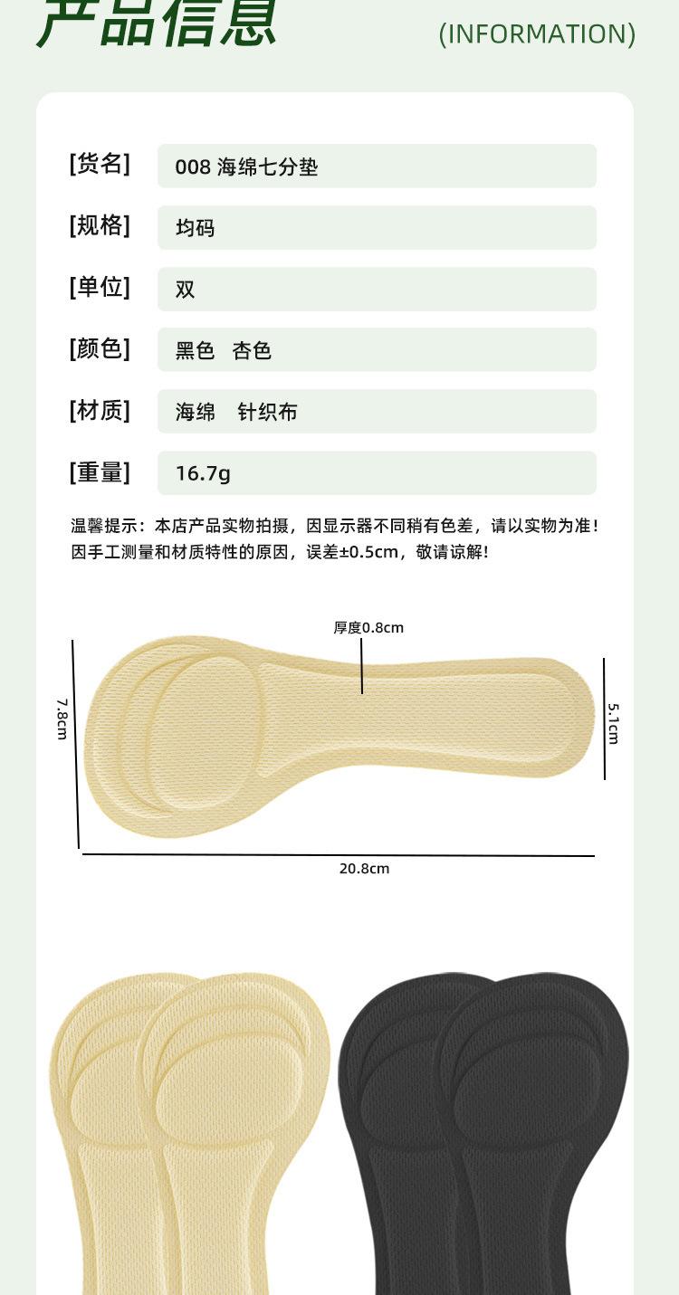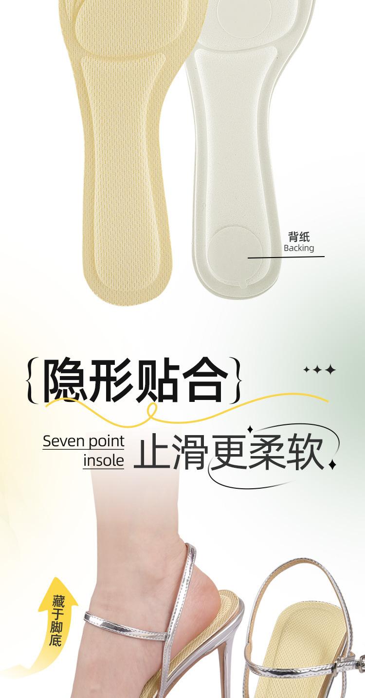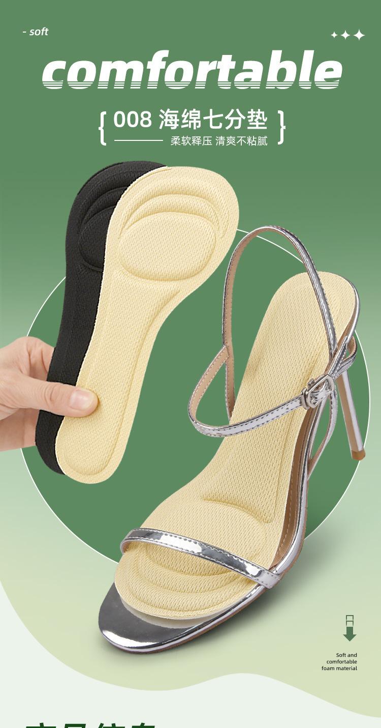 Almohadilla de esponja de siete puntos Sandalias de tacón alto Autoadhesiva Antideslizante Almohadilla de media talla Suave Resistente al desgaste Absorbe el sudor Amortiguadora Código de ajuste Se puede cortar a la mitad