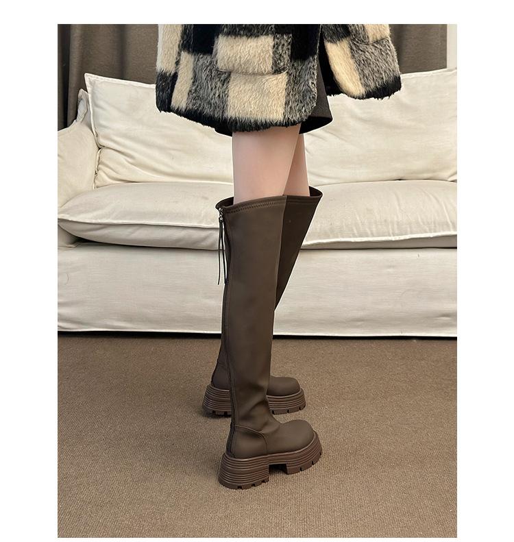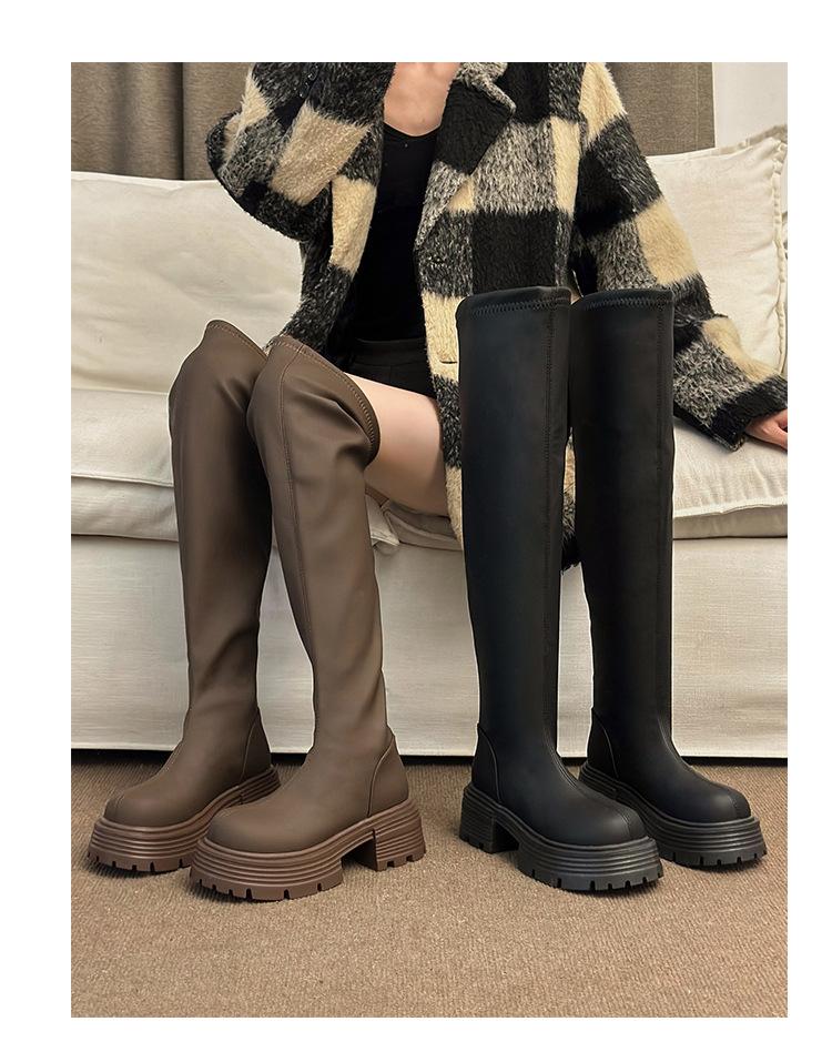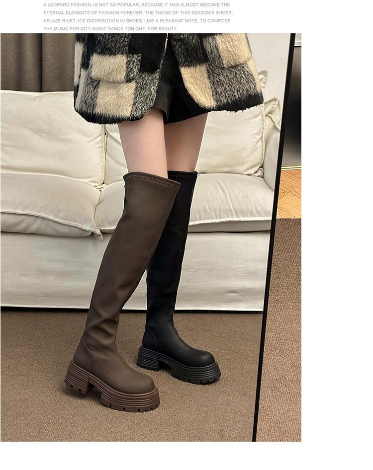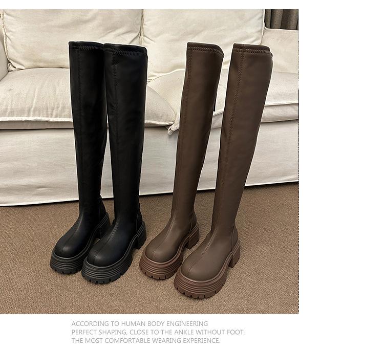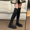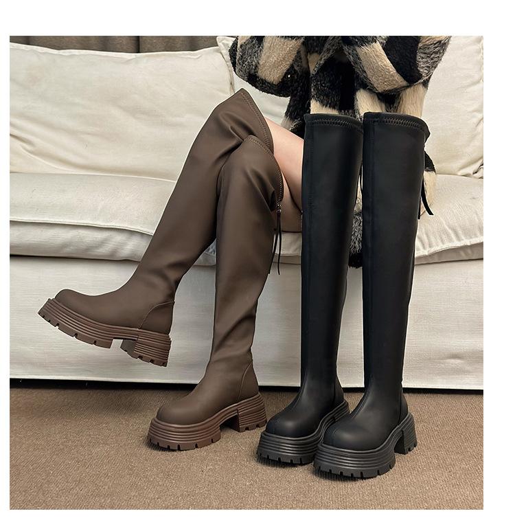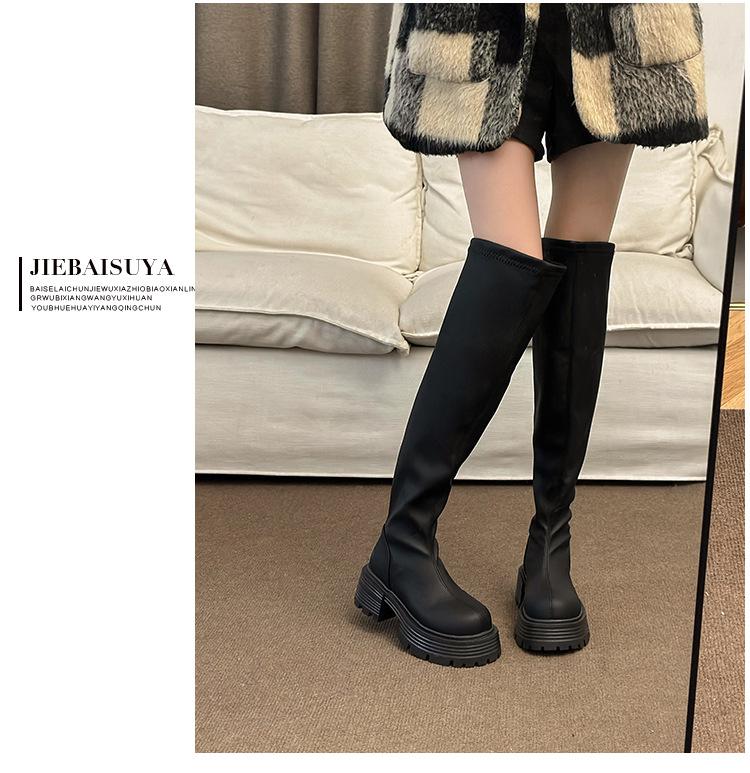 Botas de caballero 2024, botas finas por encima de la rodilla con tacón grueso, nuevo estilo, botas de suela gruesa que combinan con todo, botas de mujer para otoño e invierno.