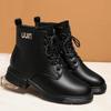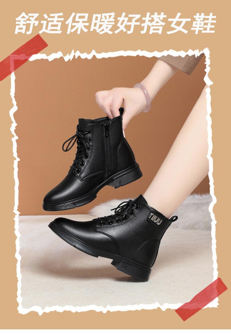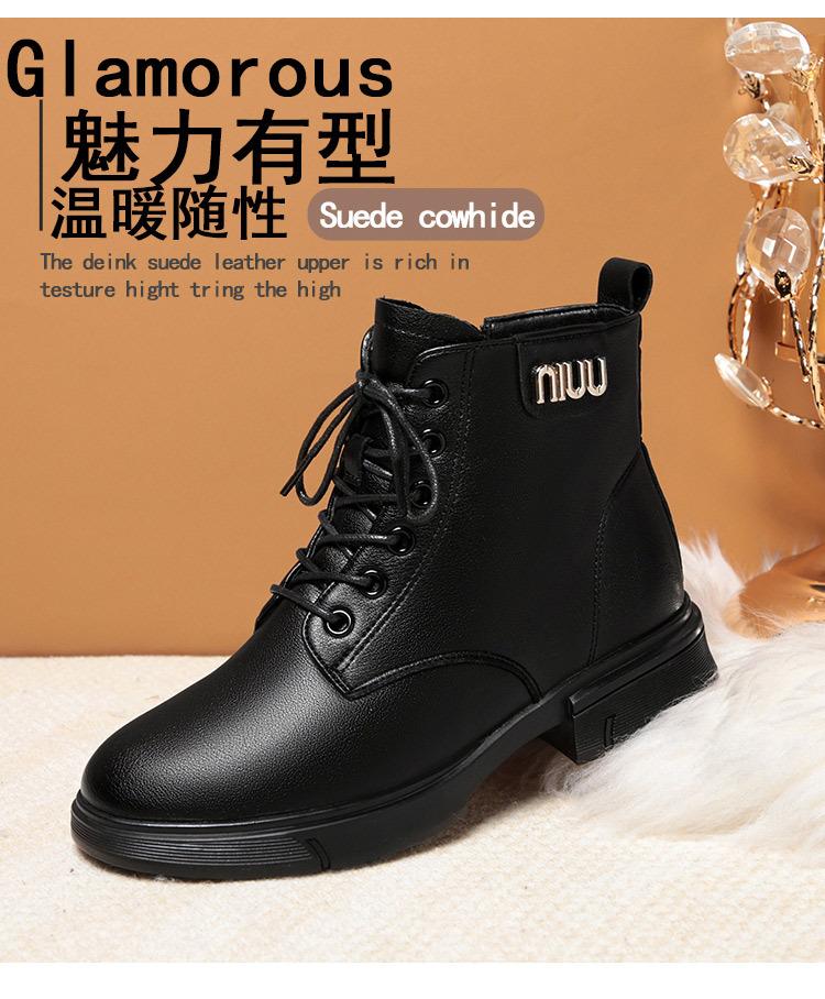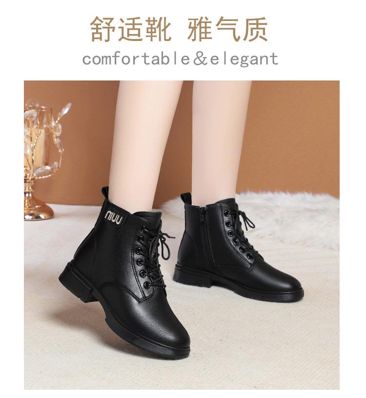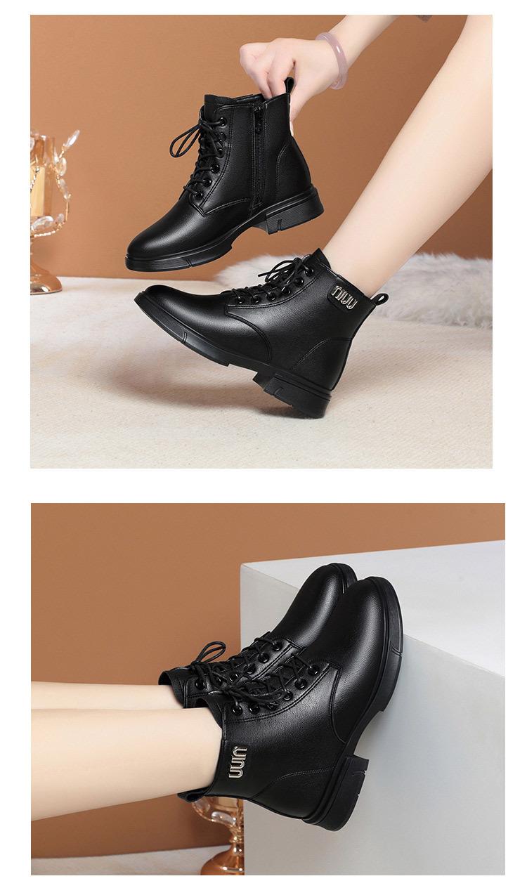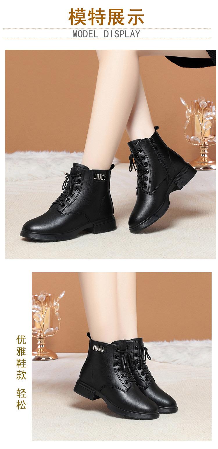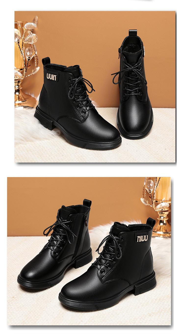 Botas Martin para mujer 2023, nuevas botas de algodón acolchadas, botas cortas de tacón bajo, zapatos de invierno para mujeres de mediana edad y mayores, zapatos de mamá, zapatos de cuero con forro polar para otoño e invierno.