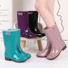 Botas de lluvia para mujer, zapatos de agua altos antideslizantes, zapatos impermeables para mujer, botas de lluvia de tubo medio, zapatos de cocina para adultos de algodón, zapatos de goma cálidos para mujer