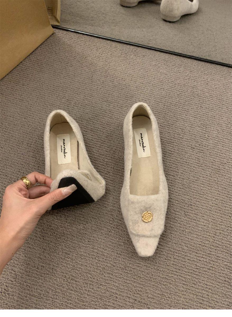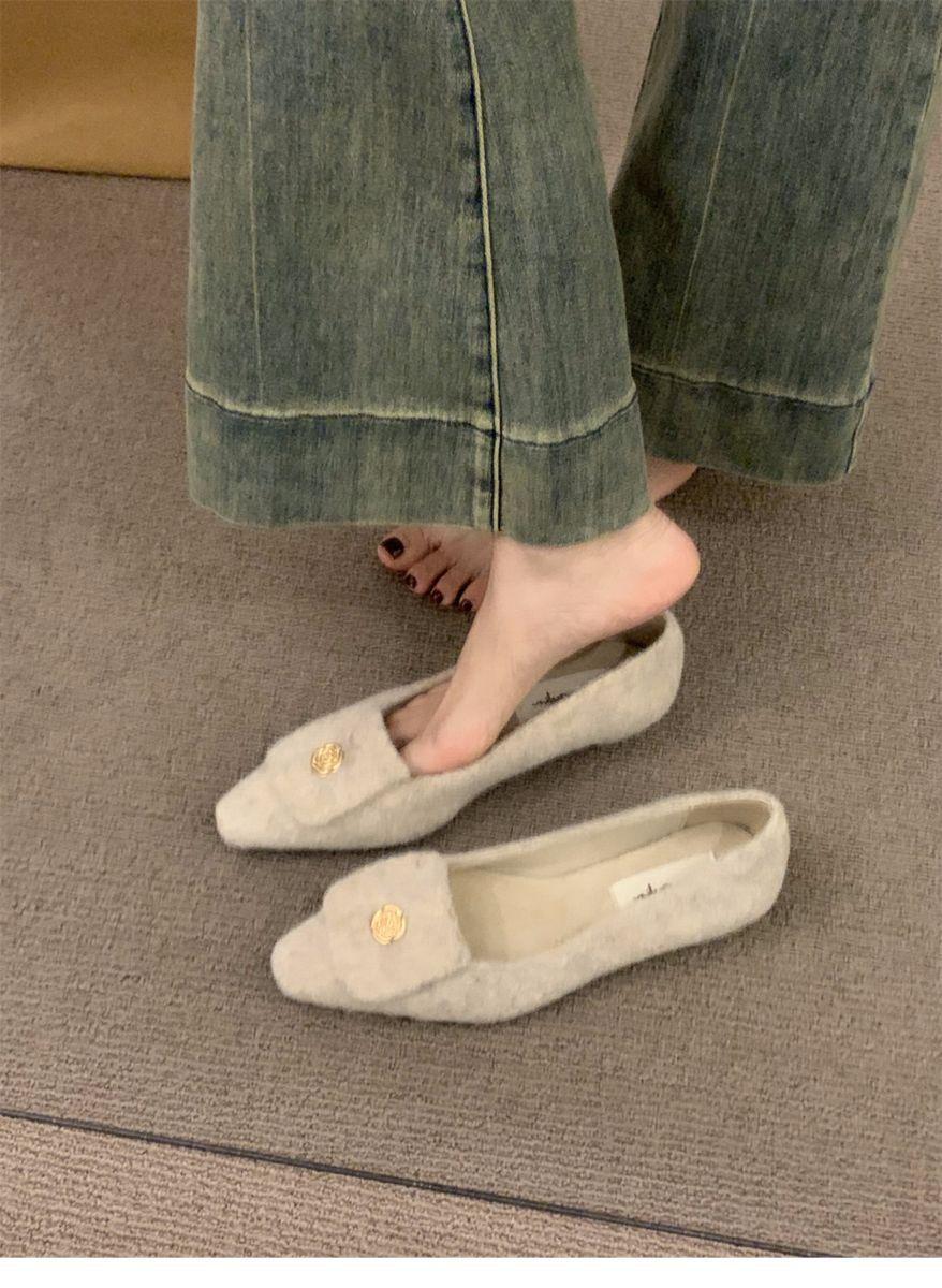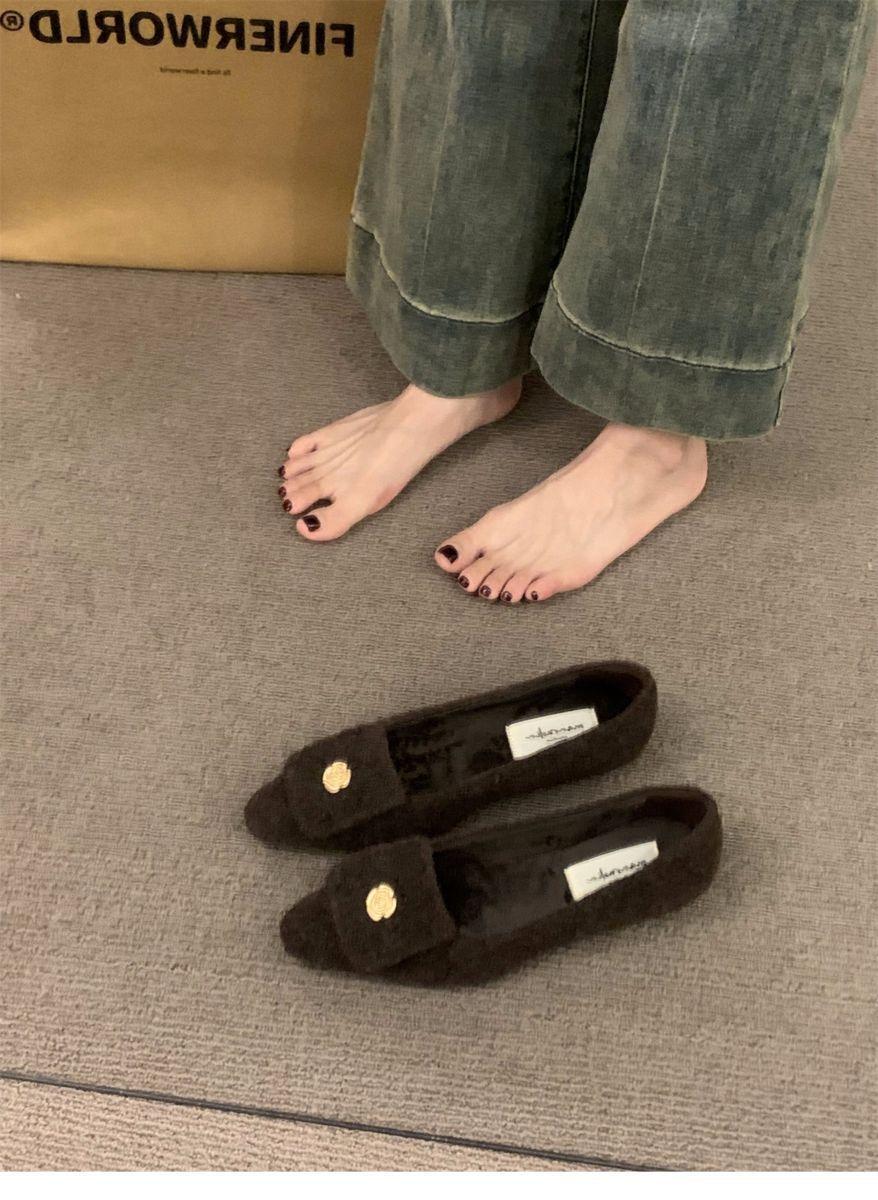 Flats Retro de Gamuza Zapatos de Mujer 2025 Nueva Moda Otoño e Invierno Elegantes y Cómodos Forrados de Felpa Zapatos de Oficina Elegantes de Pequeño Aroma