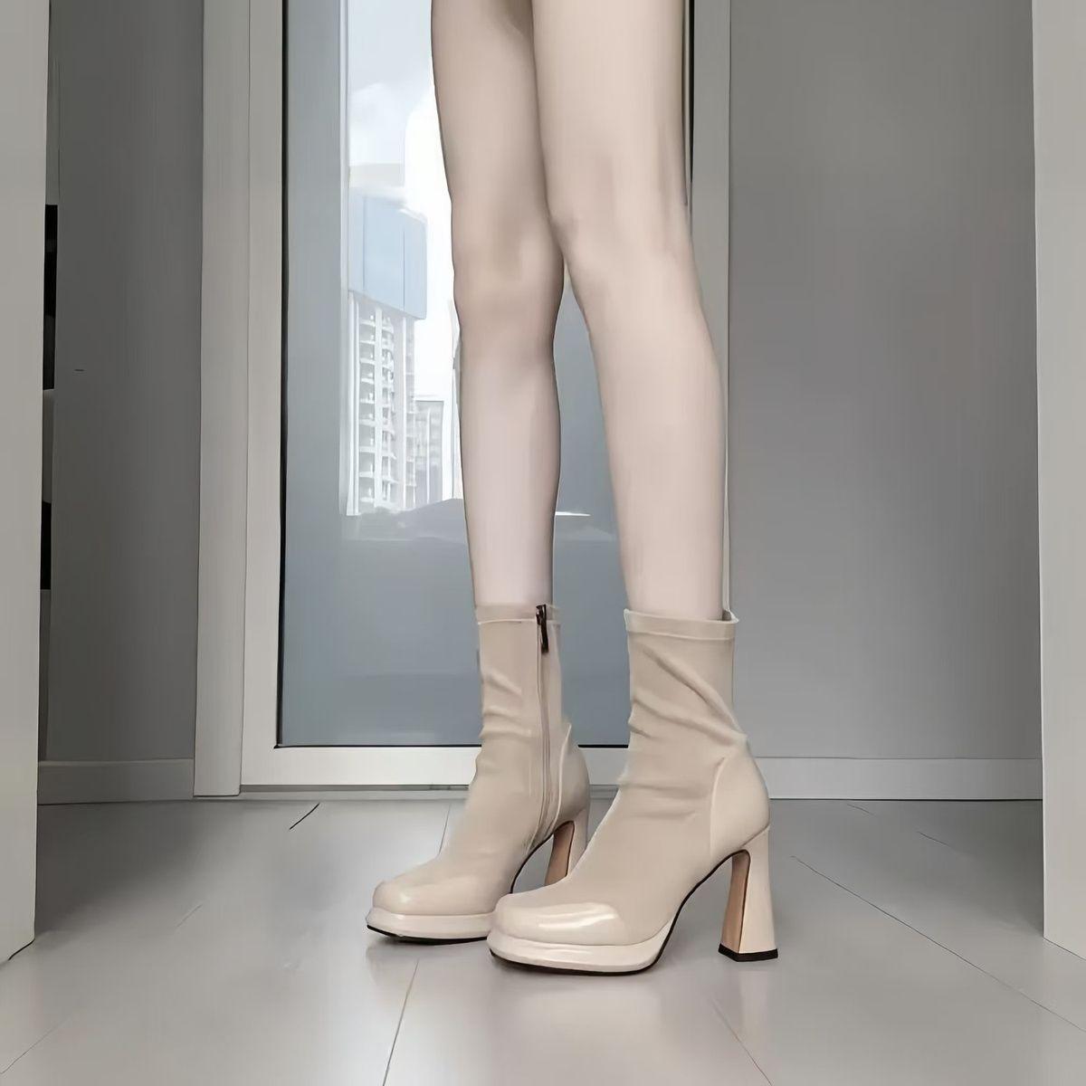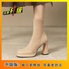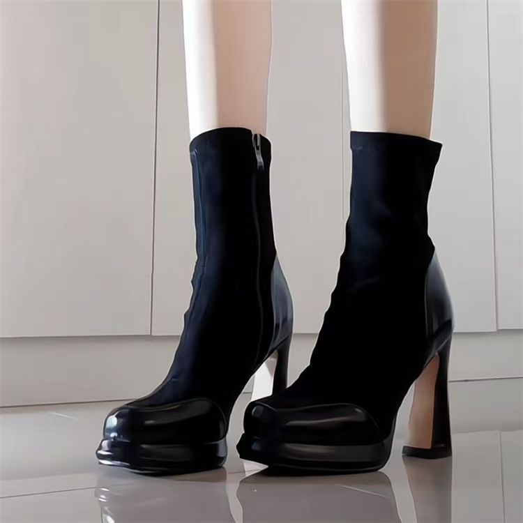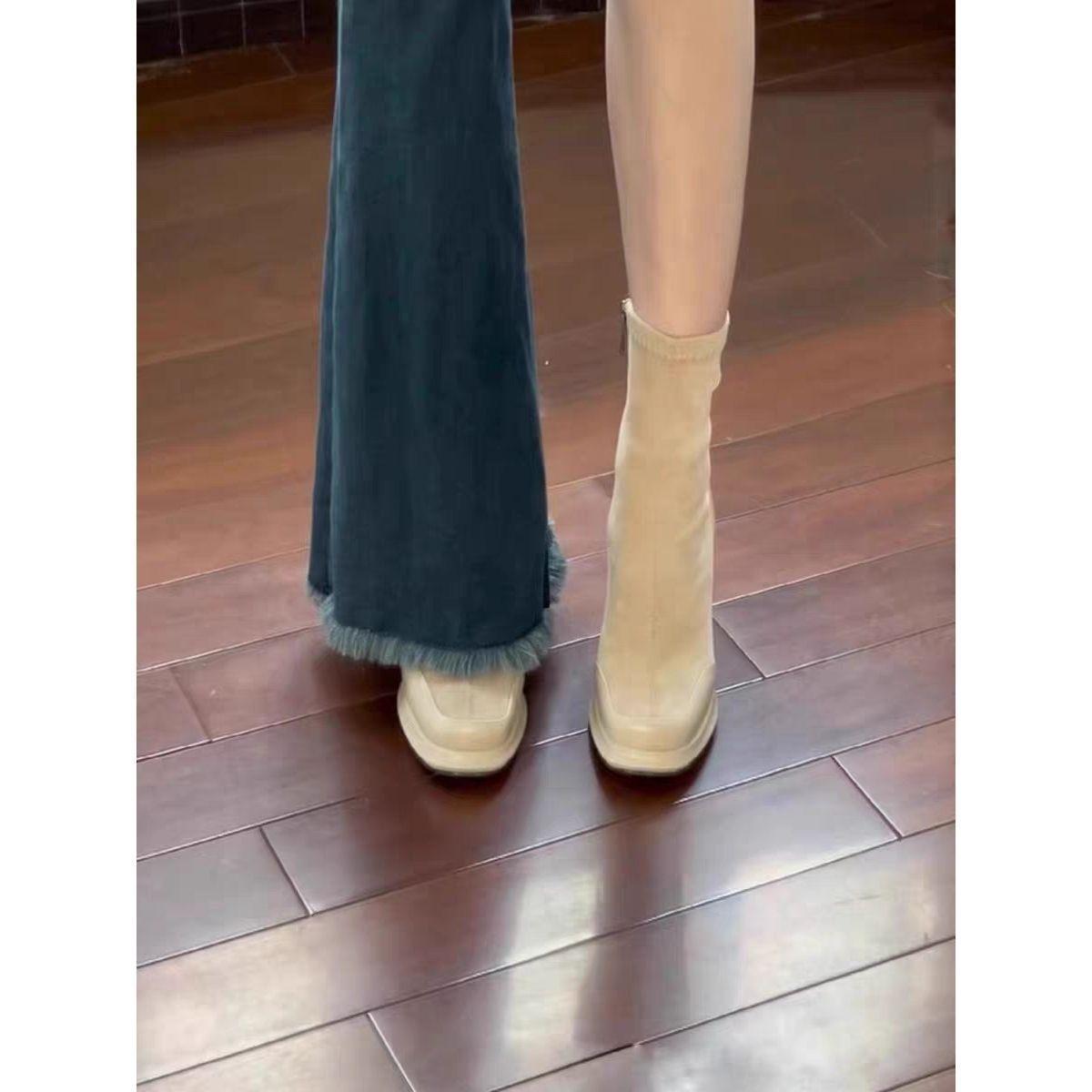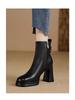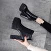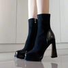 Botines impermeables de plataforma, tacón grueso, punta cuadrada, gamuza, estilo coreano, pequeños, negros, de corte estilizado, tacón alto, tipo Martin, otoño e invierno 2024