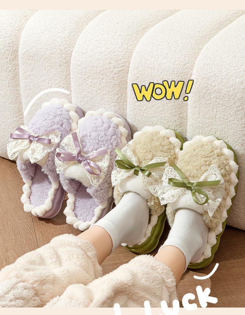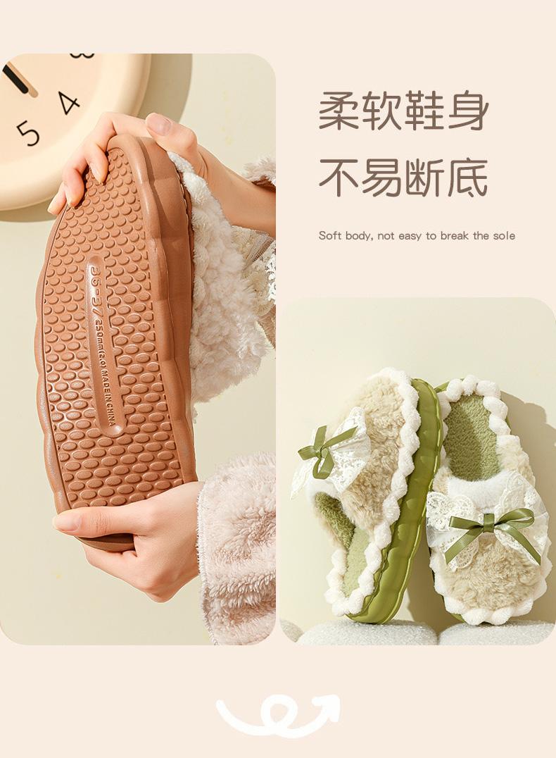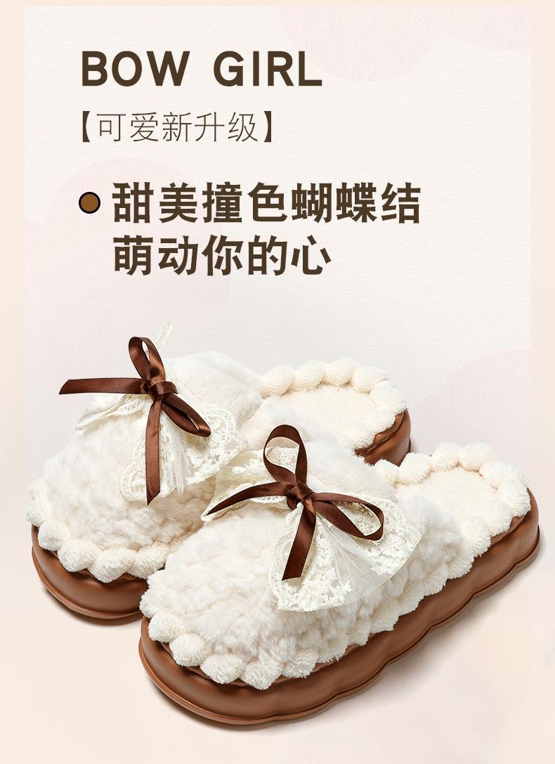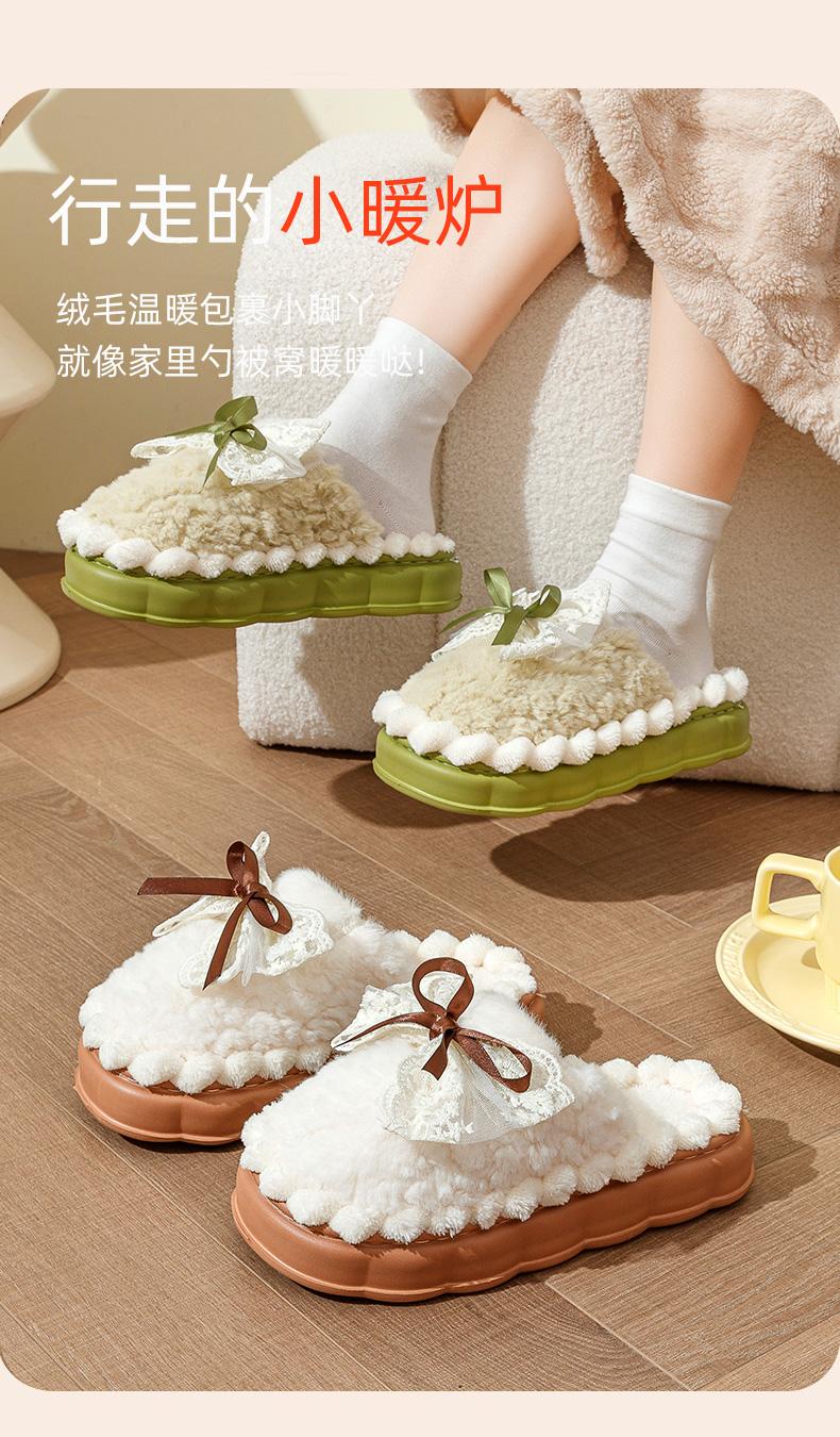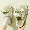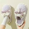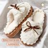 Pantuflas de Algodón con Lazo para Mujer Otoño e Invierno 2025 Nuevas Cálidas Antideslizantes para Interior Hogar Suela Gruesa Pantuflas Peludas