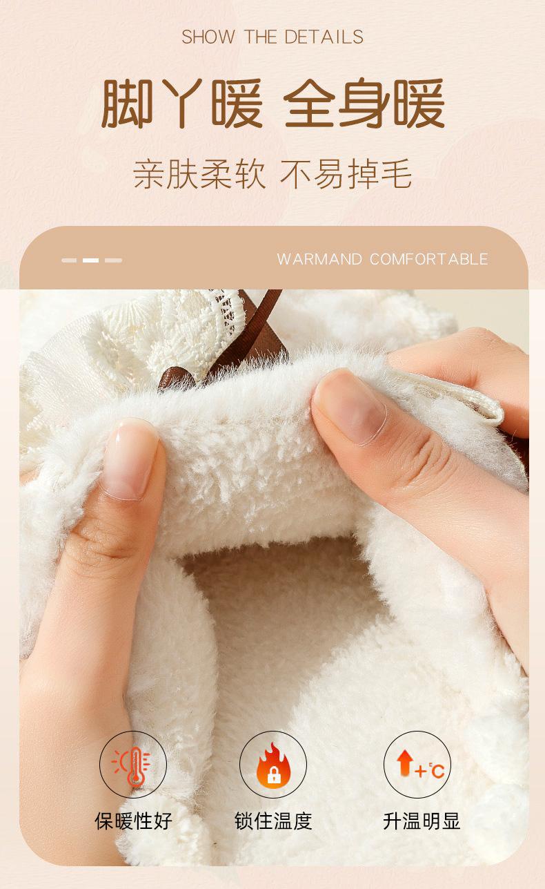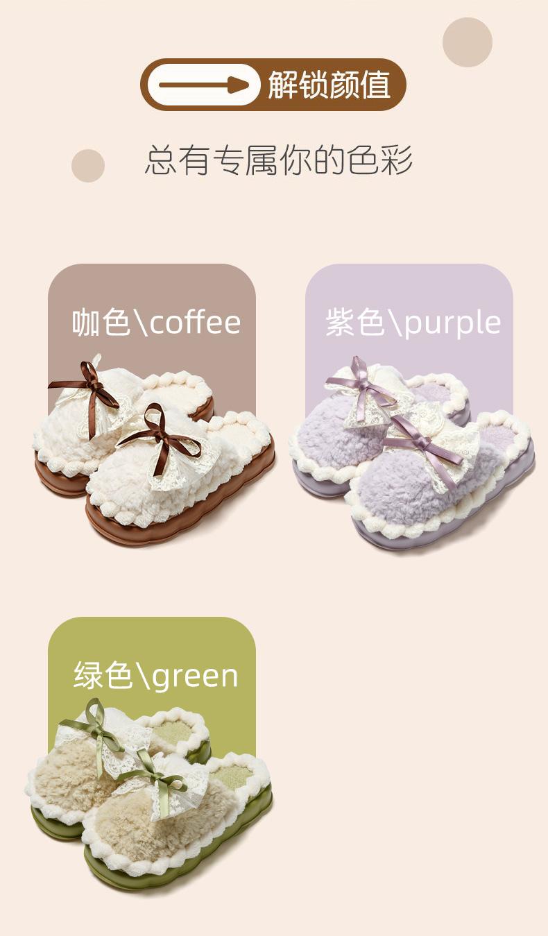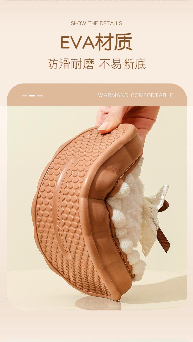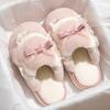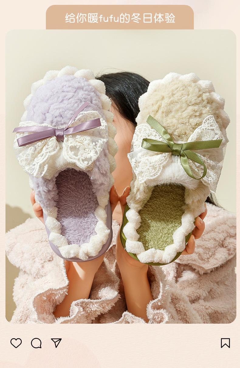 Pantuflas de Algodón con Lazo para Mujer Otoño e Invierno 2025 Nuevas Cálidas Antideslizantes para Interior Hogar Suela Gruesa Pantuflas Peludas