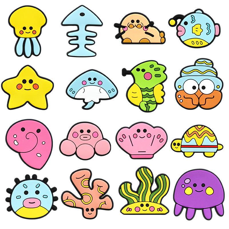 Serie Animal Marino Zapatos Cueva Zapatos Flor Hebilla de Zapato PVC Caucho Suave Hebilla de Zapato Lindo Dibujo Animado Decoración Zapatos de Jardín para Niños
