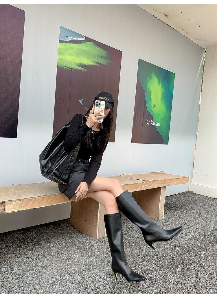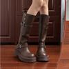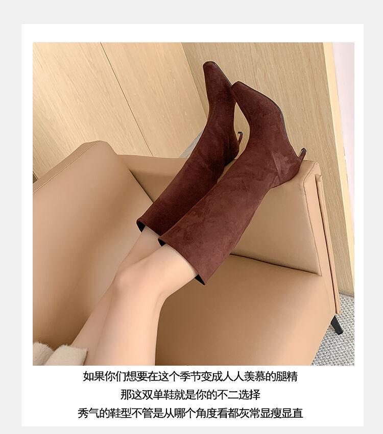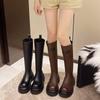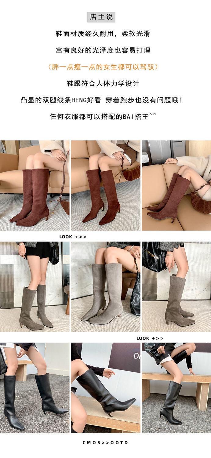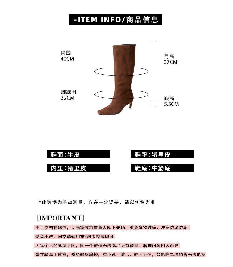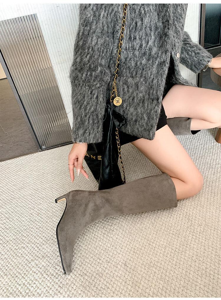 Botas de caballero elegantes, sencillas y cómodas, de ante cuadrado pequeño y tacón grueso, hasta la rodilla, para invierno 2024.